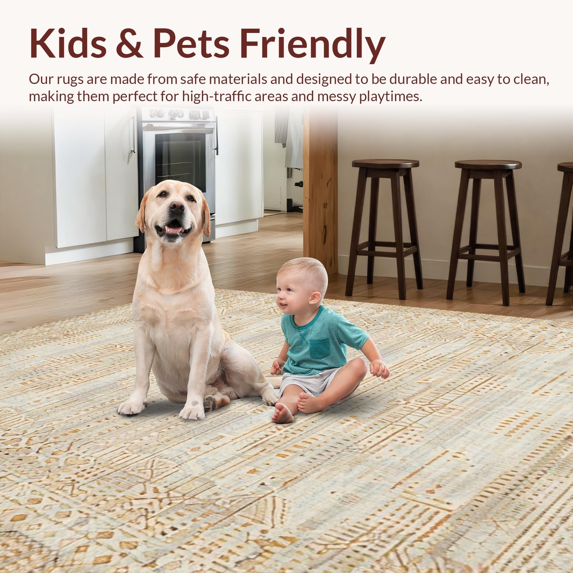 Ultra Soft Area Rug, Non Slip, Stain Resistant, Washable Area Rugs for Living Room, Bedroom, Soft Neutral Organic Design(Beige) Overview: