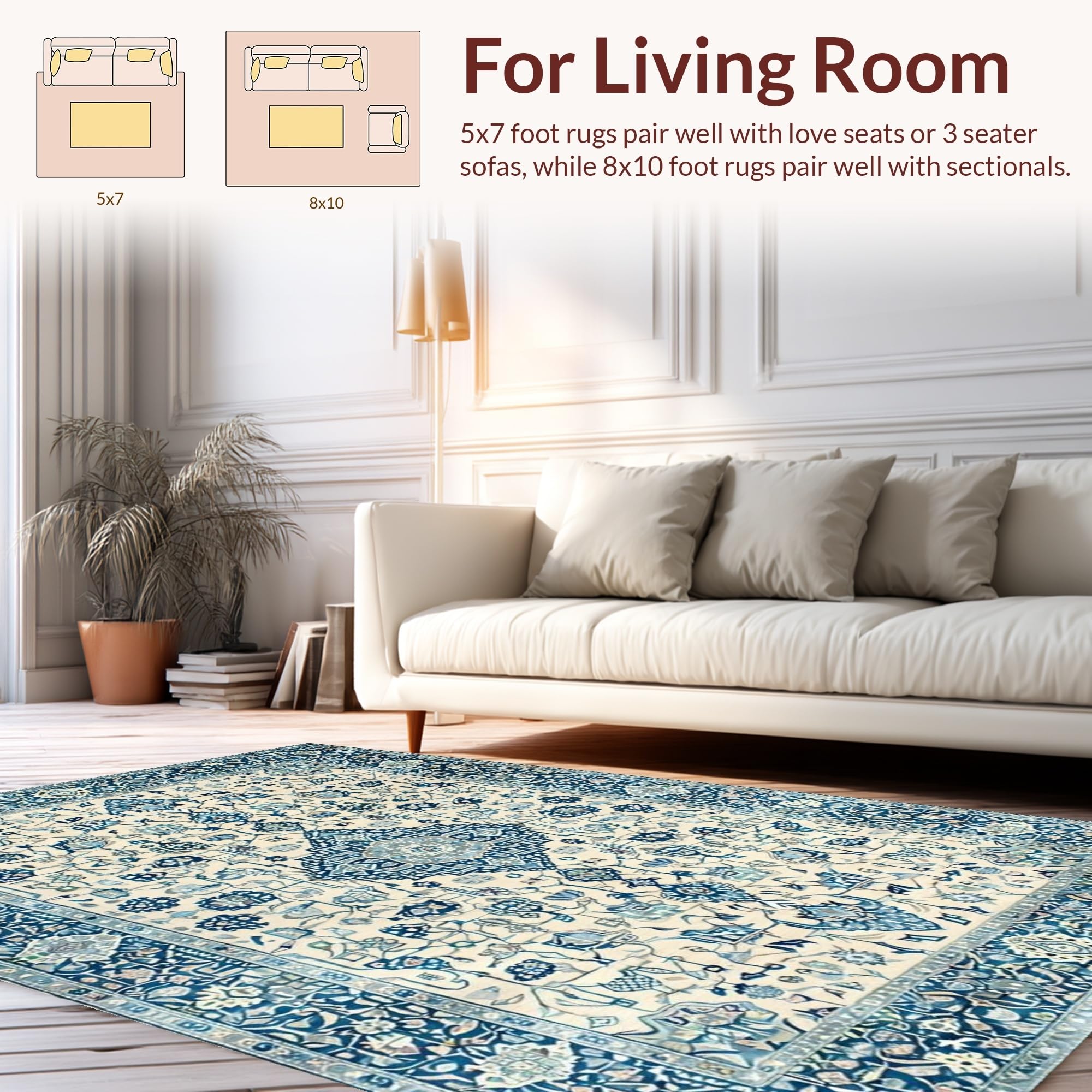 Ultra Soft Area Rug, Non Slip, Stain Resistant, Washable Area Rugs for Living Room, Bedroom, Soft Pastel Distressed Medallion(White) Overview: