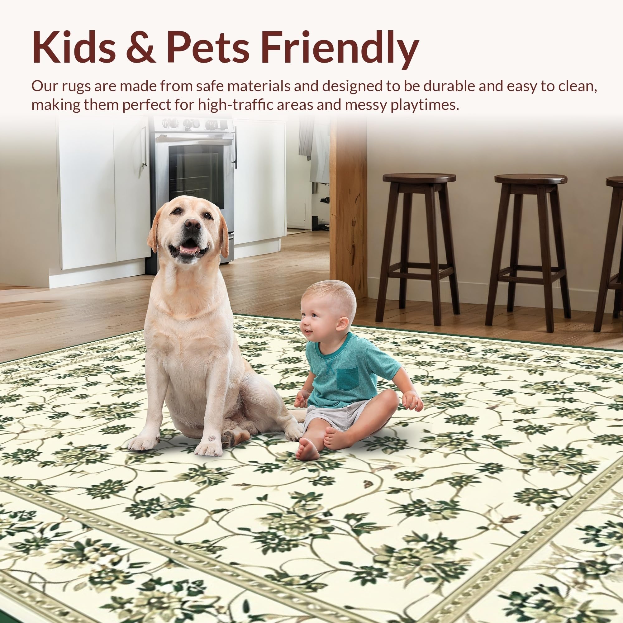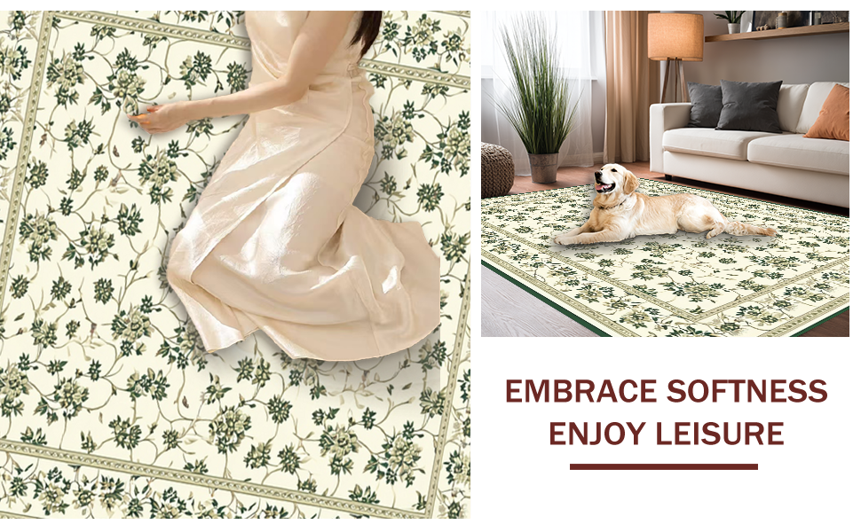 Ultra Soft Area Rug, Non Slip, Stain Resistant, Washable Area Rugs for Living Room, Bedroom, Soft Pastel Floral Arrangement(Beige) Overview: