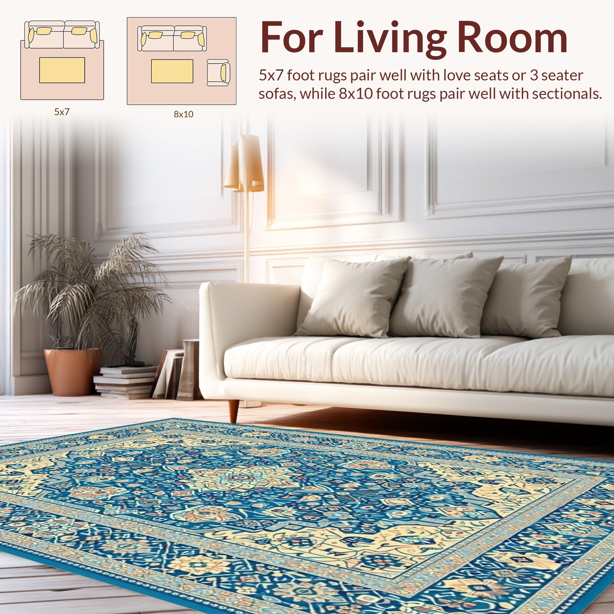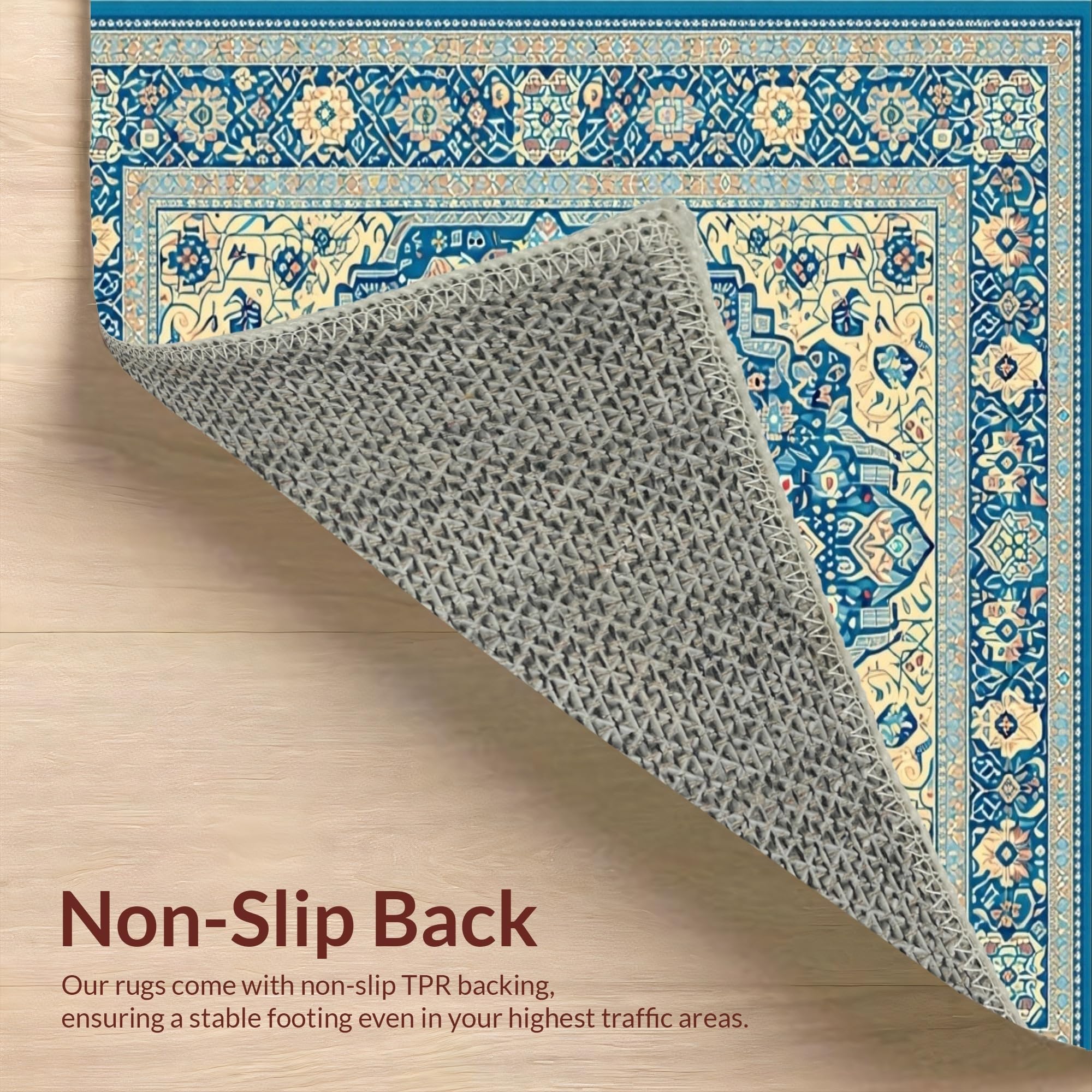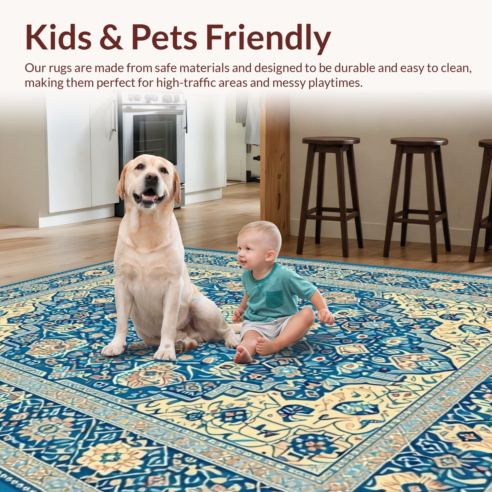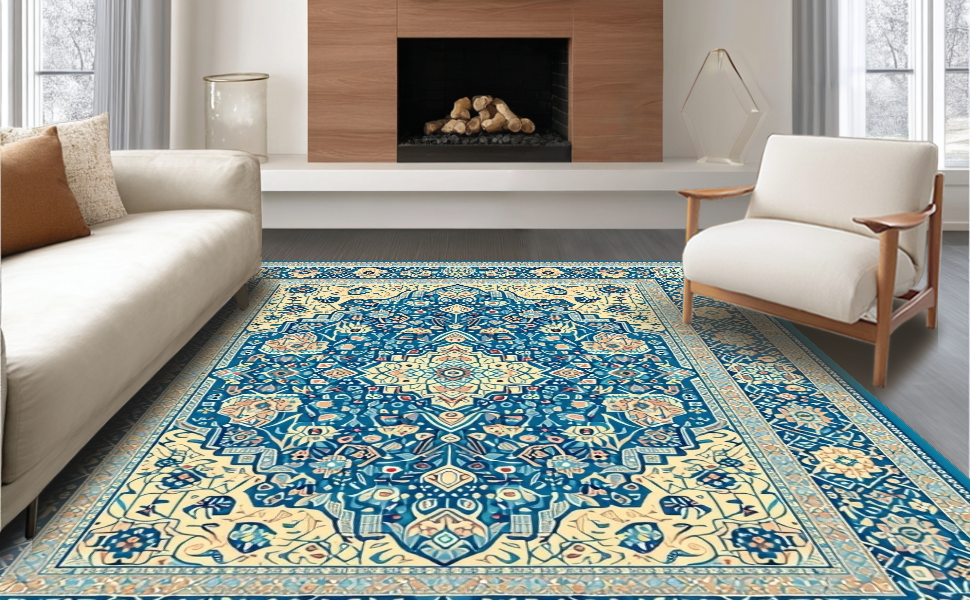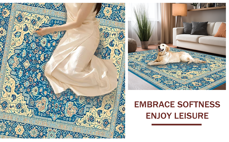 Ultra Soft Area Rug, Non Slip, Stain Resistant, Washable Area Rugs for Living Room, Bedroom, Soft Pastel Floral Medallion(Blue) Overview: