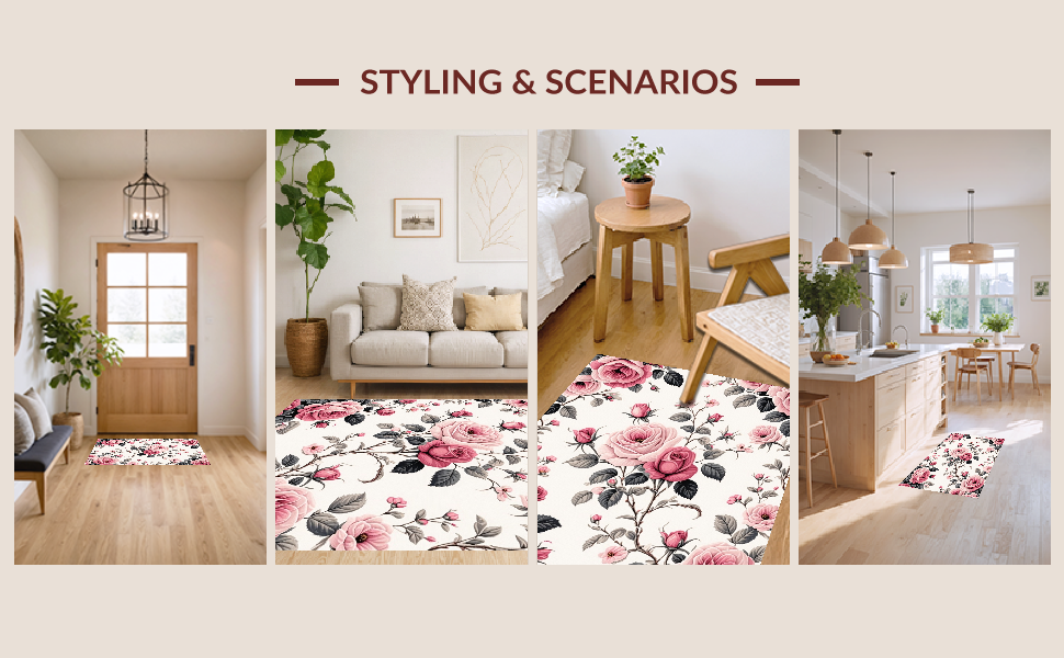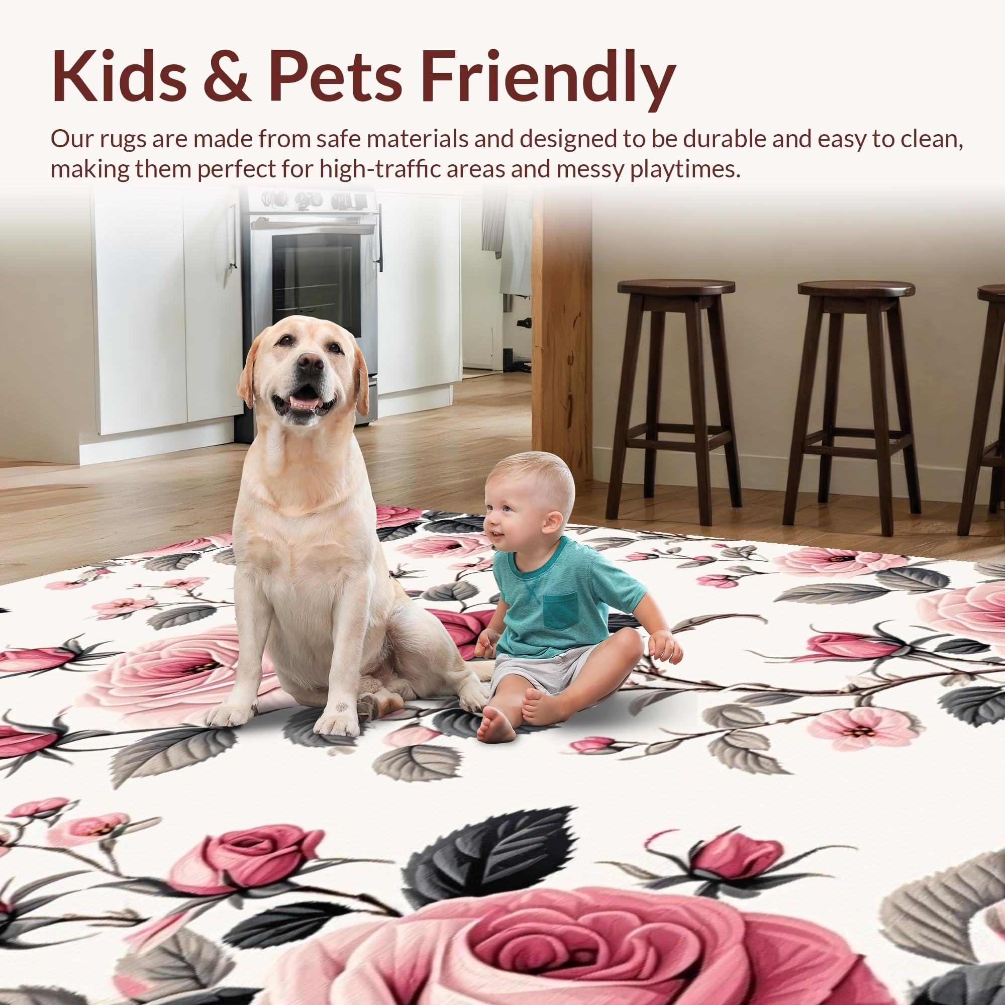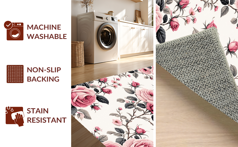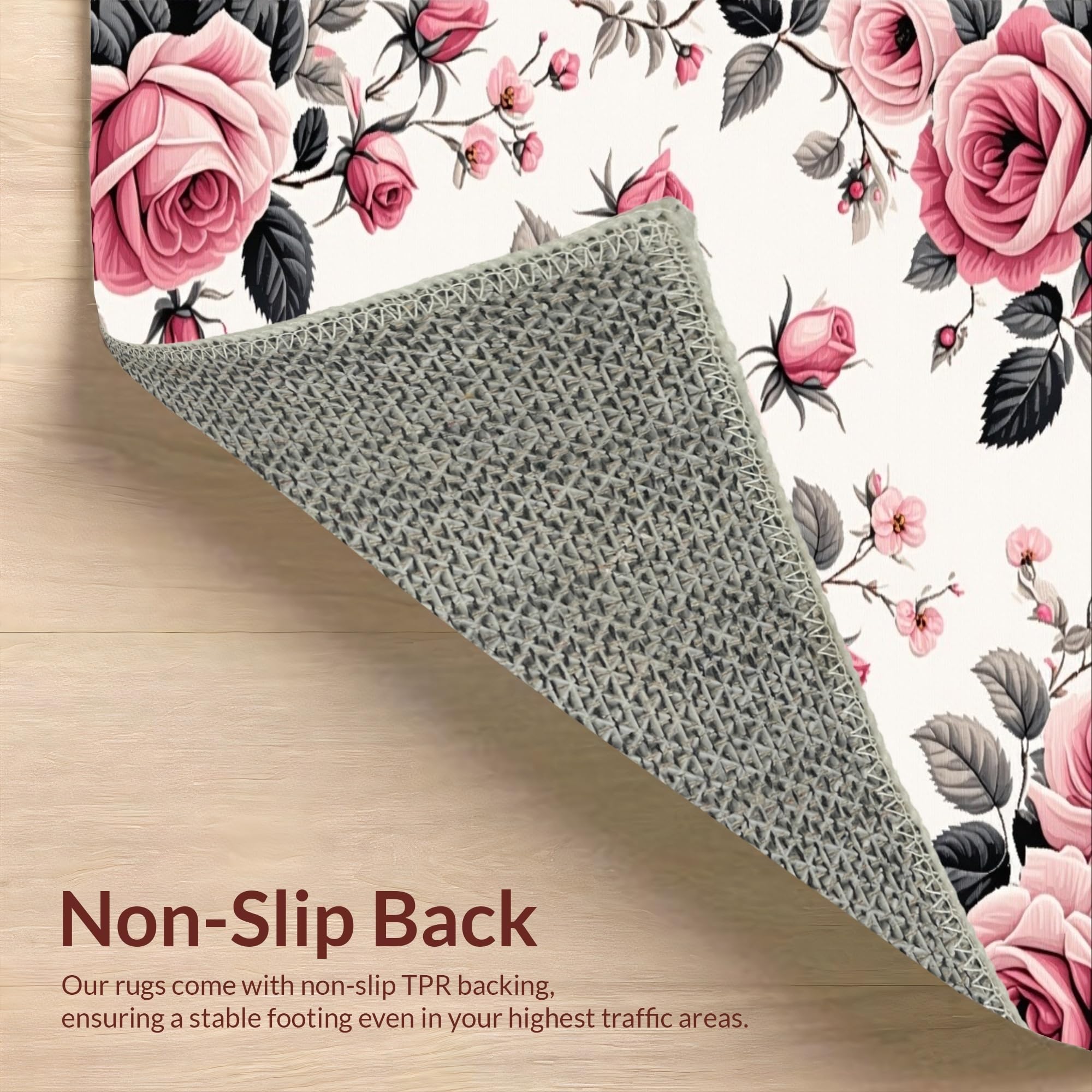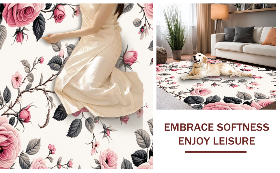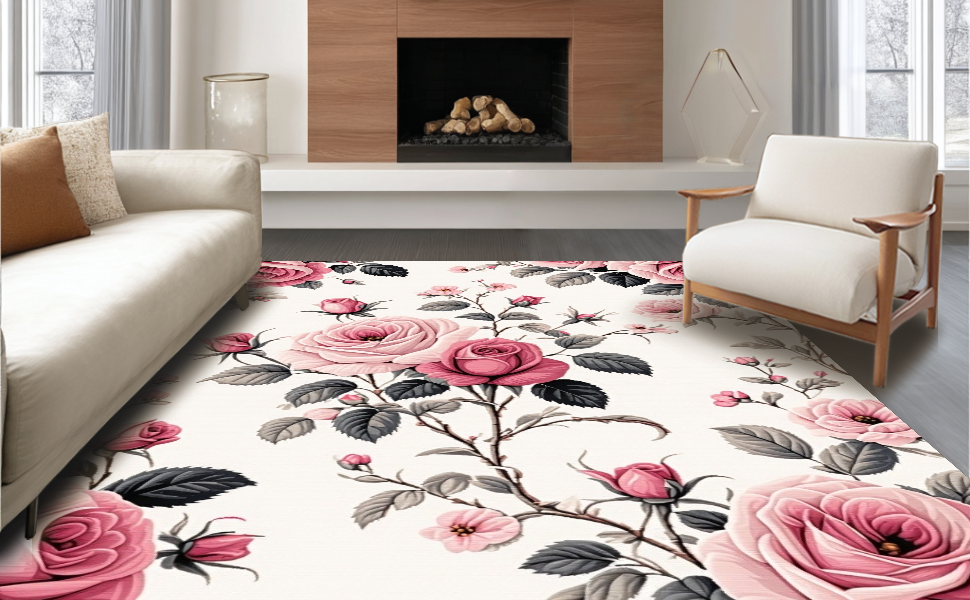 Ultra Soft Area Rug, Non Slip, Stain Resistant, Washable Area Rugs for Living Room, Bedroom, Soft Pastel Flower Motif Piece(Pink) Overview: