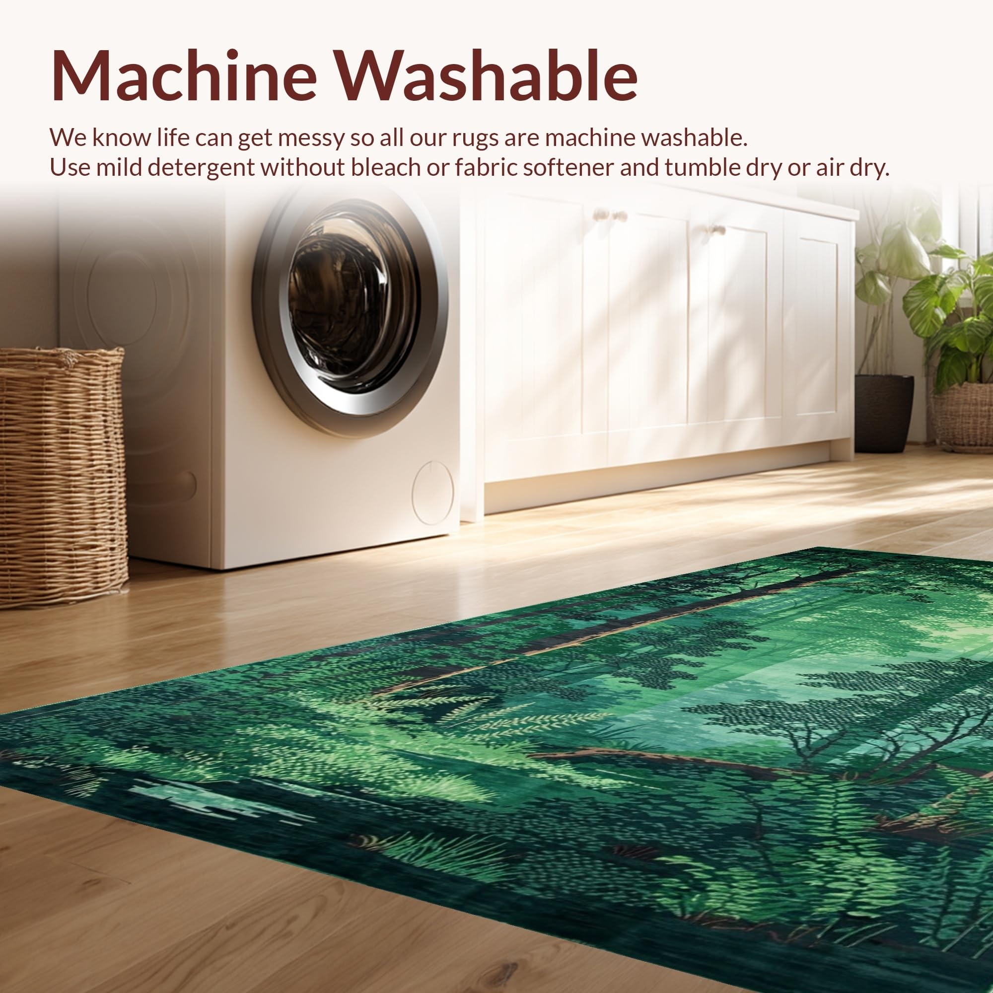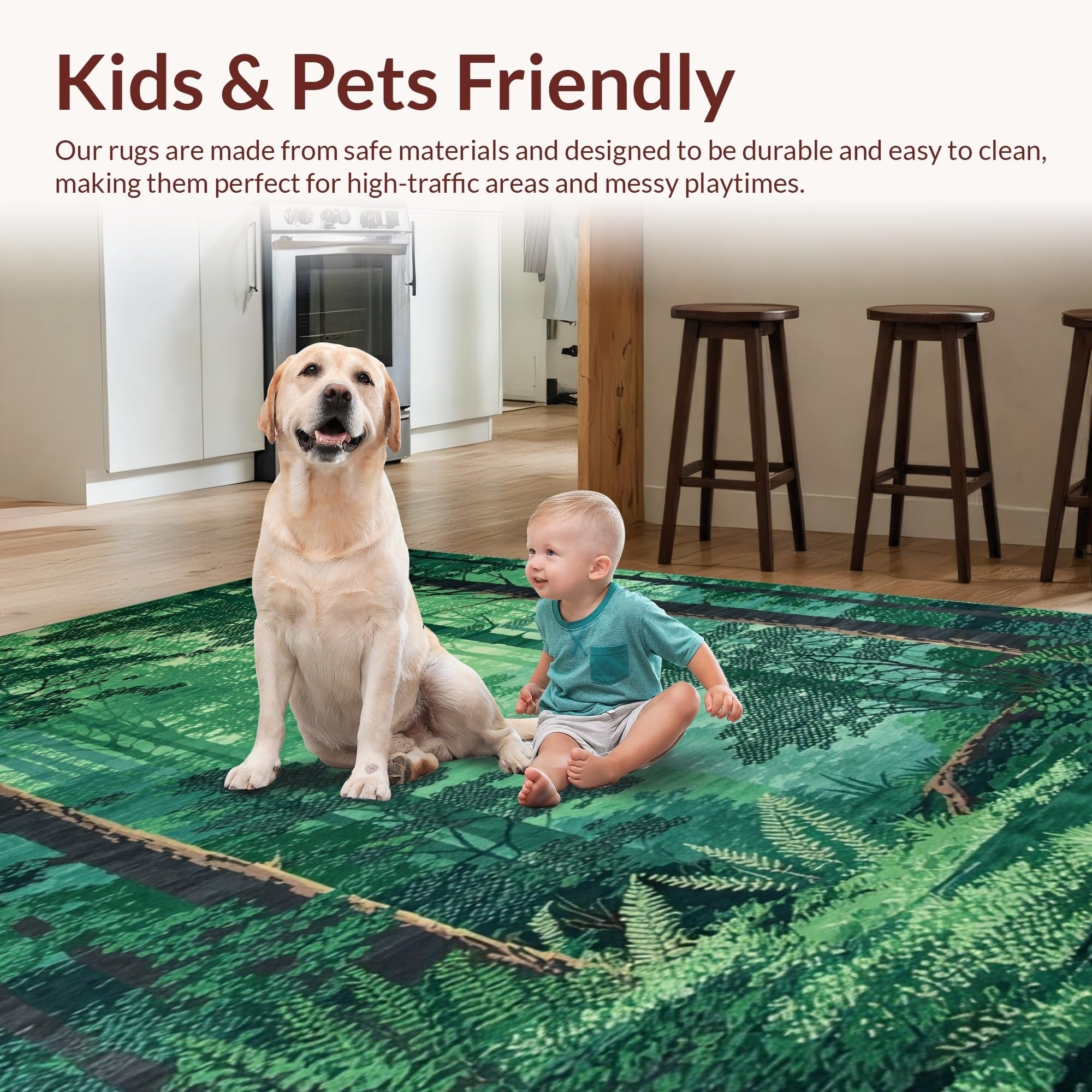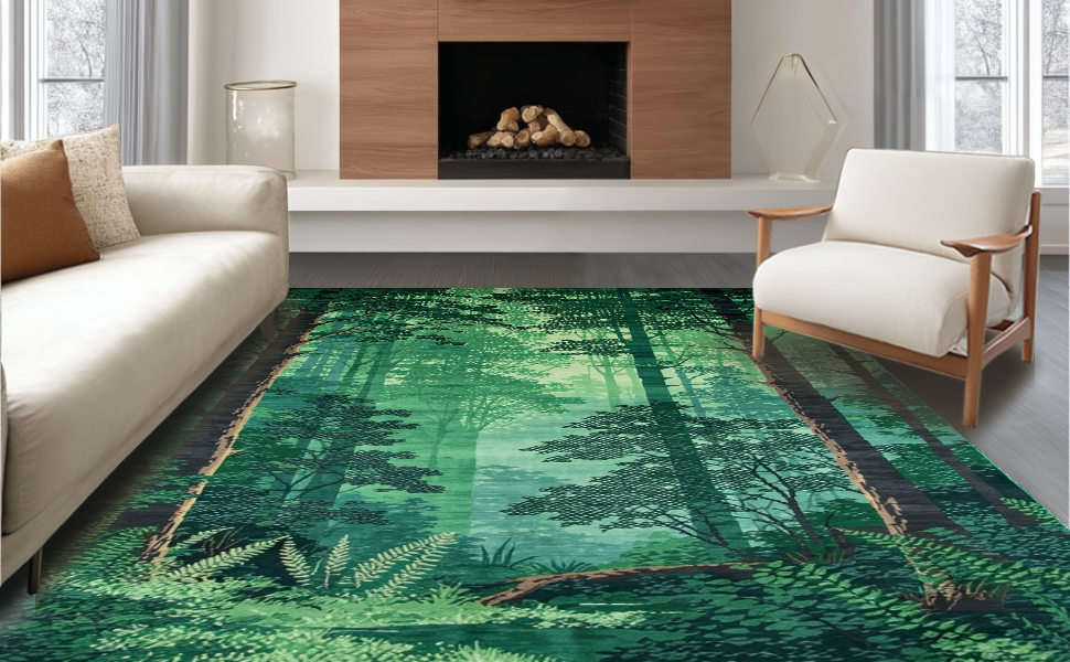 Ultra Soft Area Rug, Non Slip, Stain Resistant, Washable Area Rugs for Living Room, Bedroom, Soft Pastel Forest Fantasy Design(Green) Overview: