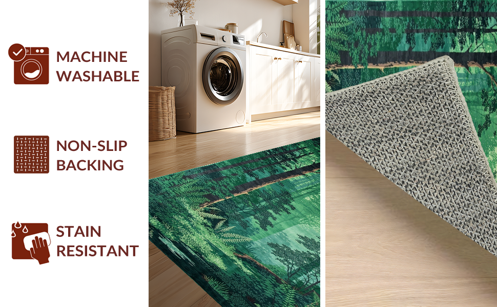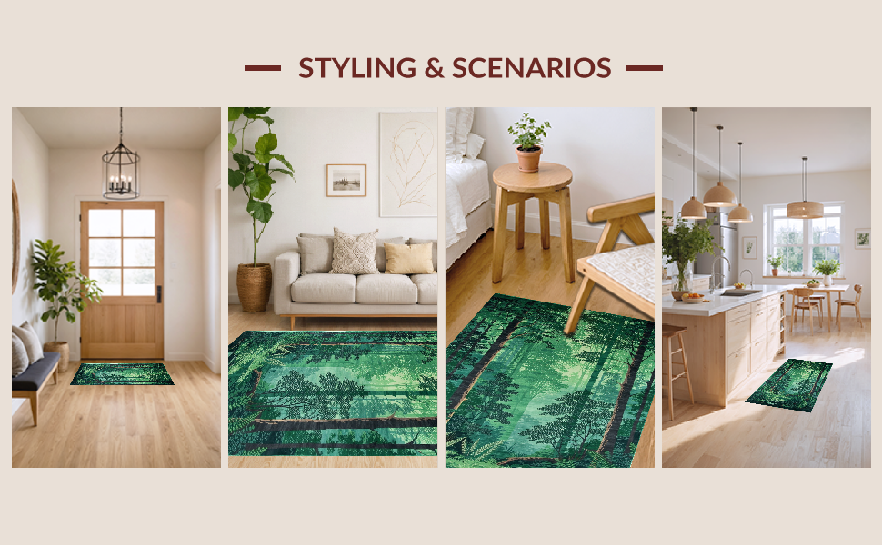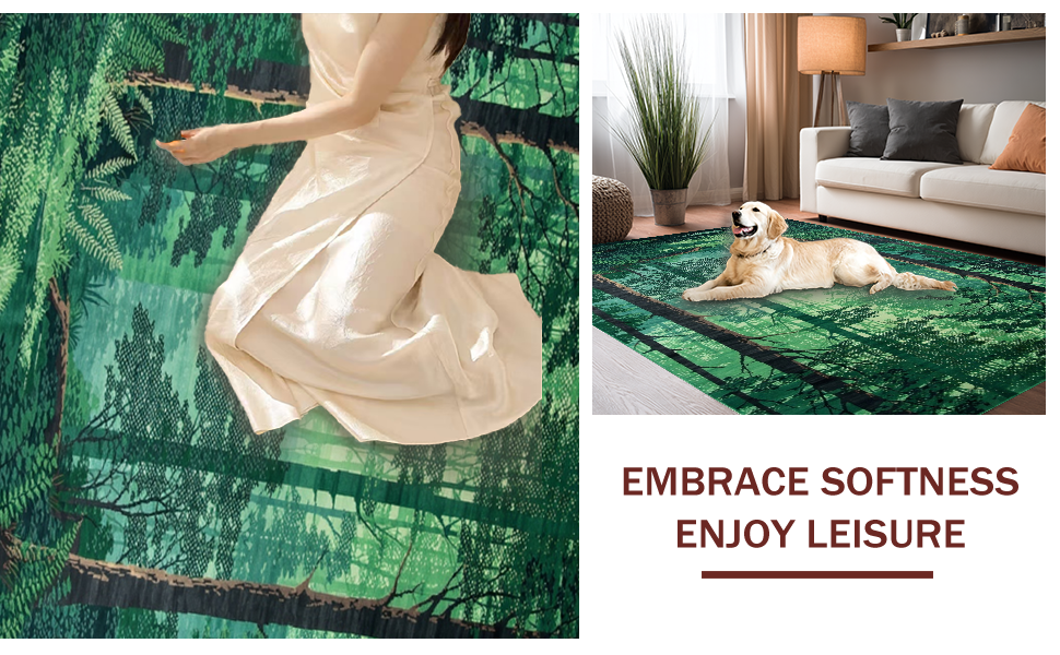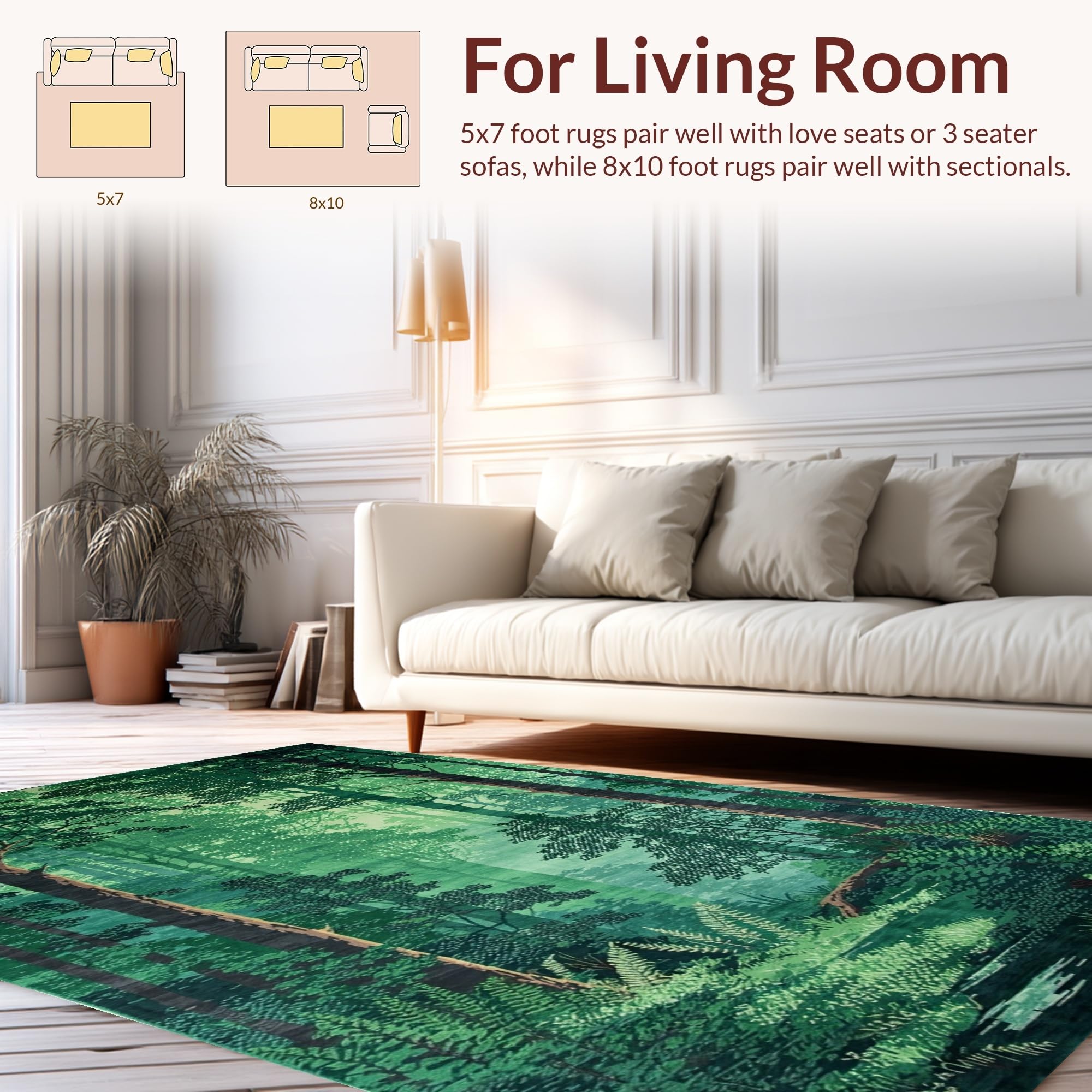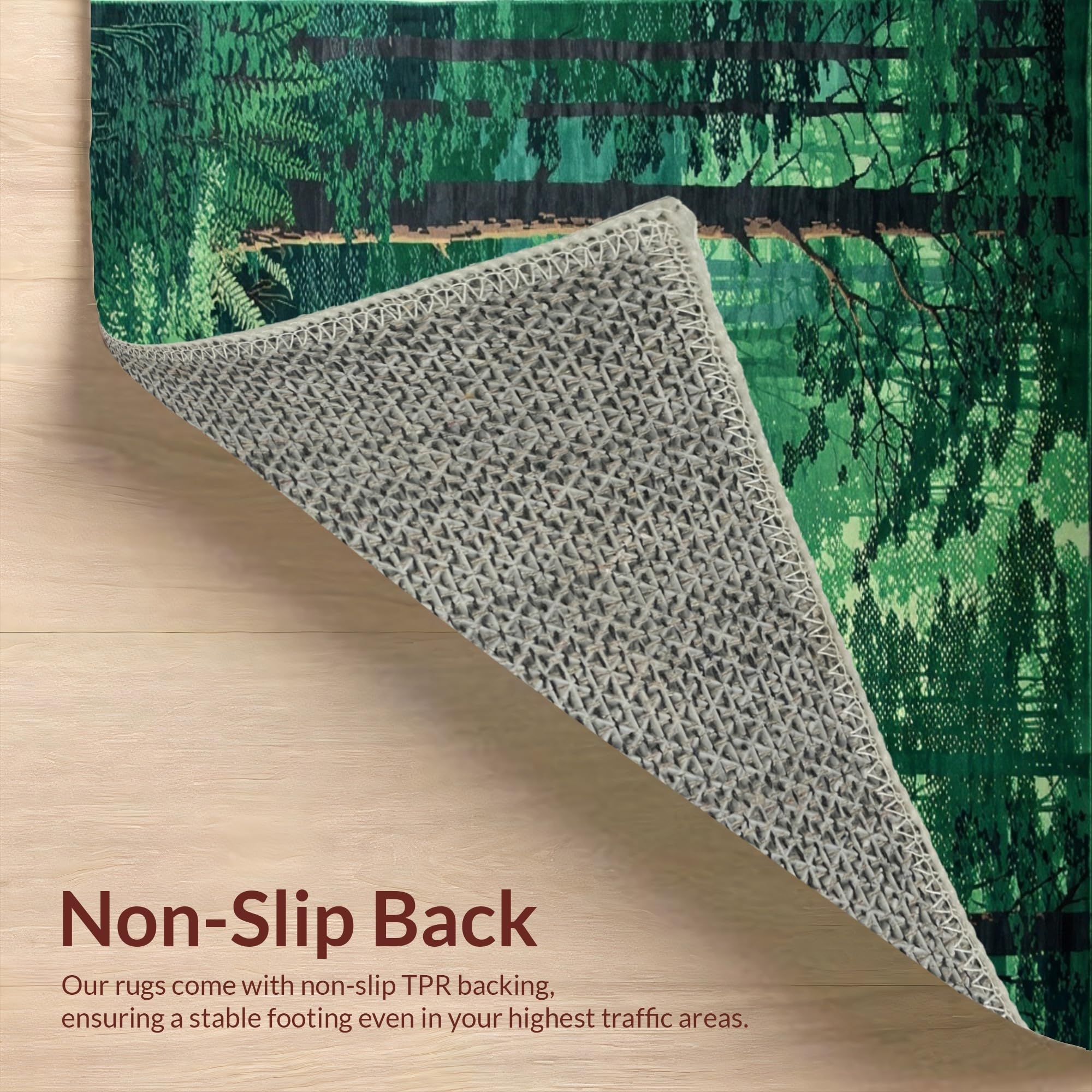 Ultra Soft Area Rug, Non Slip, Stain Resistant, Washable Area Rugs for Living Room, Bedroom, Soft Pastel Forest Fantasy Design(Green) Overview: