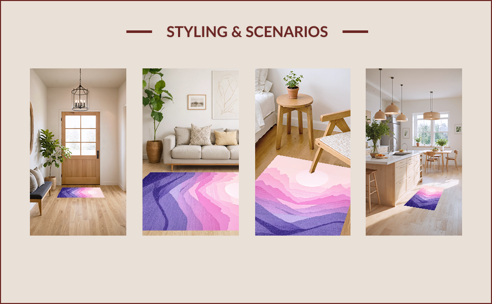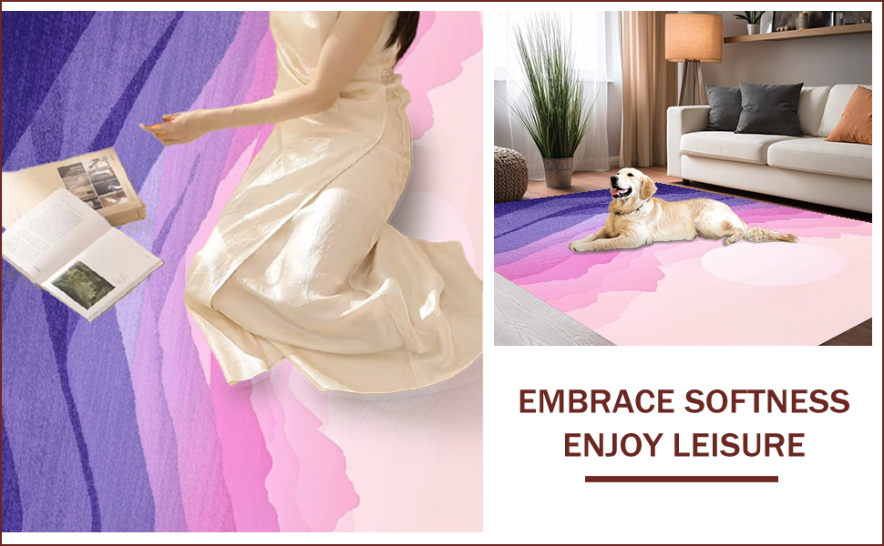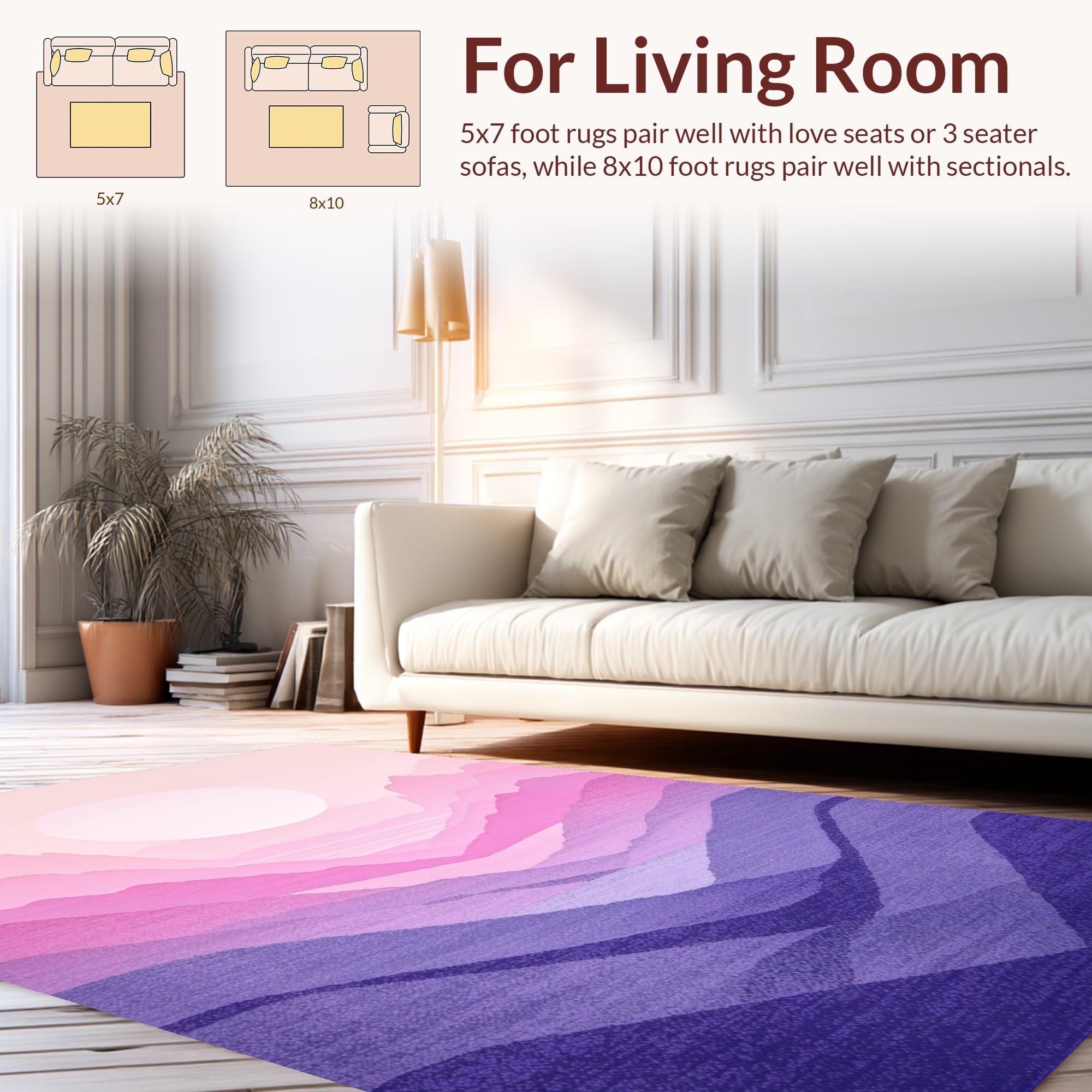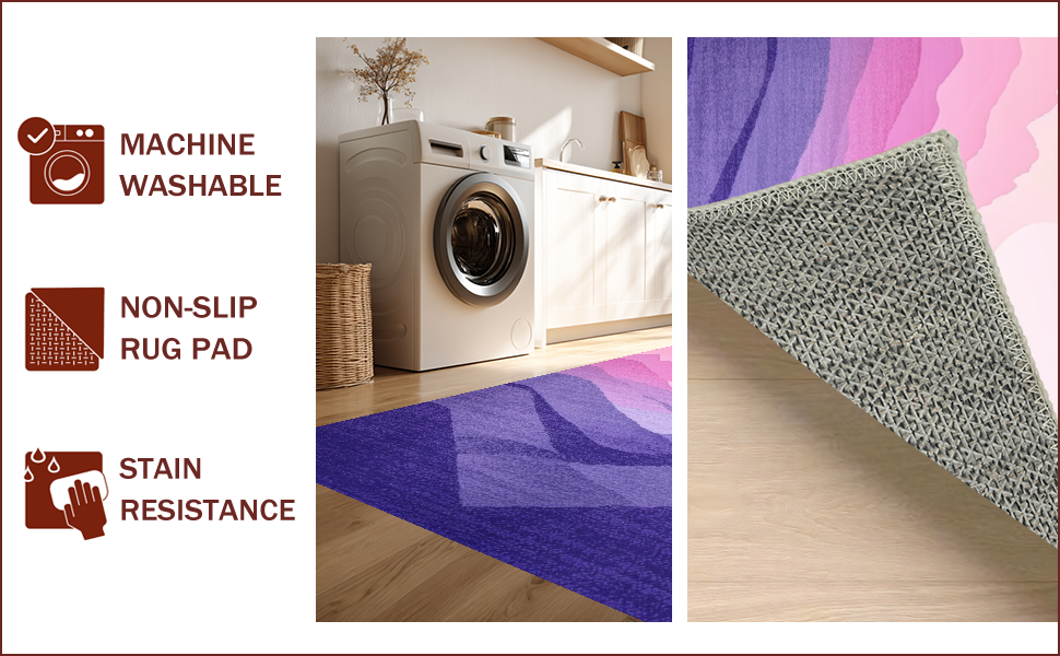 Ultra Soft Area Rug, Non Slip, Stain Resistant, Washable Area Rugs for Living Room, Bedroom, Soft Pastel Modern Artful Design(Purple) Overview: