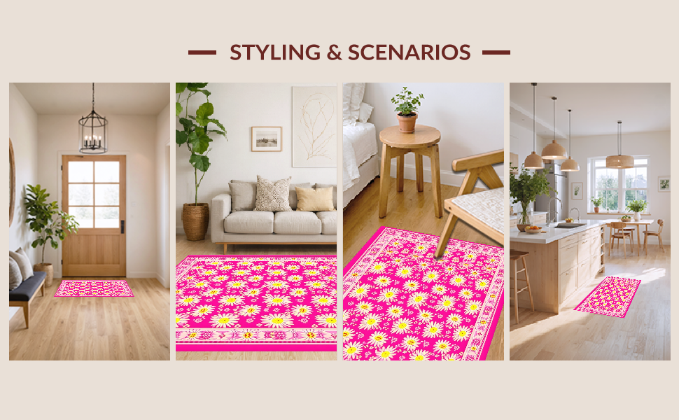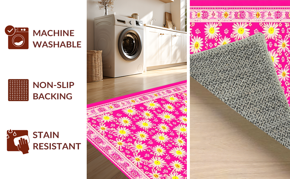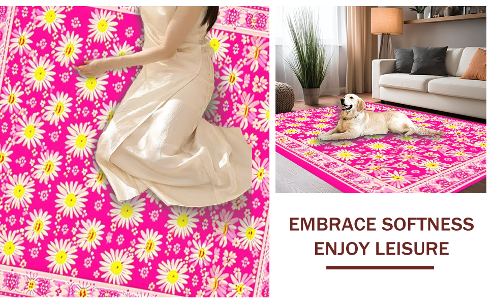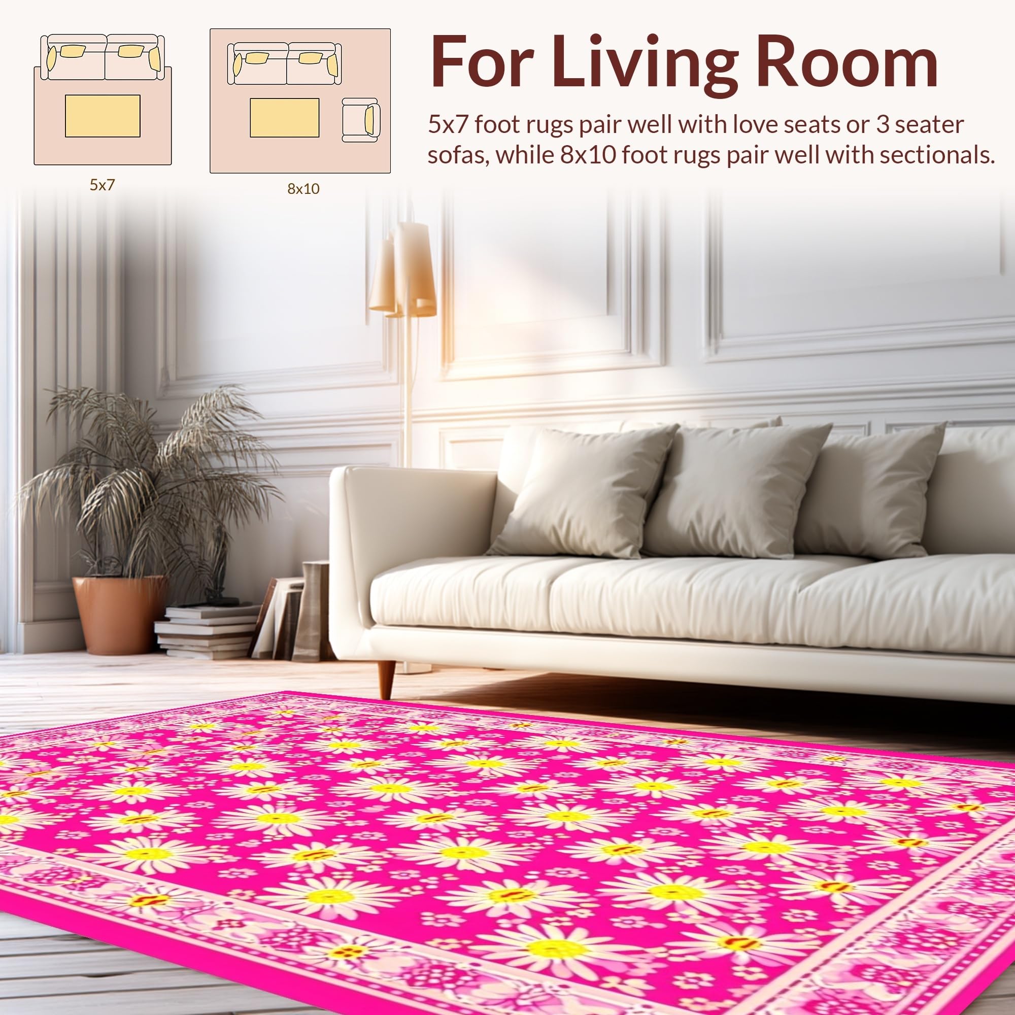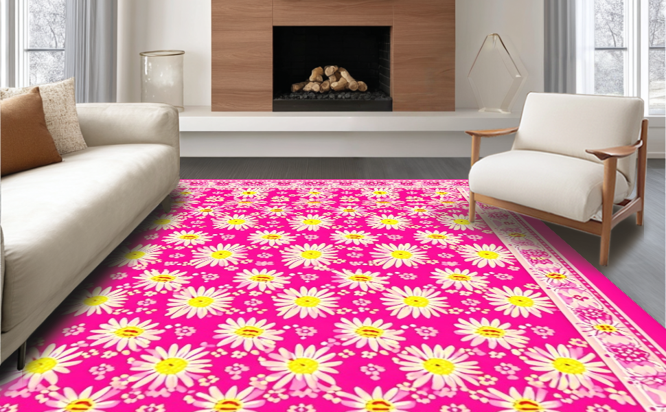 Ultra Soft Area Rug, Non Slip, Stain Resistant, Washable Area Rugs for Living Room, Bedroom, Soft Pink Daisy Print Delight(Pink) Overview: