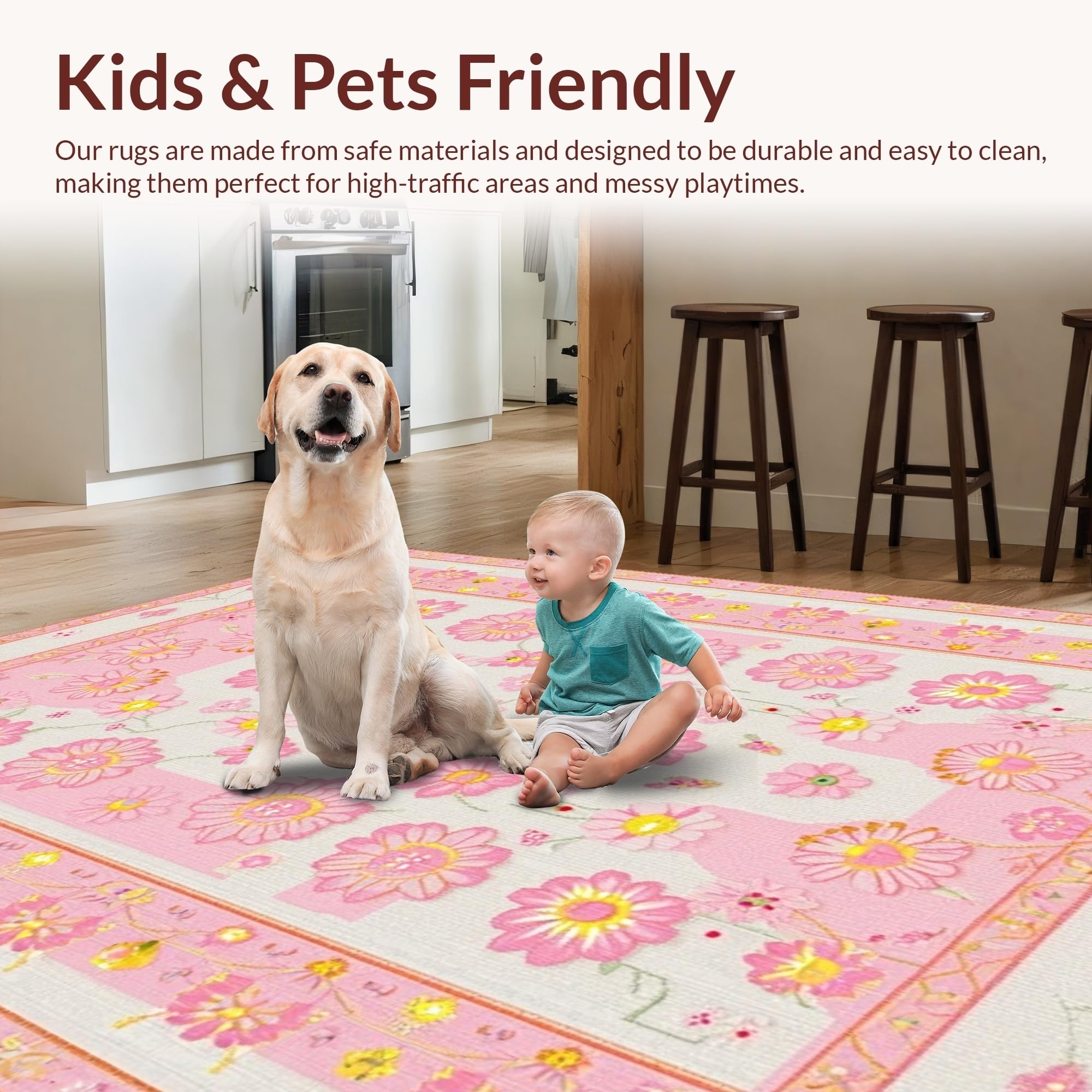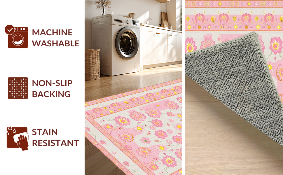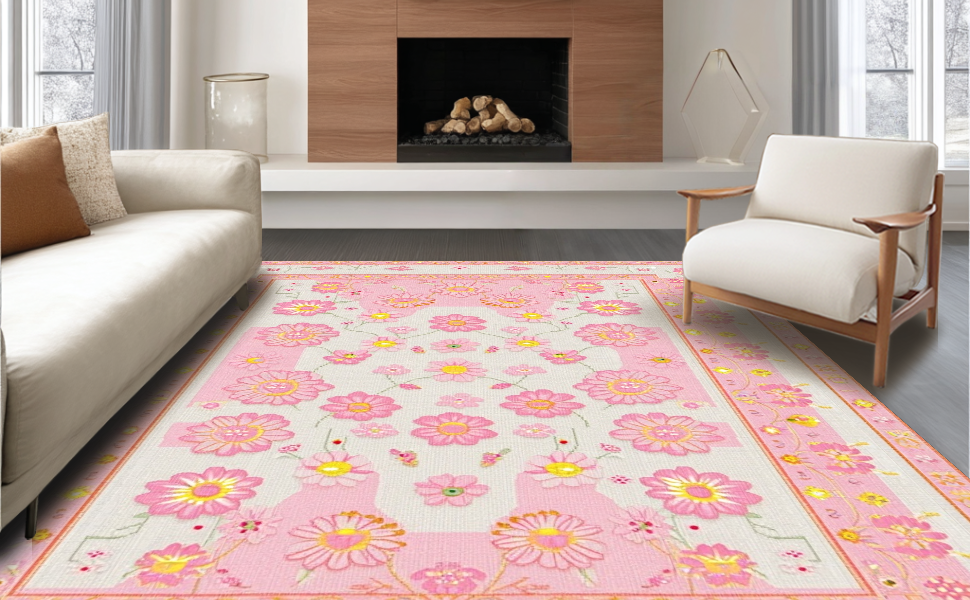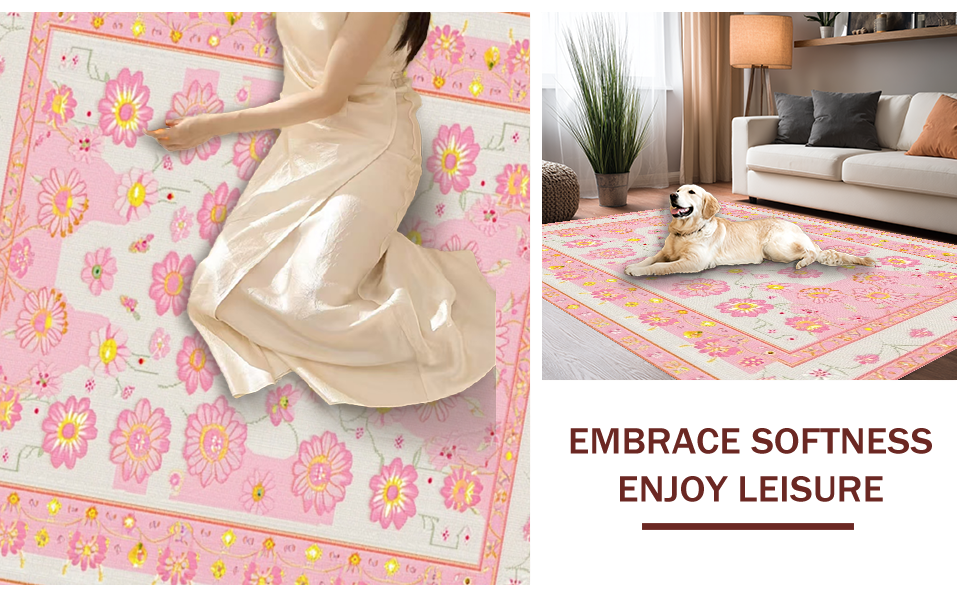 Ultra Soft Area Rug, Non Slip, Stain Resistant, Washable Area Rugs for Living Room, Bedroom, Soft Pink Nature Inspired Elements(Pink) Overview: