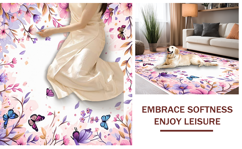 Ultra Soft Area Rug, Non Slip, Stain Resistant, Washable Area Rugs for Living Room, Bedroom, Soft Subtle Nature-Inspired Aesthetic(Pink) Overview: