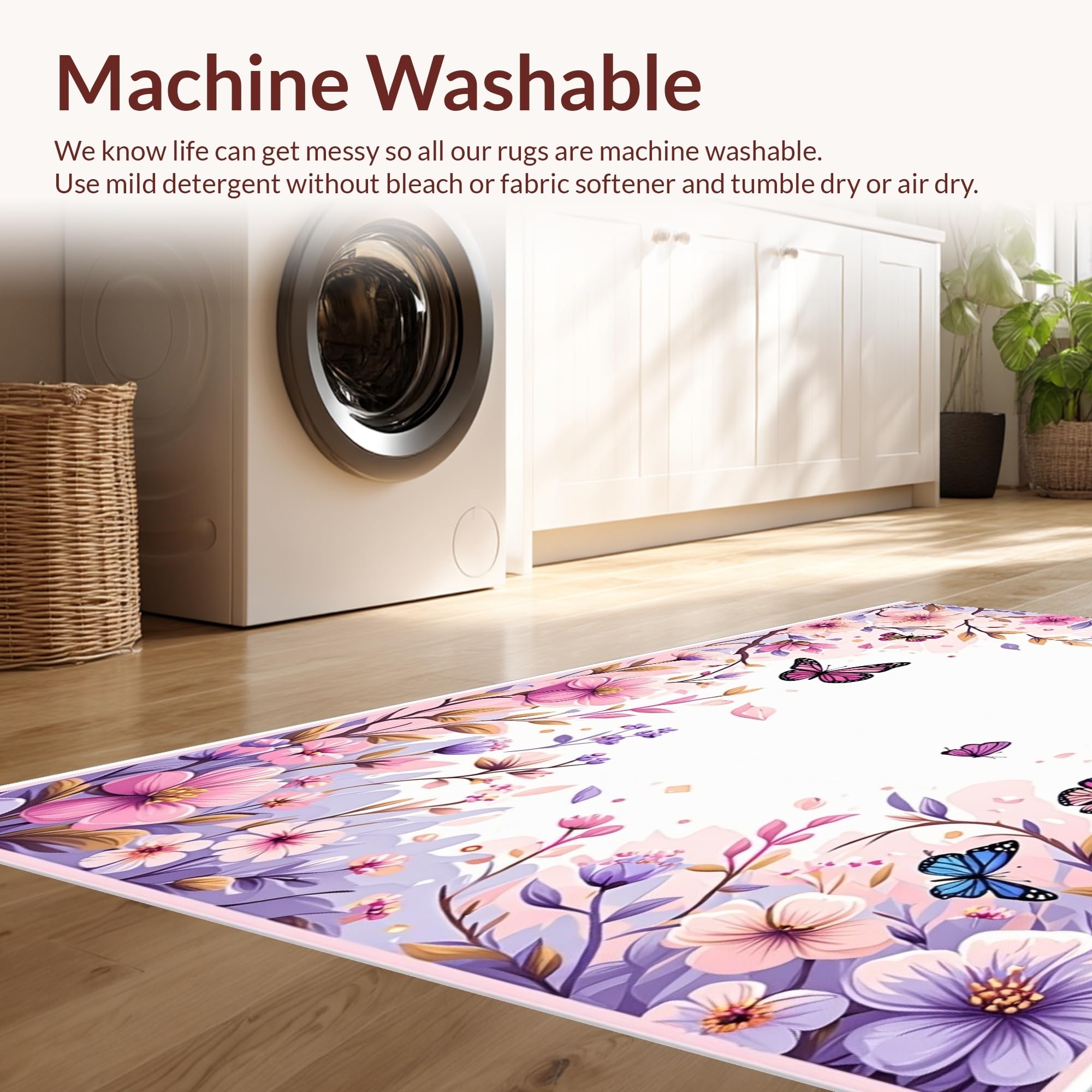 - Machine Washable: Our rugs can be easily thrown in the wash machine.