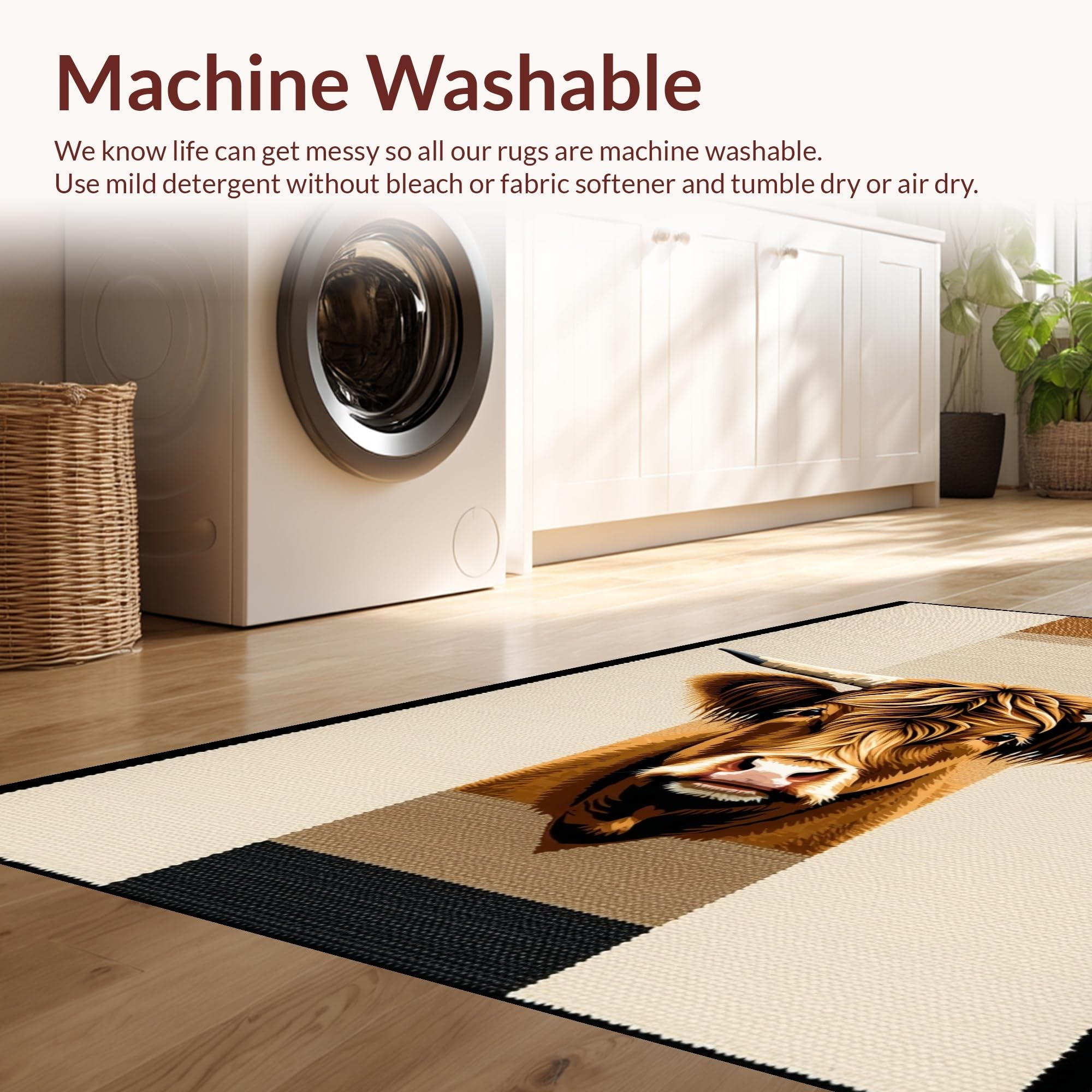 - Machine Washable: Our rugs can be easily thrown in the wash machine.