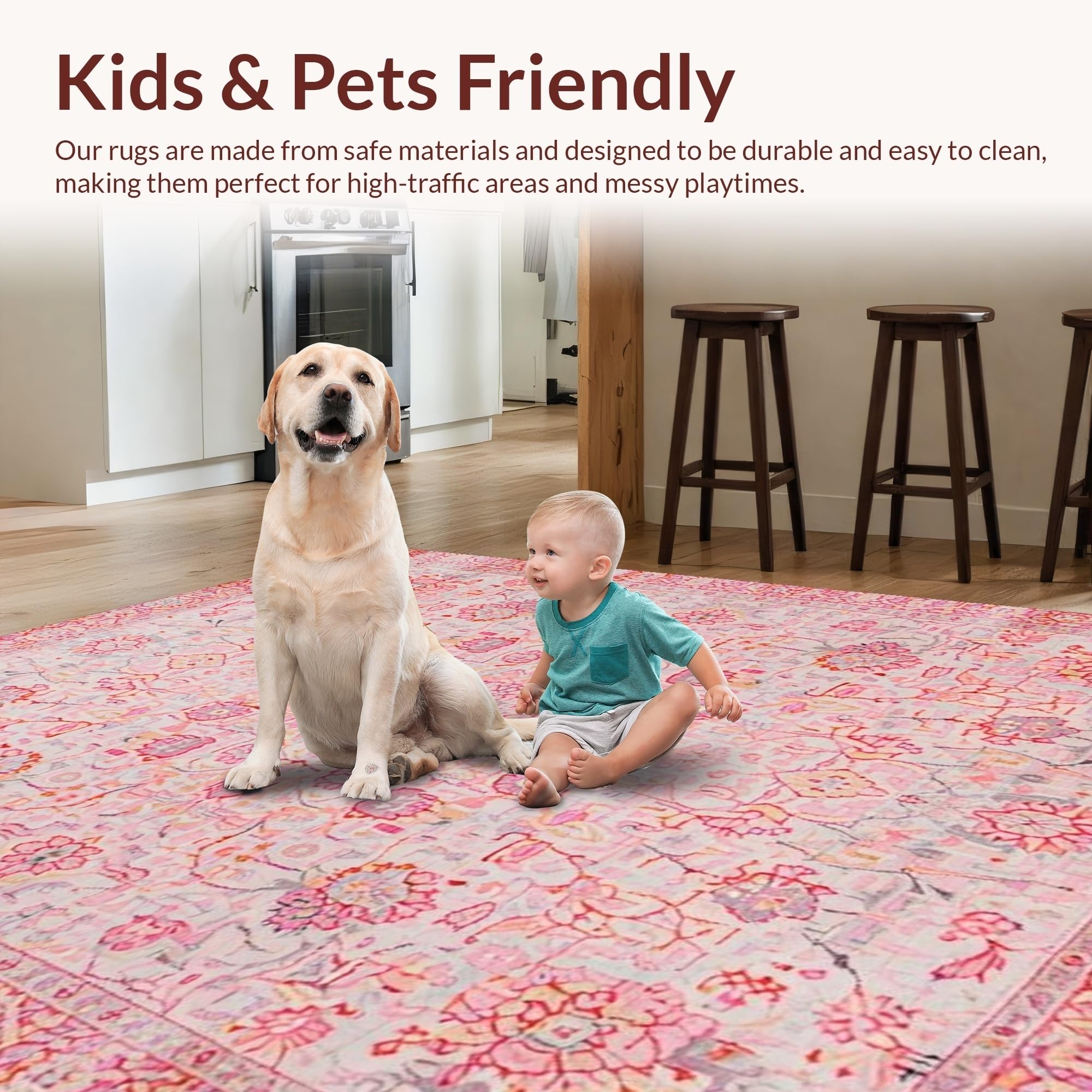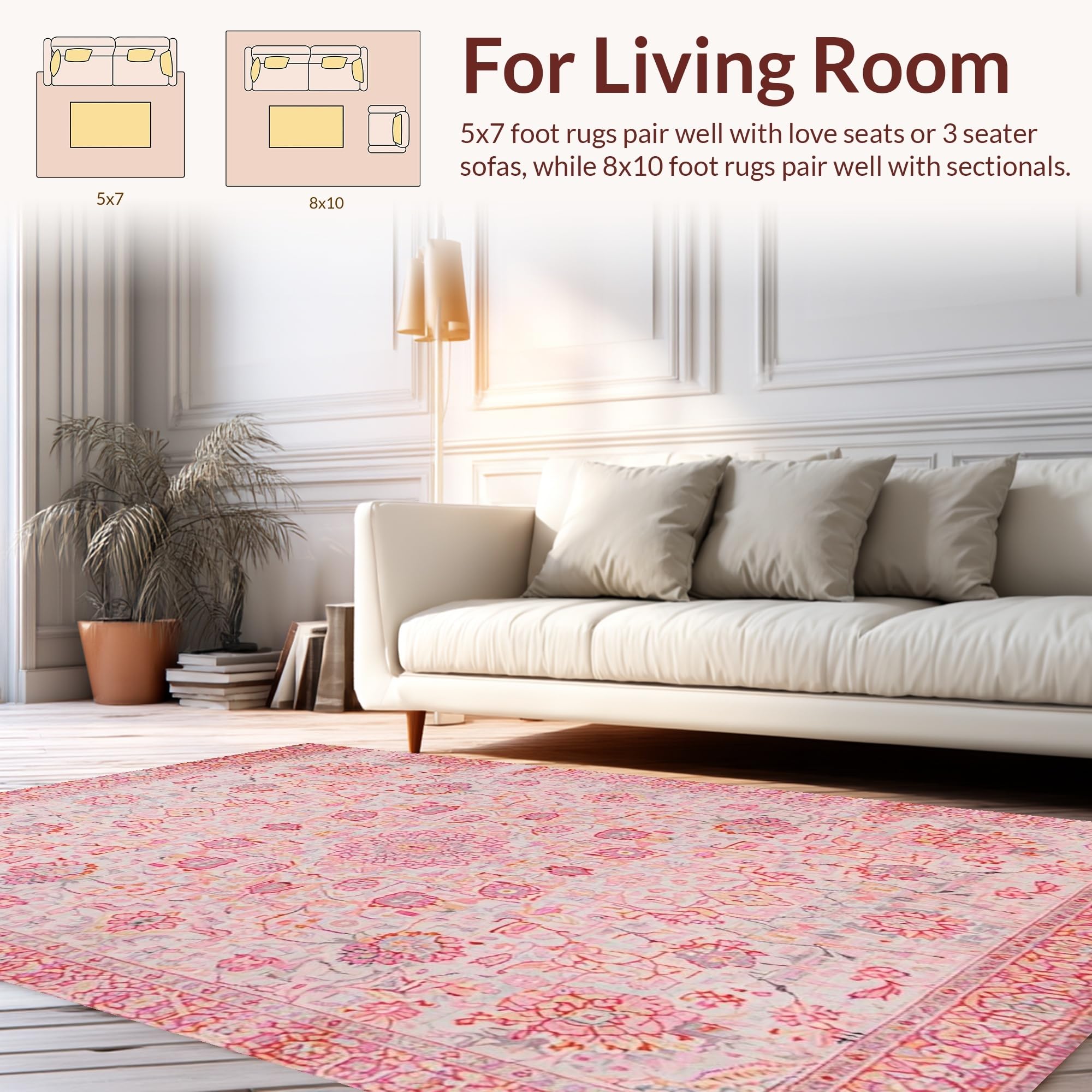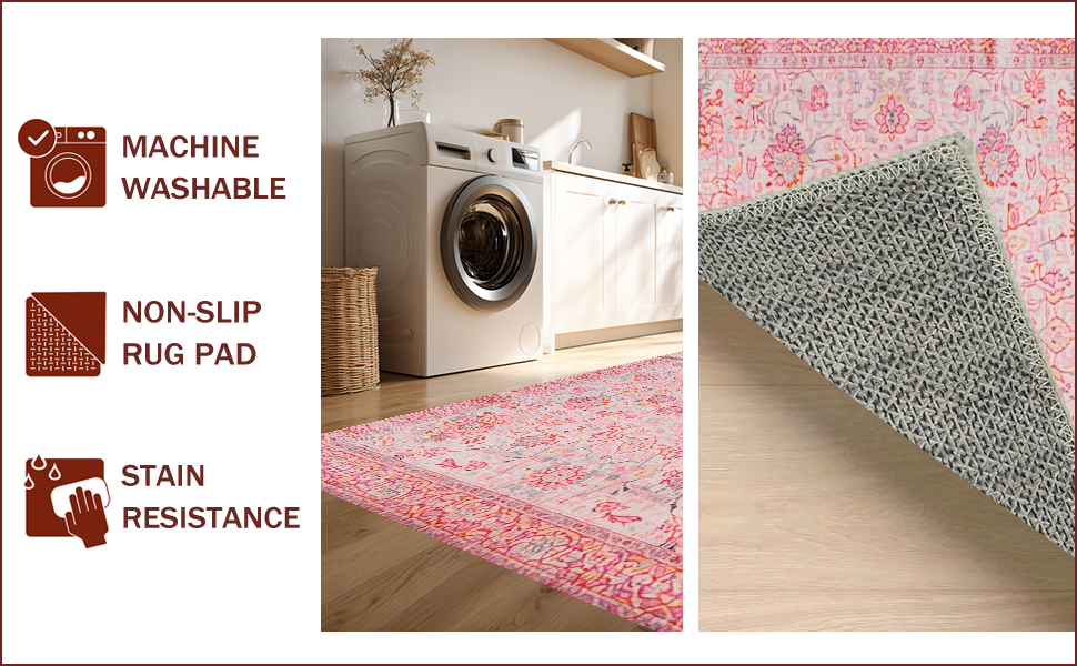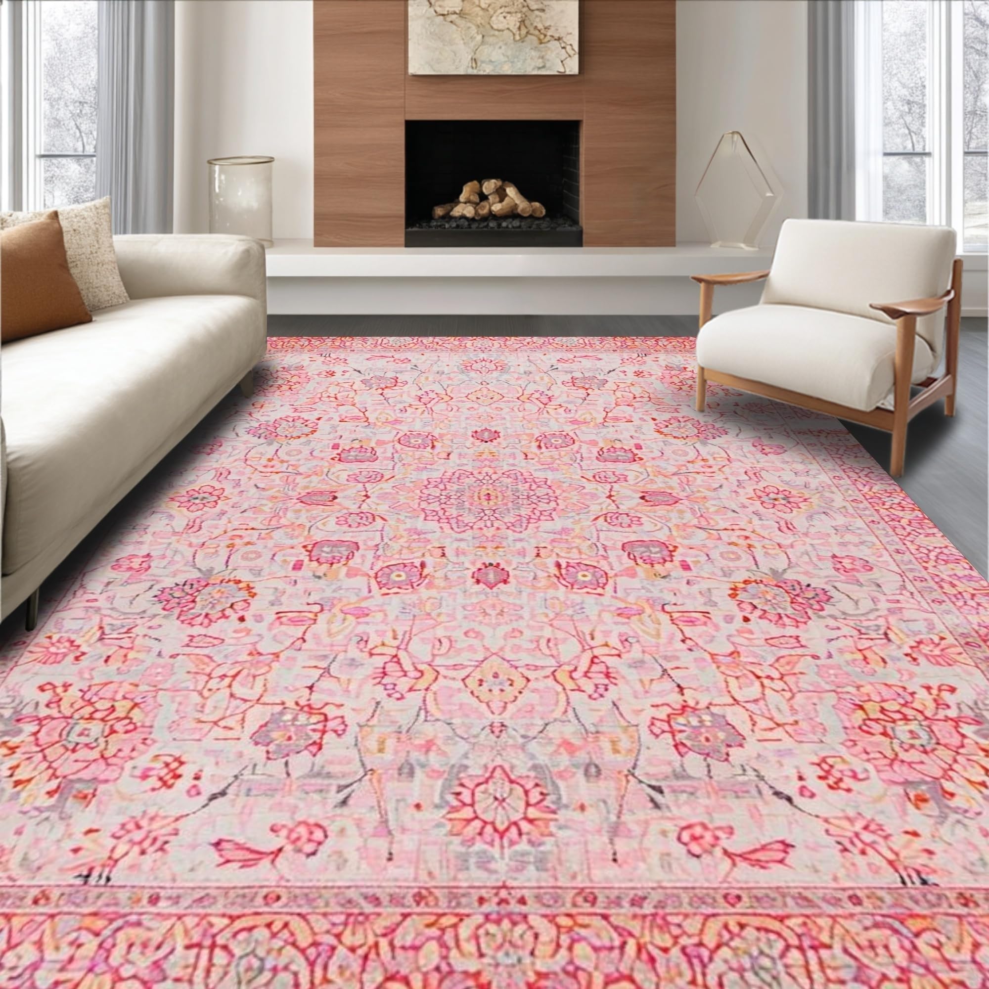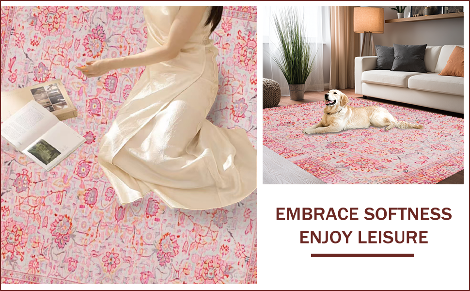 Ultra Soft Area Rug, Non Slip, Stain Resistant, Washable Area Rugs for Living Room, Bedroom, Soft Textured Romantic Blossom(Pink) Overview: