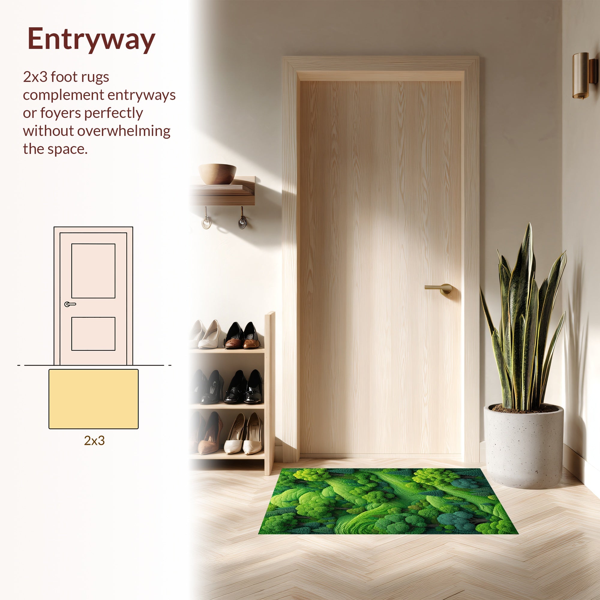 Flatwoven High Traffic Area Rug, Aesthetic Shower with Botanical Design, Non Slip, Stain Resistant, Washable Area Rugs for Living Room, Bedroom (Green) Overview: