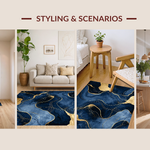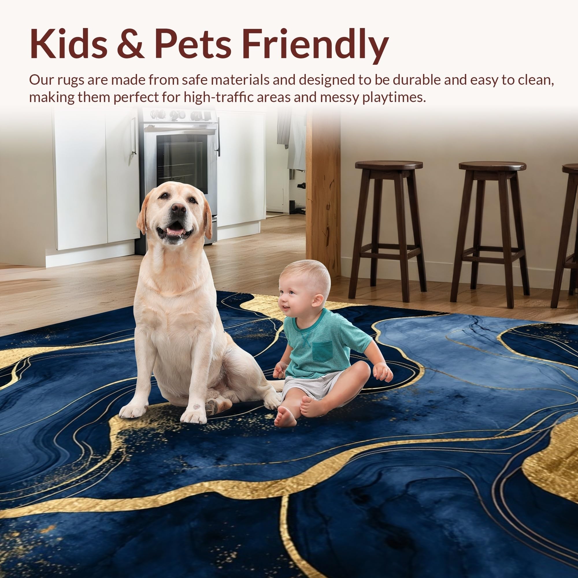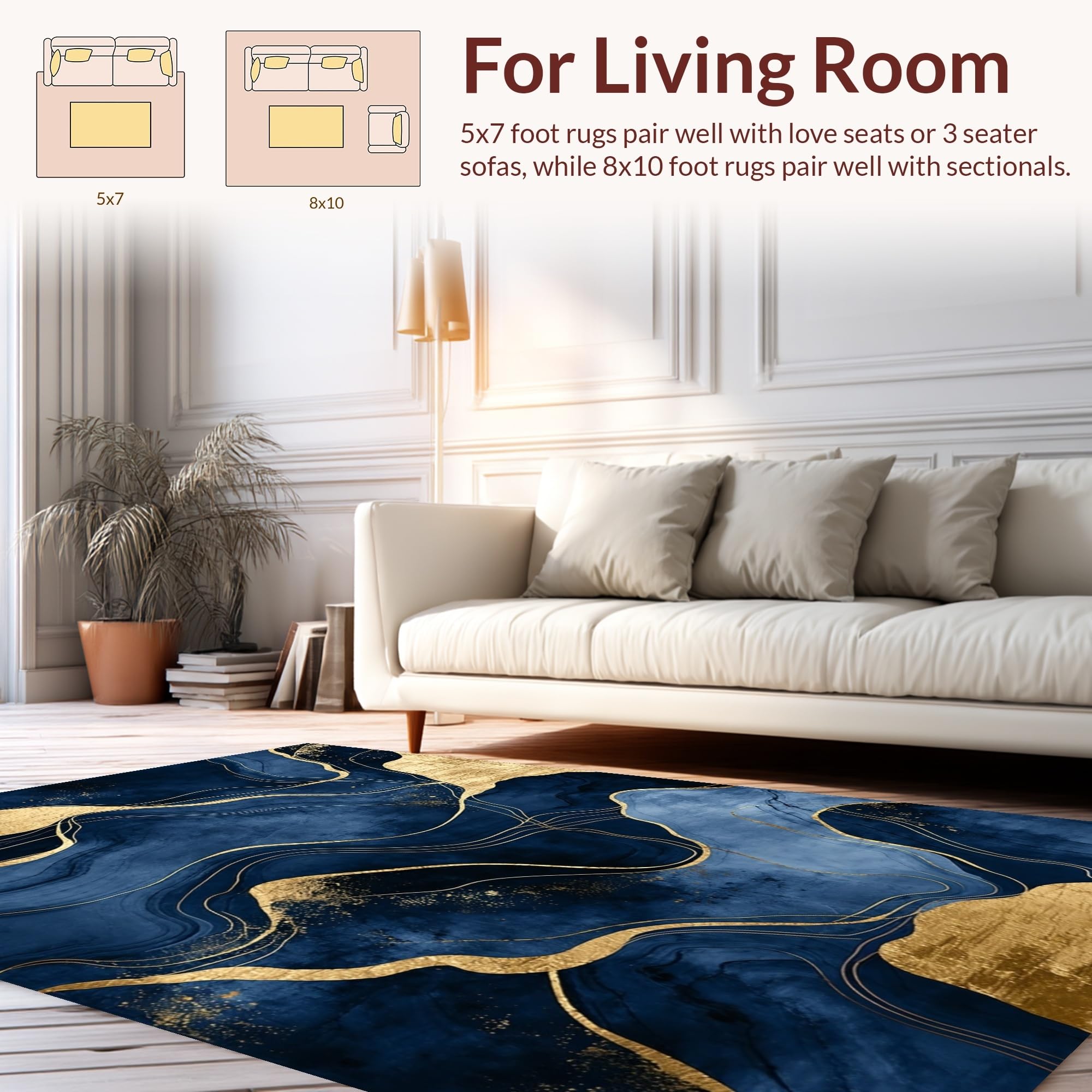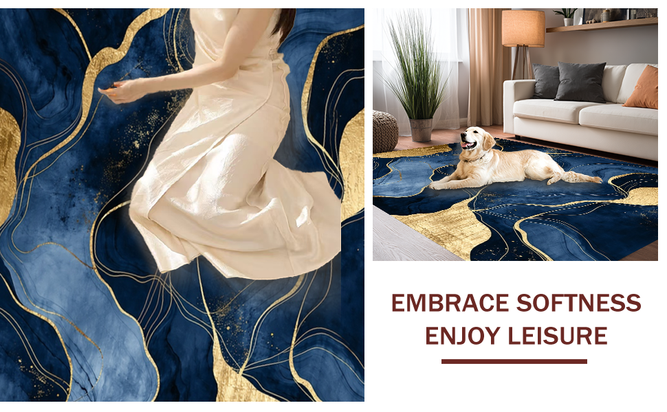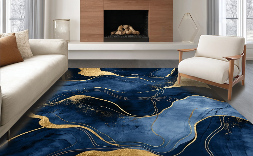 Ultra Soft Area Rug, Non Slip, Stain Resistant, Washable Area Rugs for Living Room, Bedroom, Sophisticated Abstract Fluid Pattern(Blue) Overview: