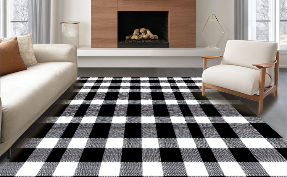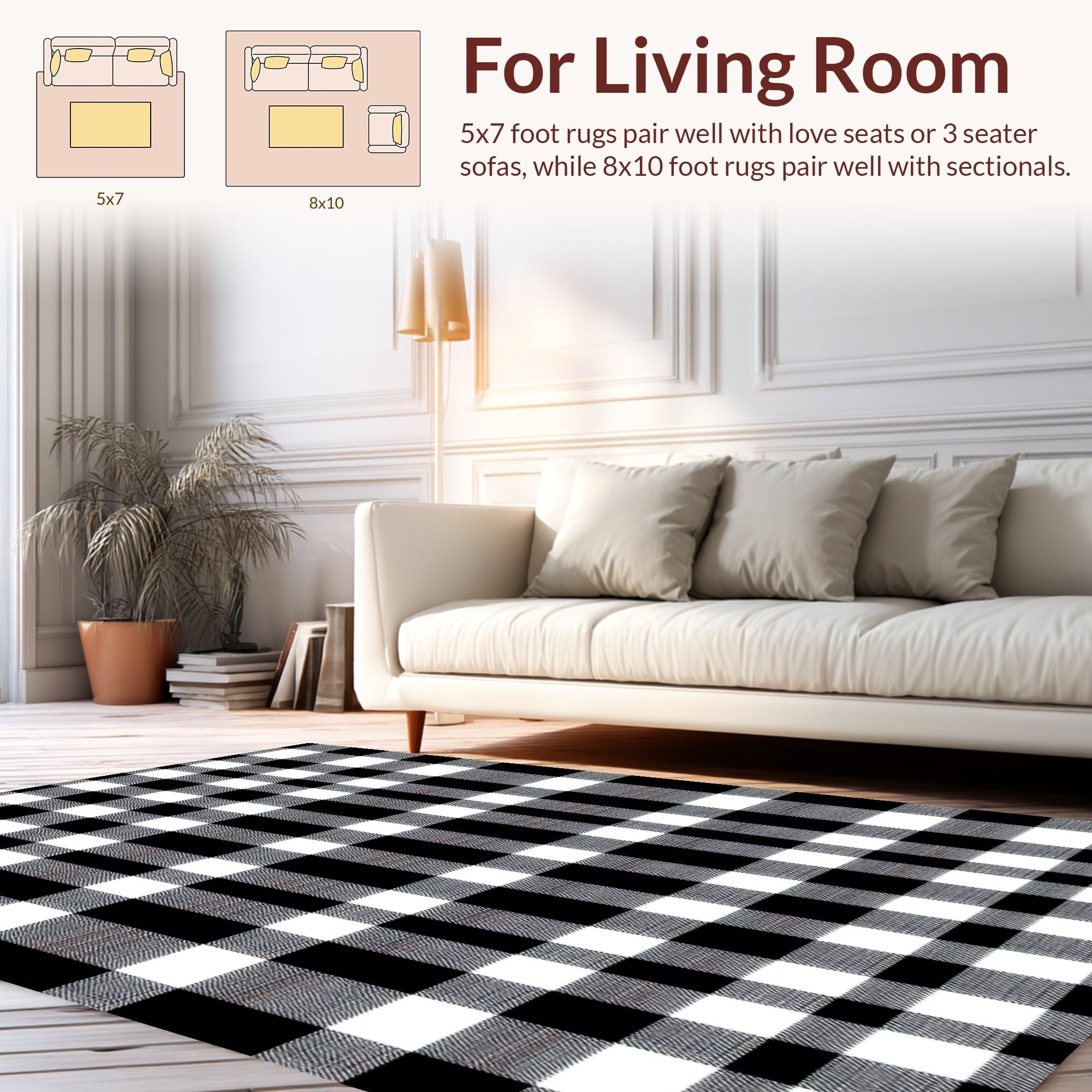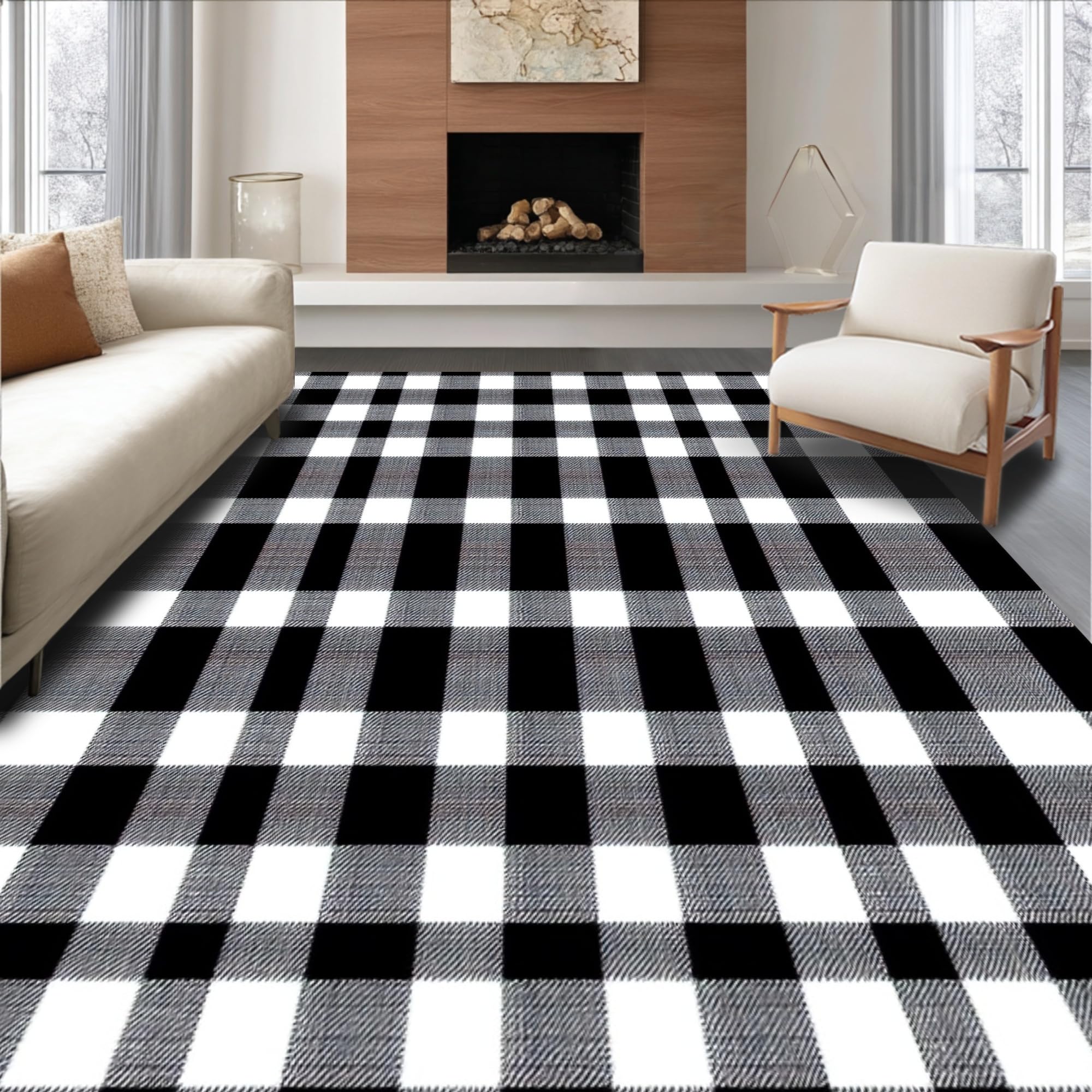 Ultra Soft Area Rug, Non Slip, Stain Resistant, Washable Area Rugs for Living Room, Bedroom, Sophisticated Abstract Tiled Appearance(Black) Overview: