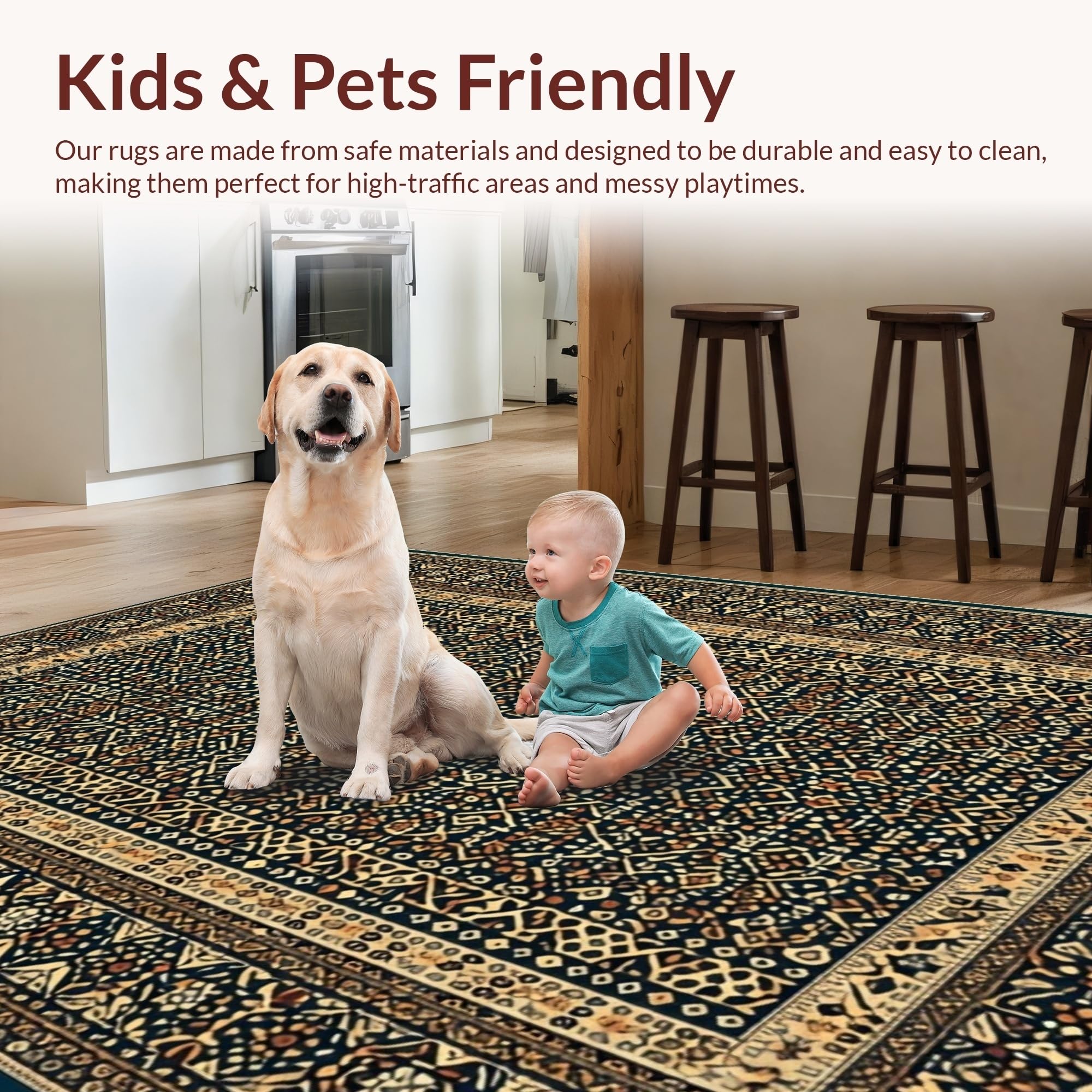 Ultra Soft Area Rug, Non Slip, Stain Resistant, Washable Area Rugs for Living Room, Bedroom, Sophisticated Abstract Tiled Arrangement(Black) Overview: