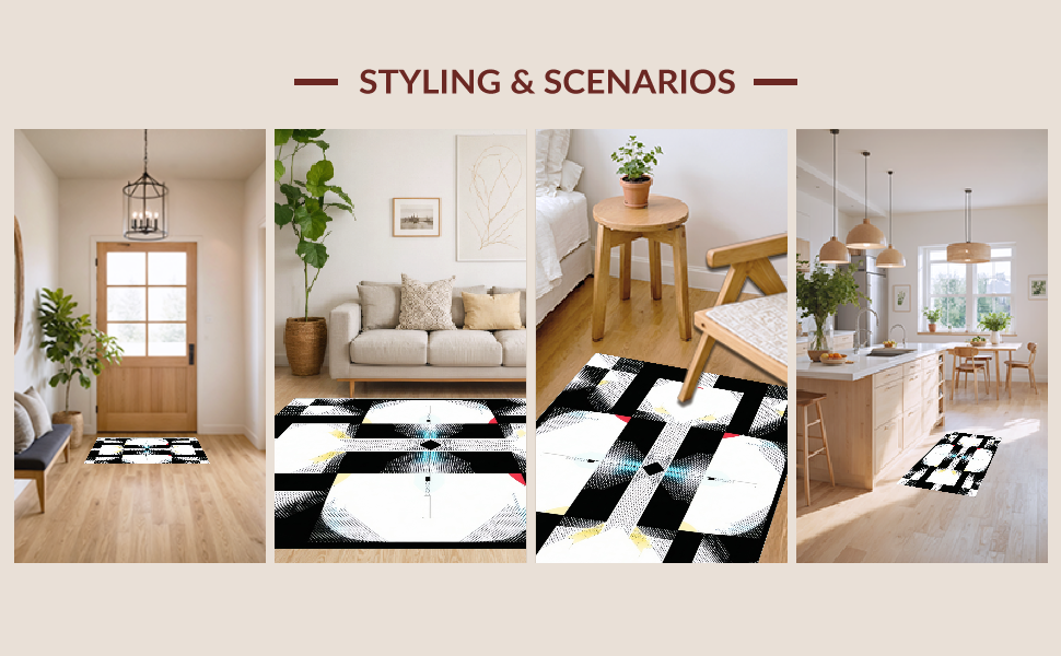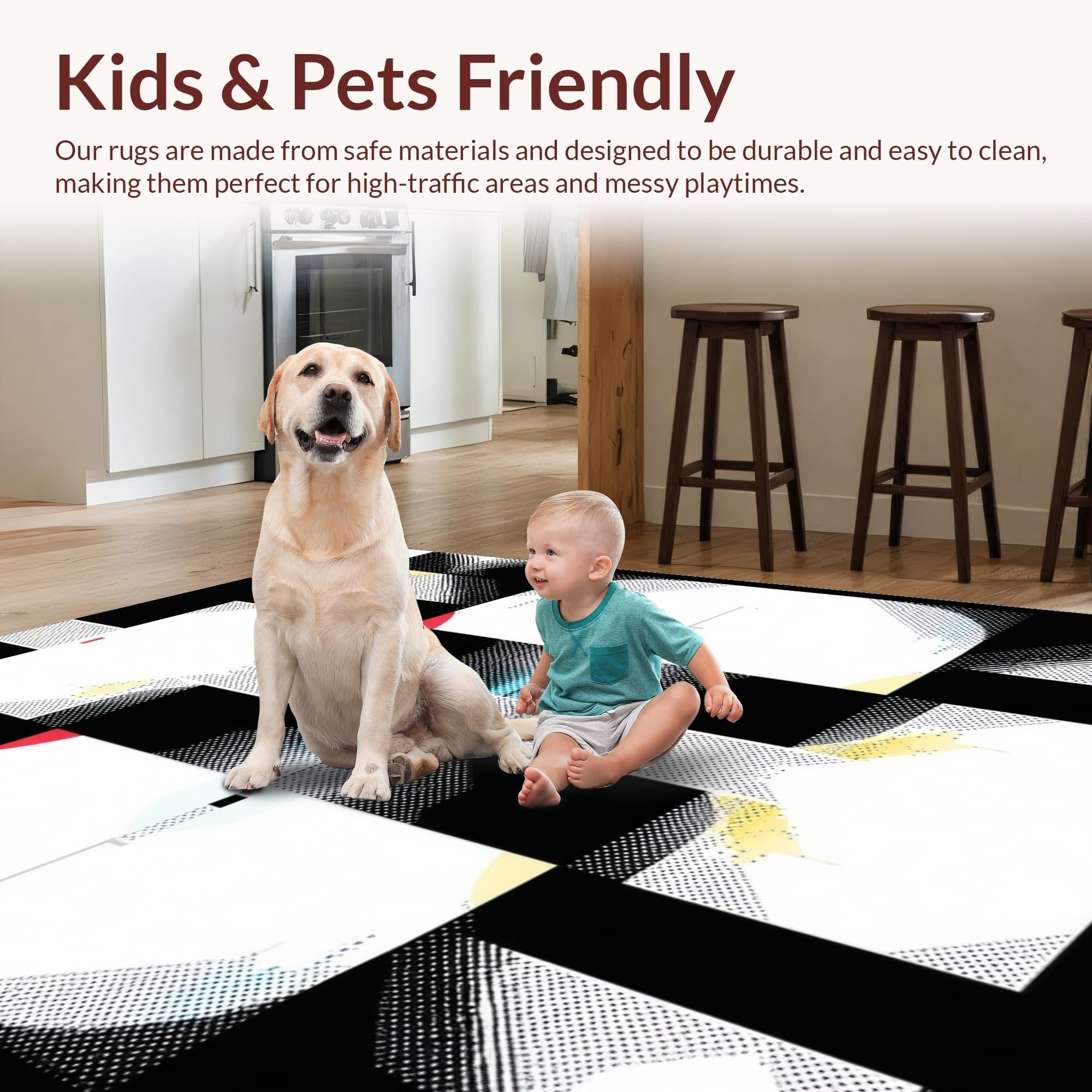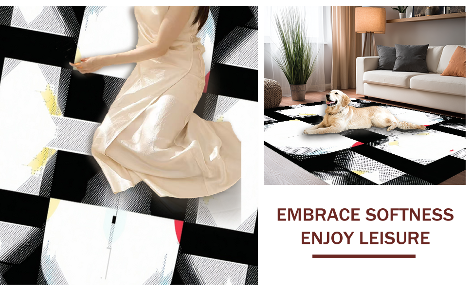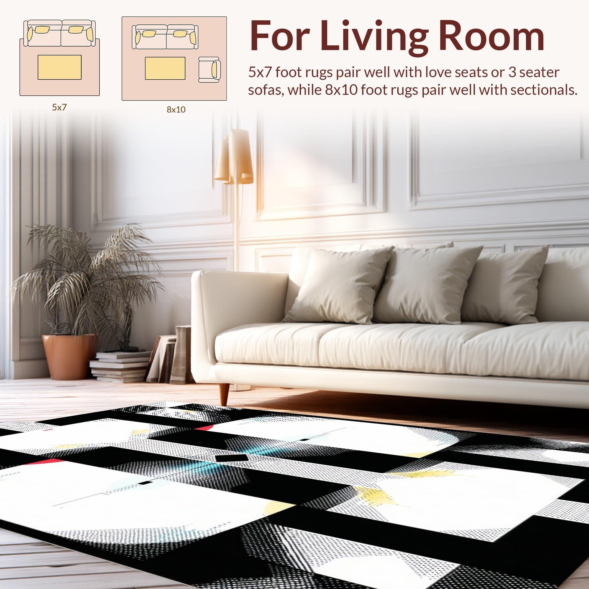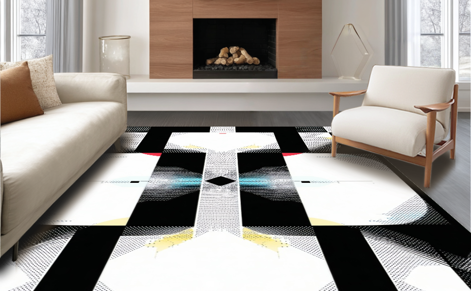 Ultra Soft Area Rug, Non Slip, Stain Resistant, Washable Area Rugs for Living Room, Bedroom, Sophisticated Artistic Black and White Theme(White) Overview: