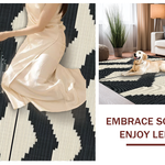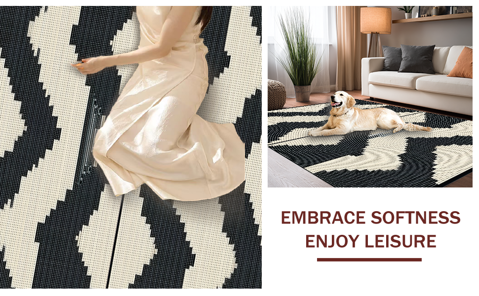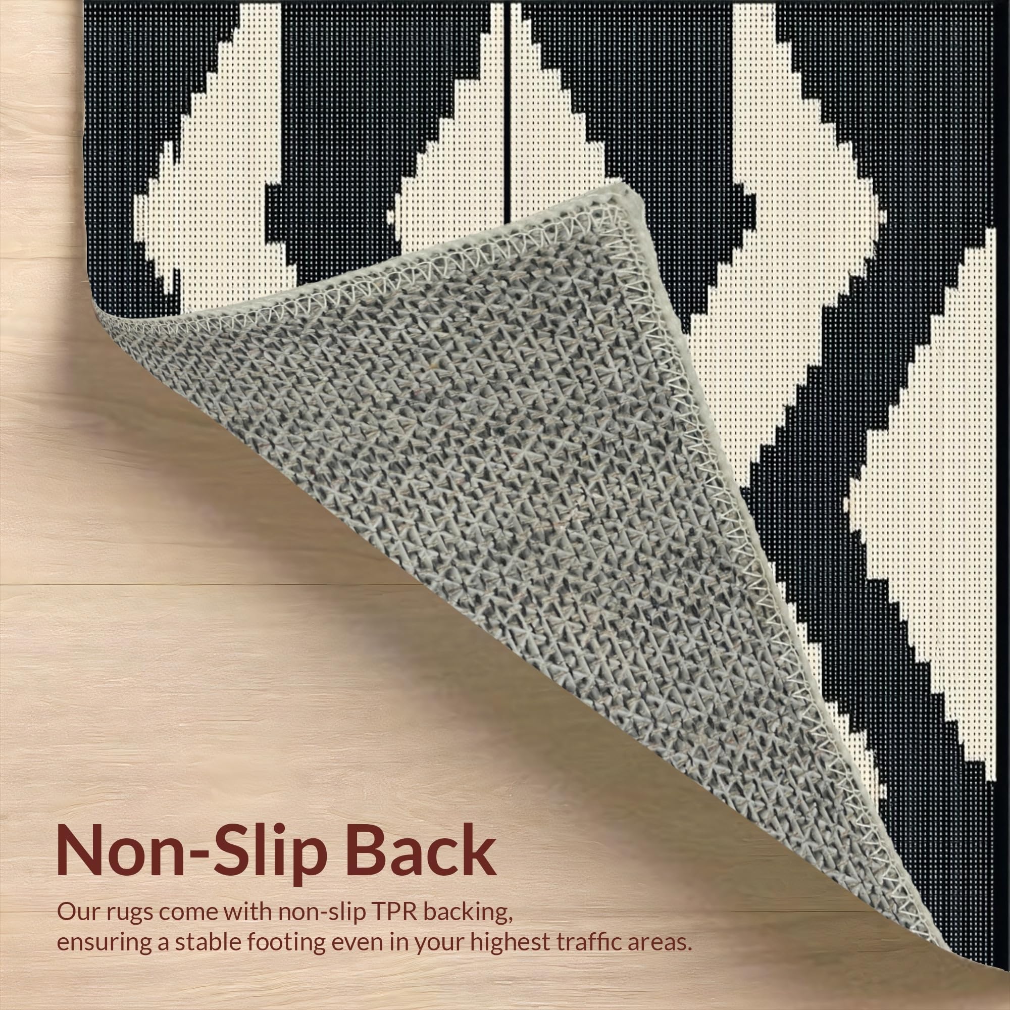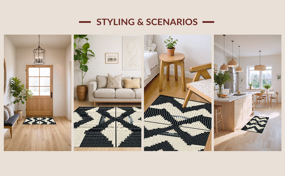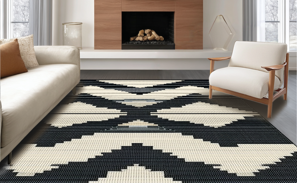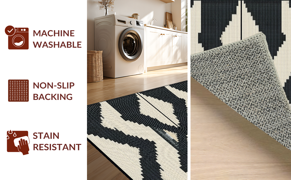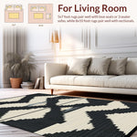 Ultra Soft Area Rug, Non Slip, Stain Resistant, Washable Area Rugs for Living Room, Bedroom, Sophisticated Black and Beige Tiling(Black) Overview: