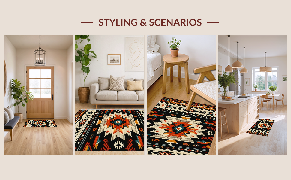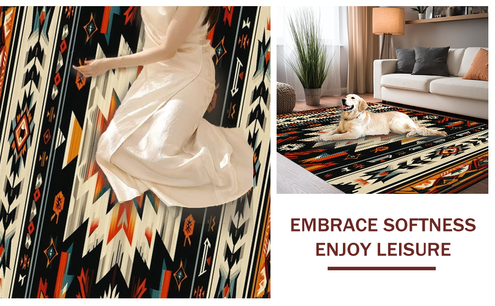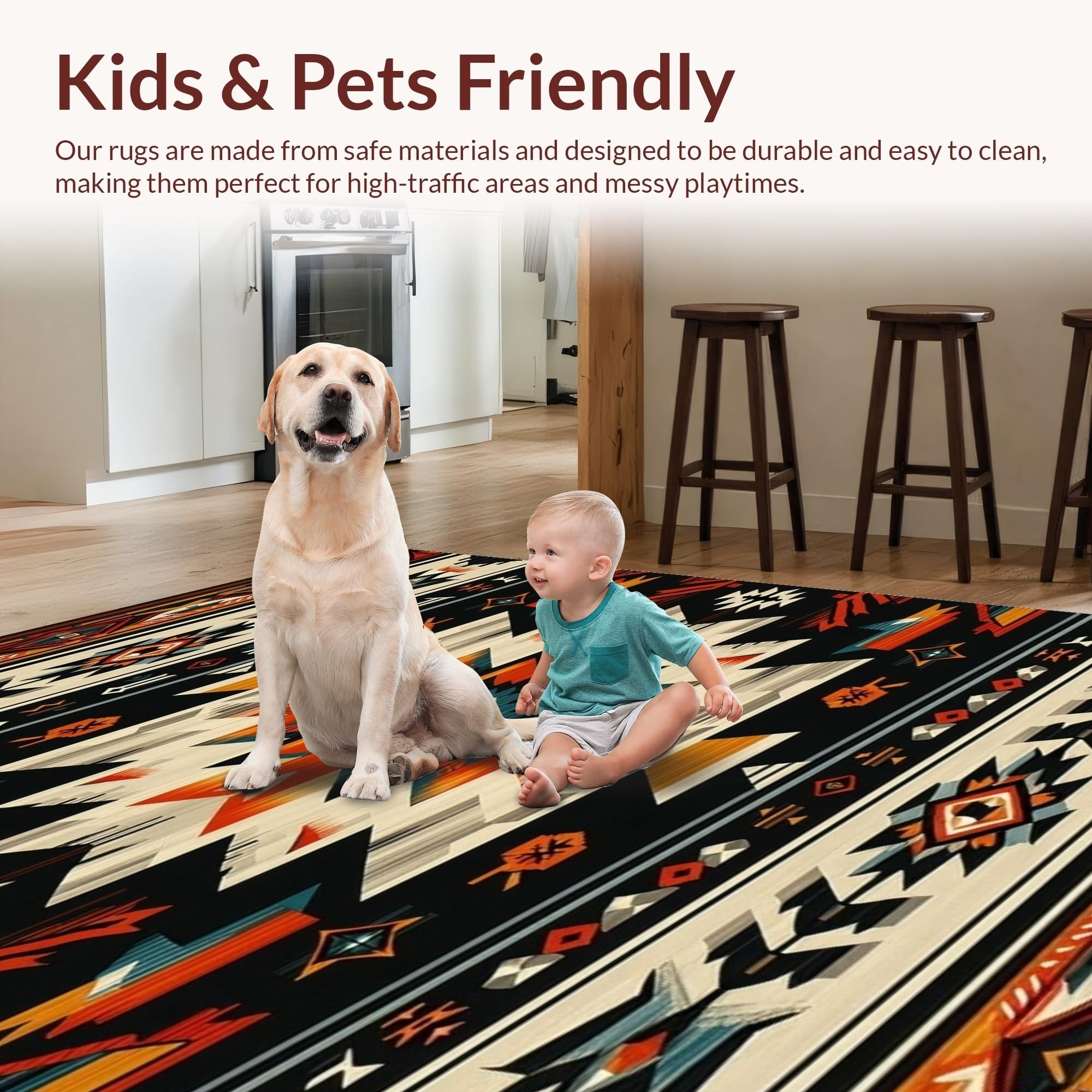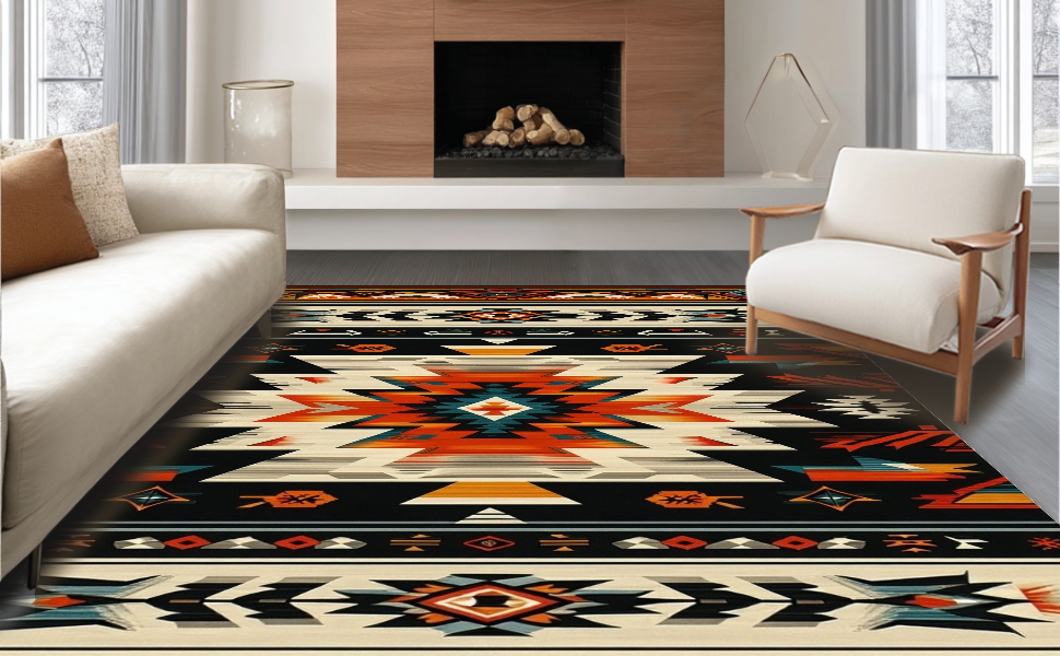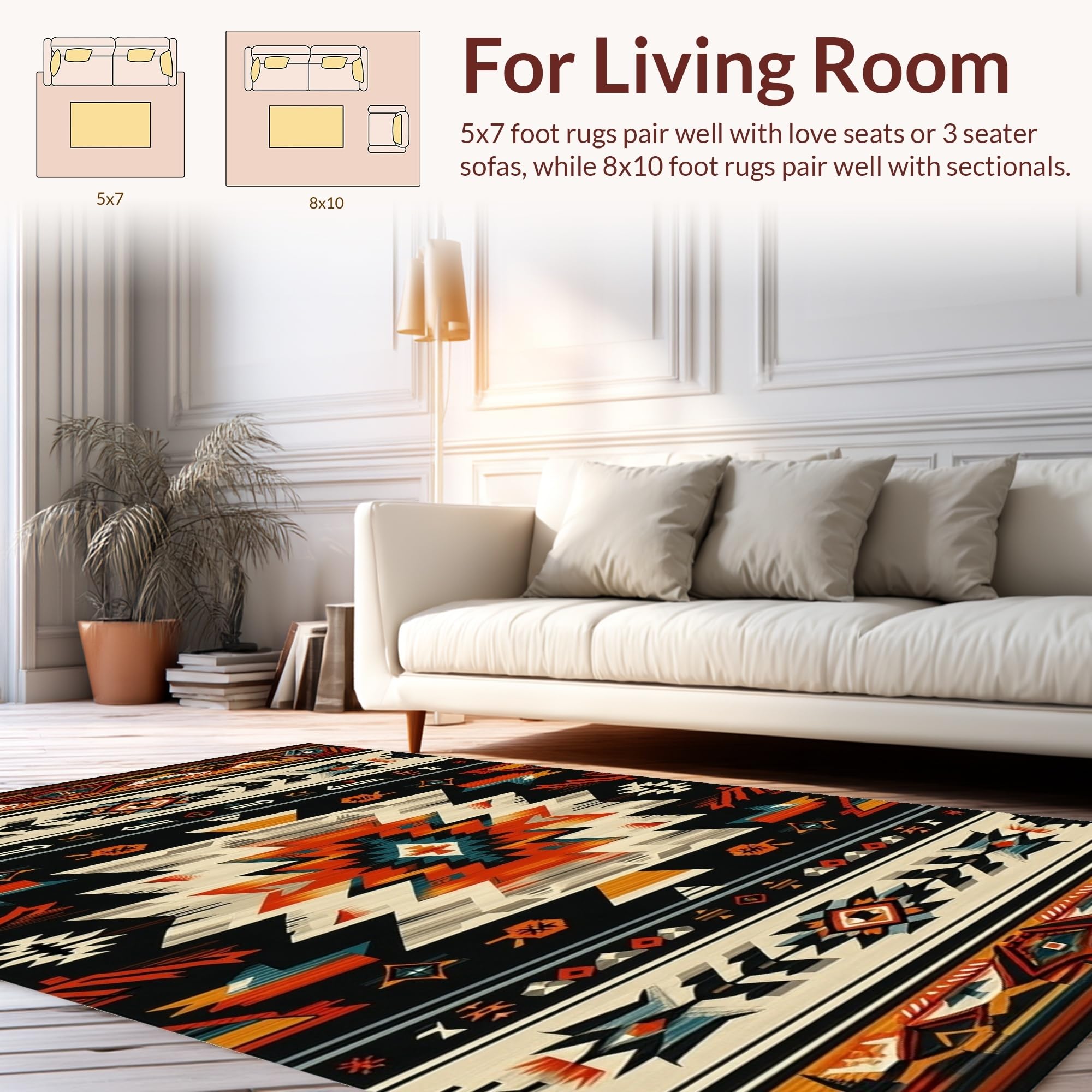 Ultra Soft Area Rug, Non Slip, Stain Resistant, Washable Area Rugs for Living Room, Bedroom, Sophisticated Black and White Ethno-Design(Red) Overview:
