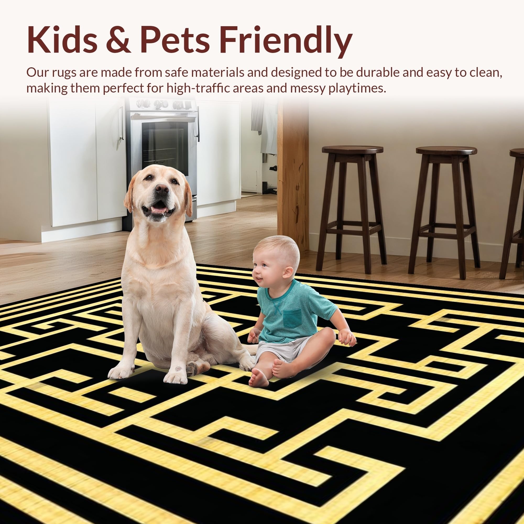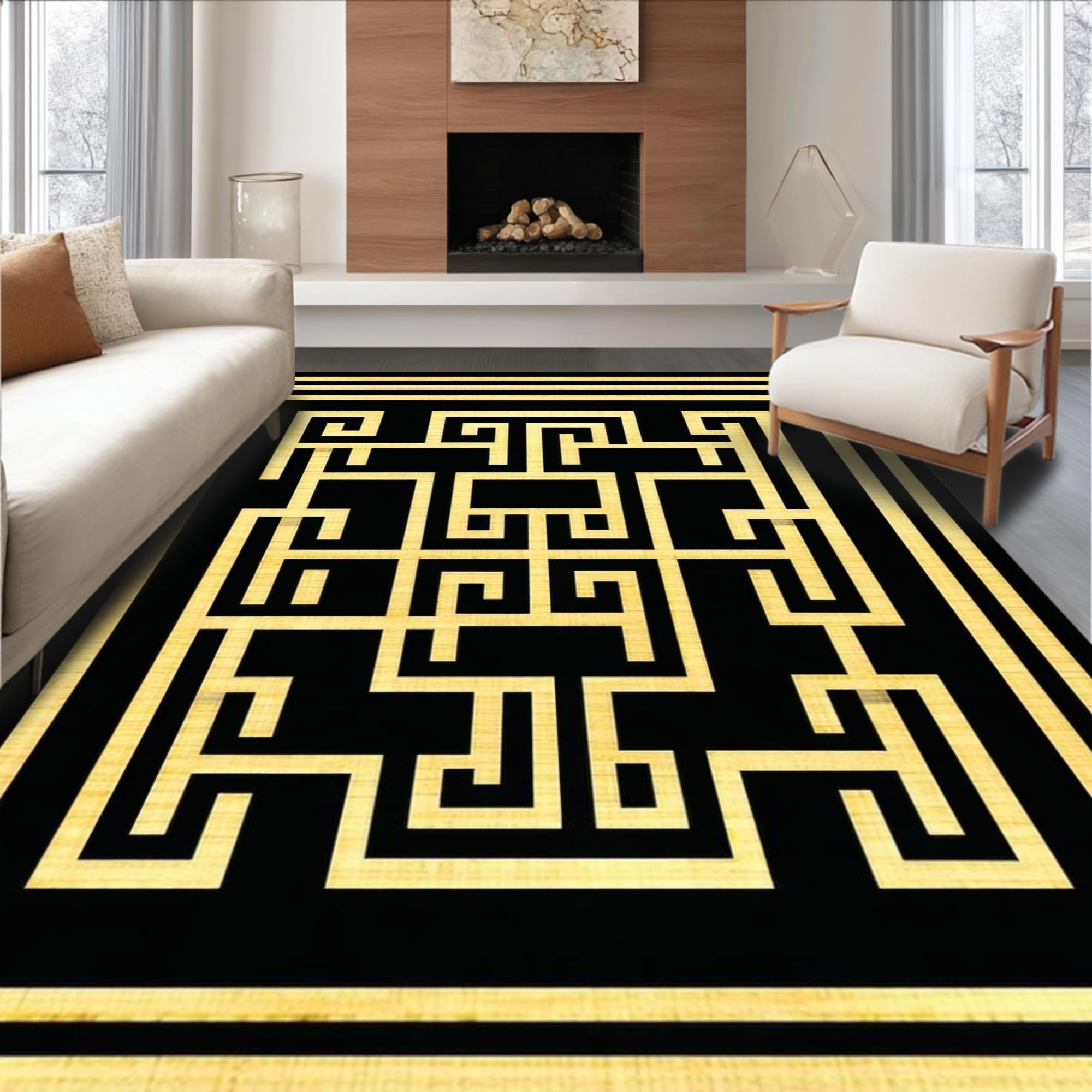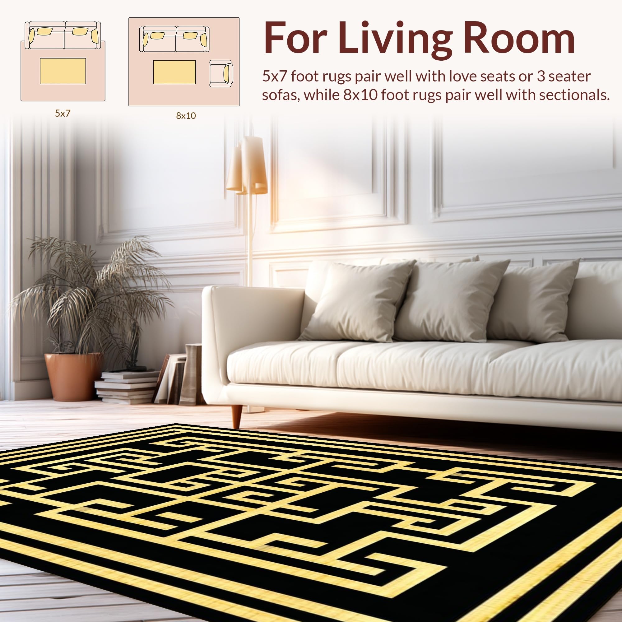 Ultra Soft Area Rug, Non Slip, Stain Resistant, Washable Area Rugs for Living Room, Bedroom, Sophisticated Black Diamond Design(Black) Overview: