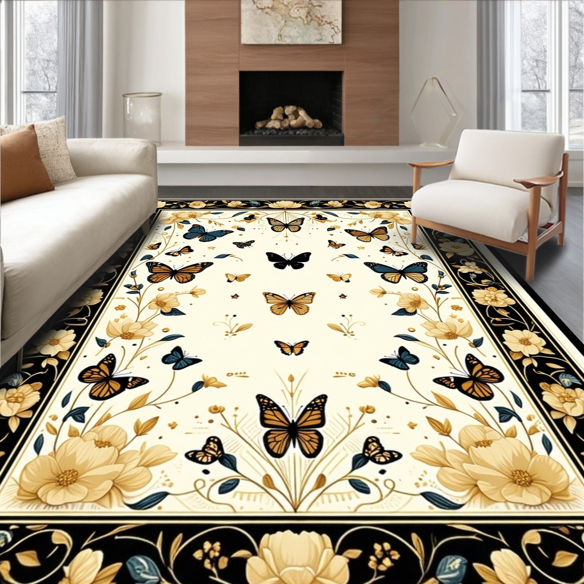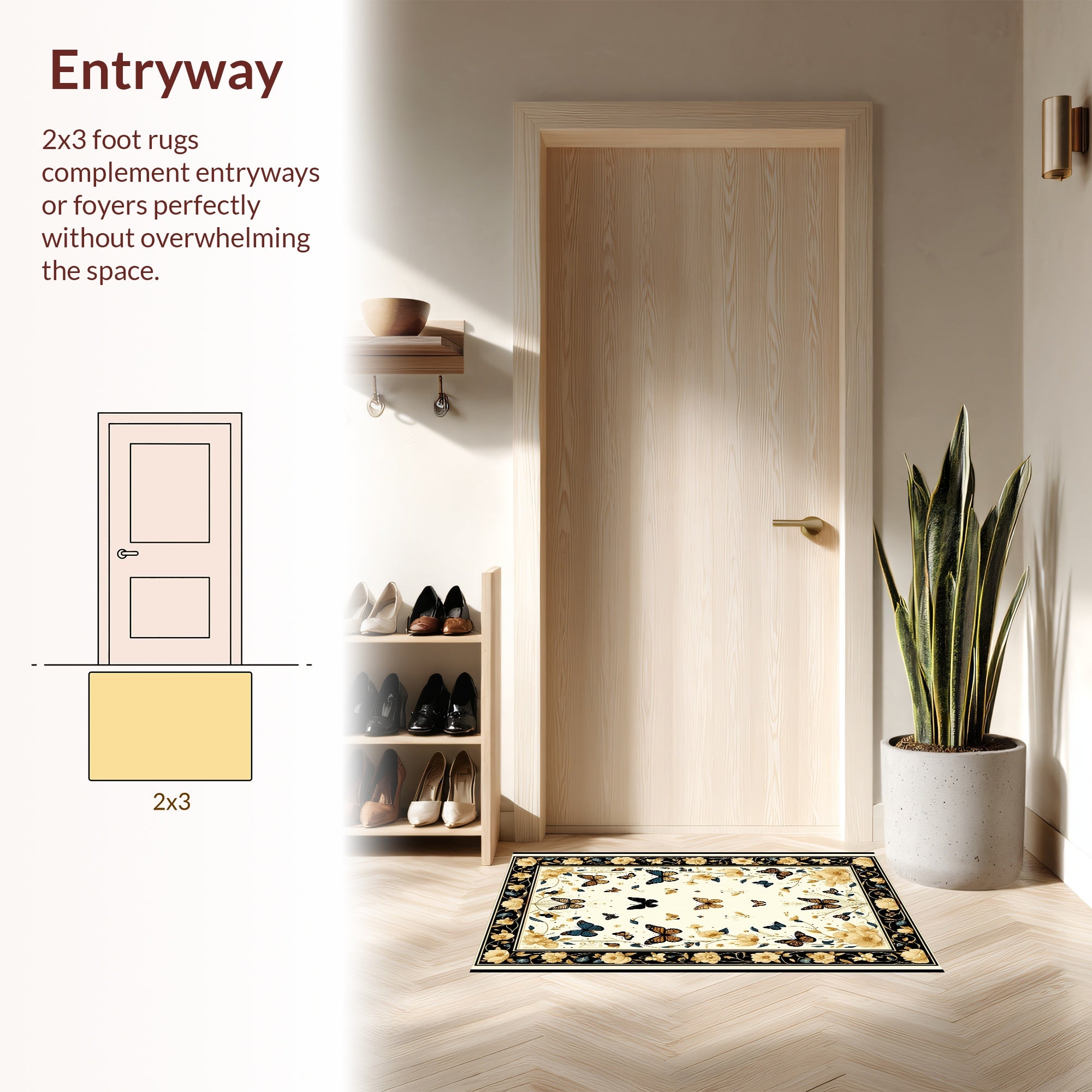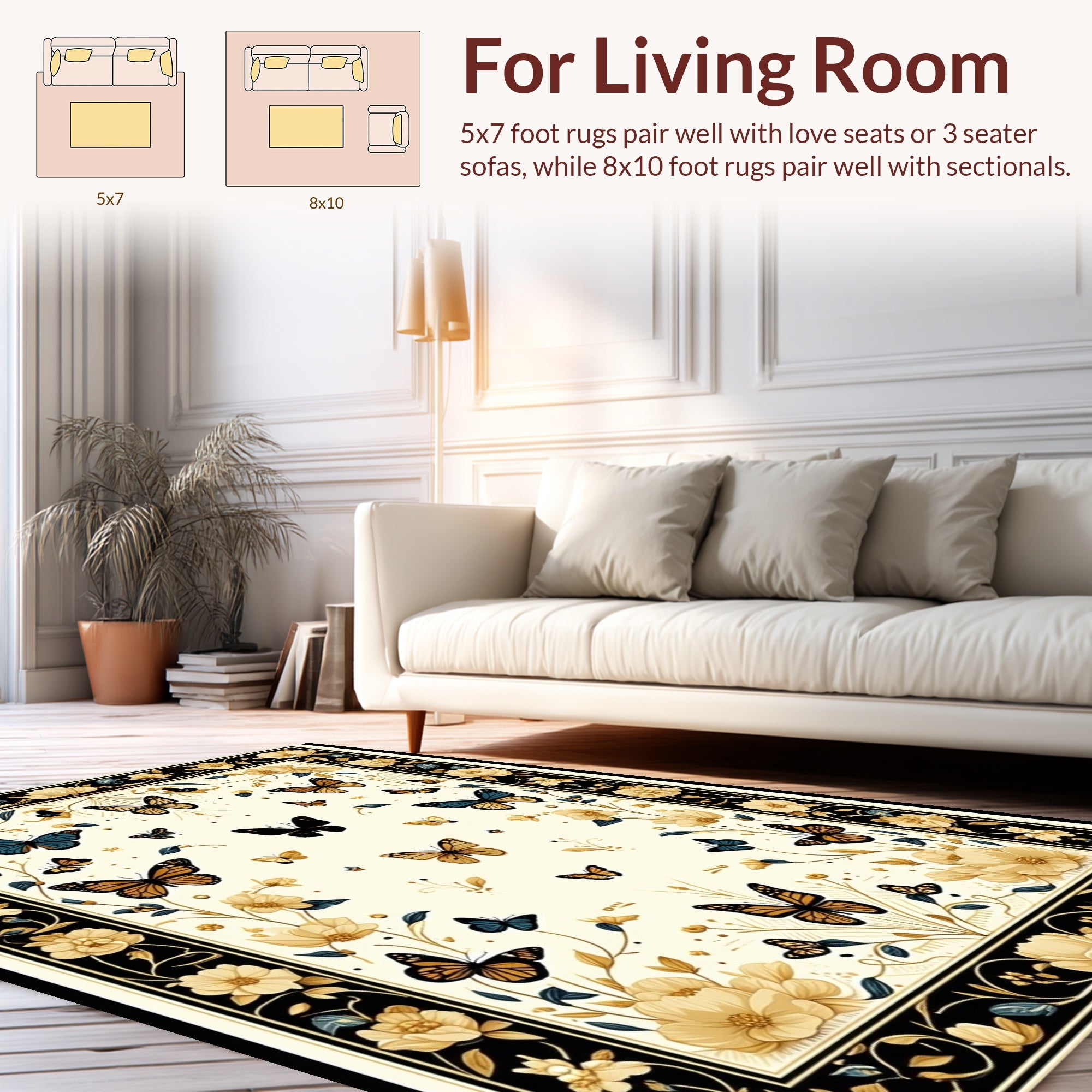 Flatwoven High Traffic Area Rug, Sophisticated Bold Insect Imagery, Non Slip, Stain Resistant, Washable Area Rugs for Living Room, Bedroom (Beige) Overview: