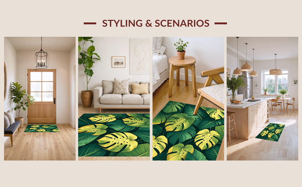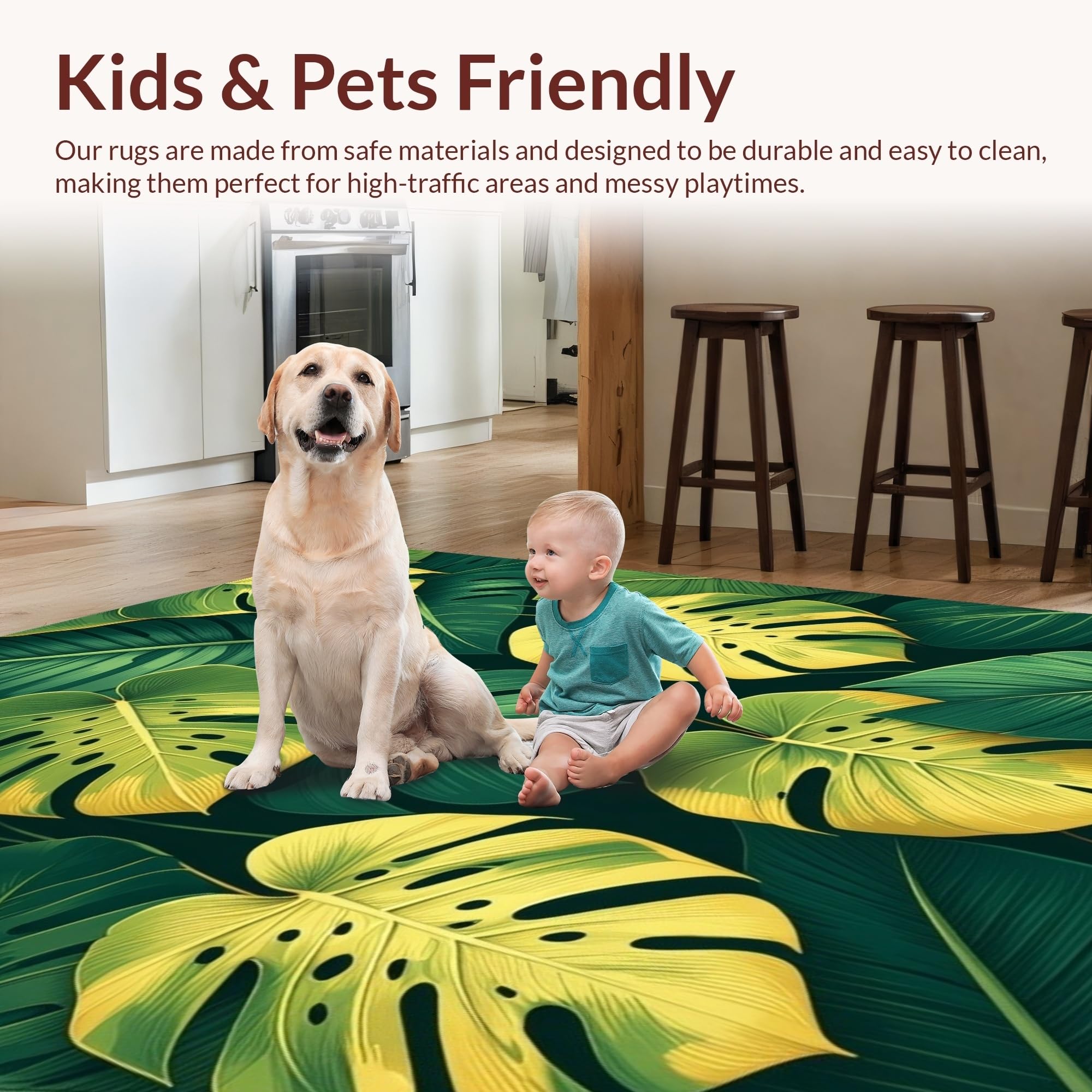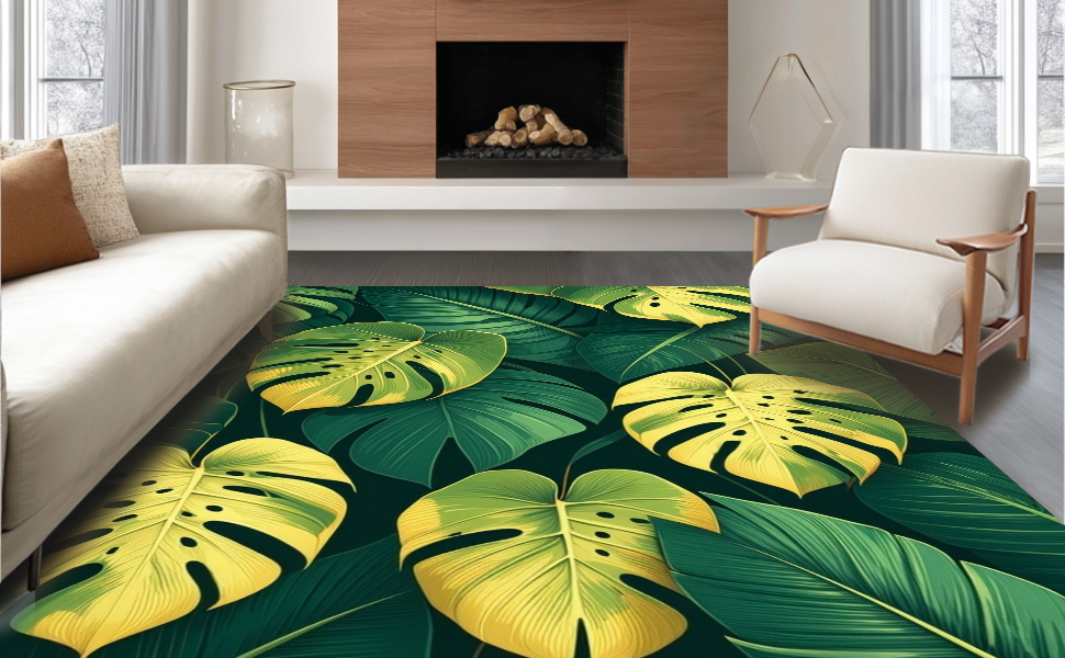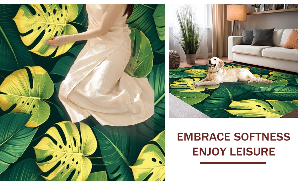 Ultra Soft Area Rug, Non Slip, Stain Resistant, Washable Area Rugs for Living Room, Bedroom, Sophisticated Botanical Design Appeal(Green) Overview: