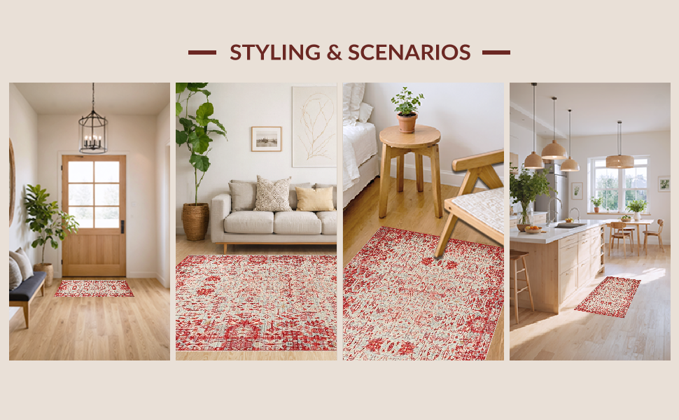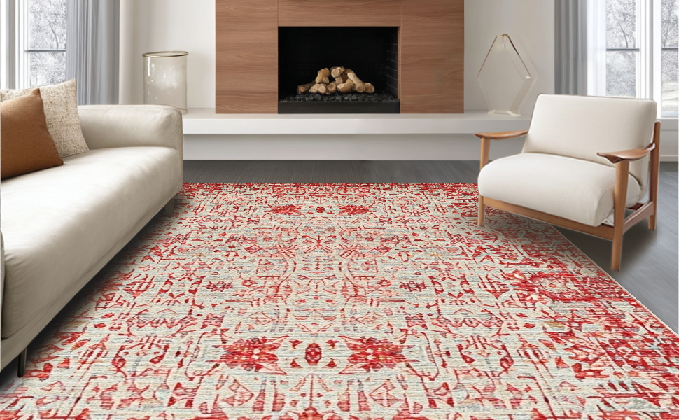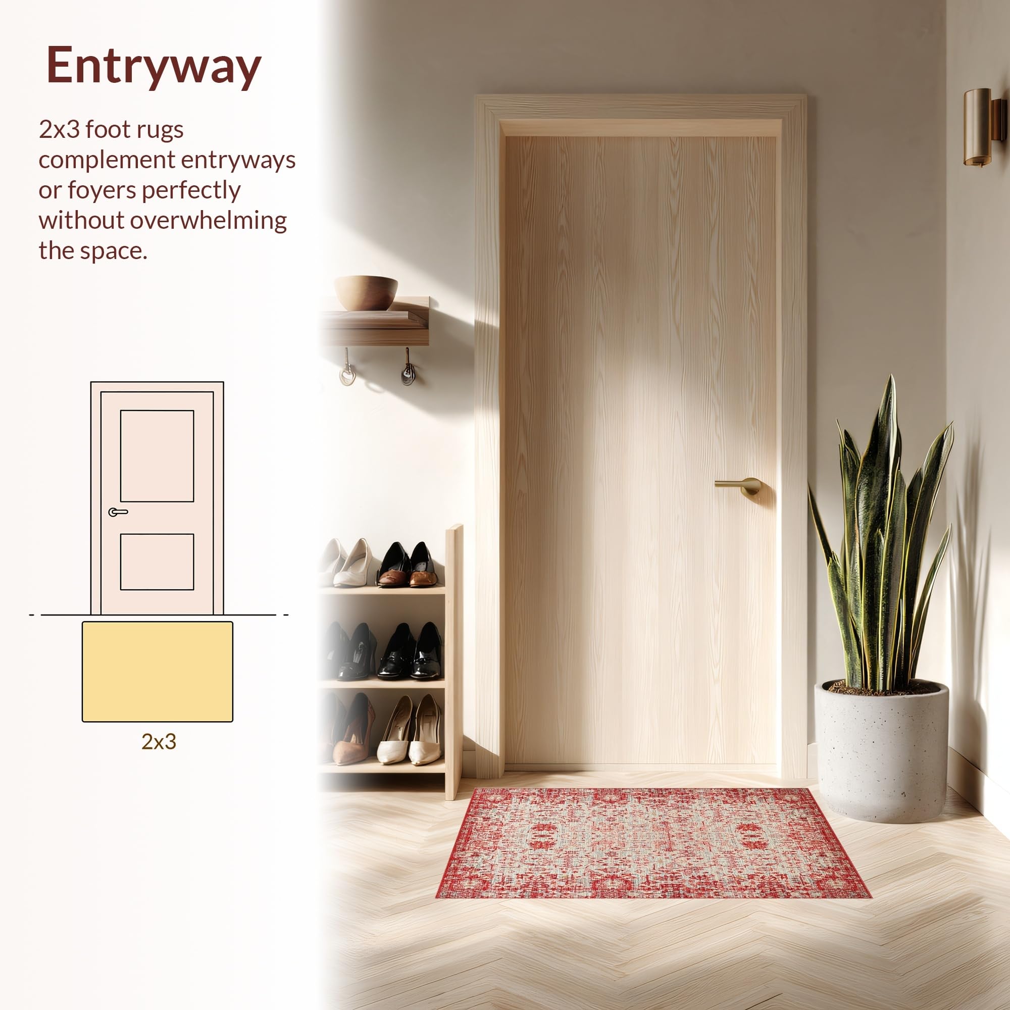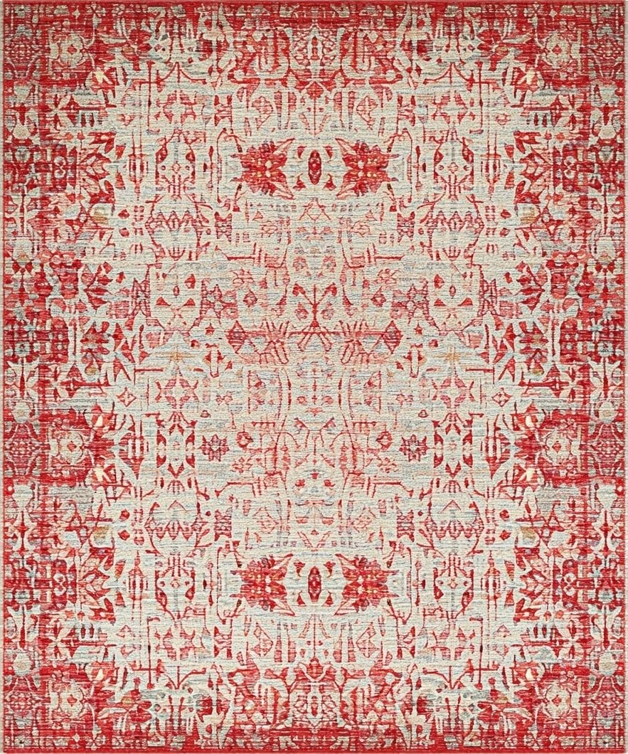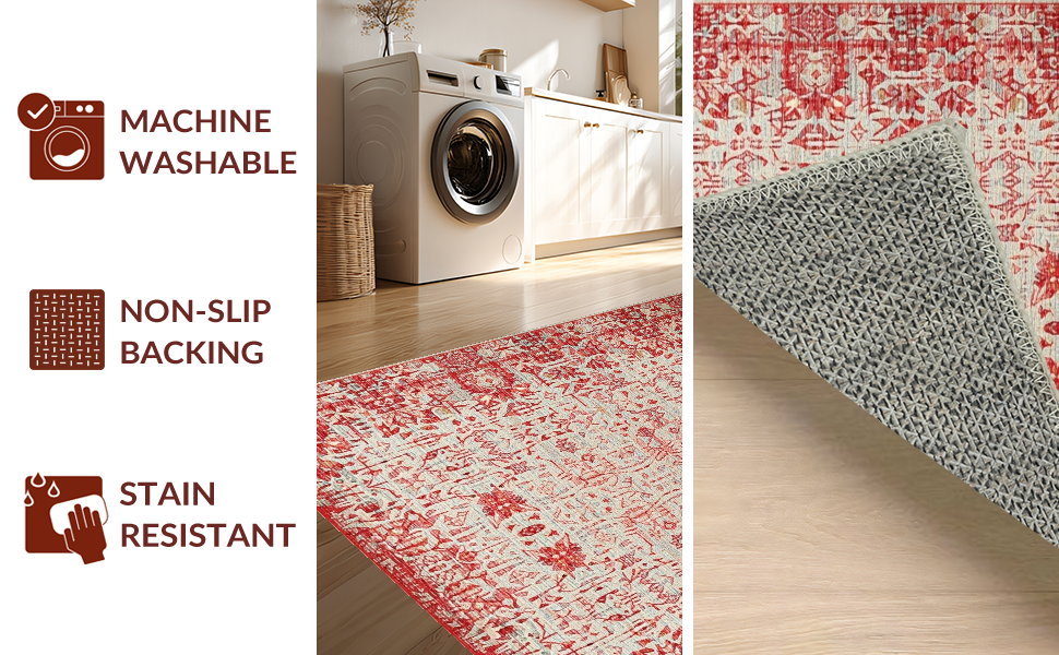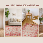 Ultra Soft Area Rug, Non Slip, Stain Resistant, Washable Area Rugs for Living Room, Bedroom, Sophisticated Circular Floral Accents(Red) Overview: