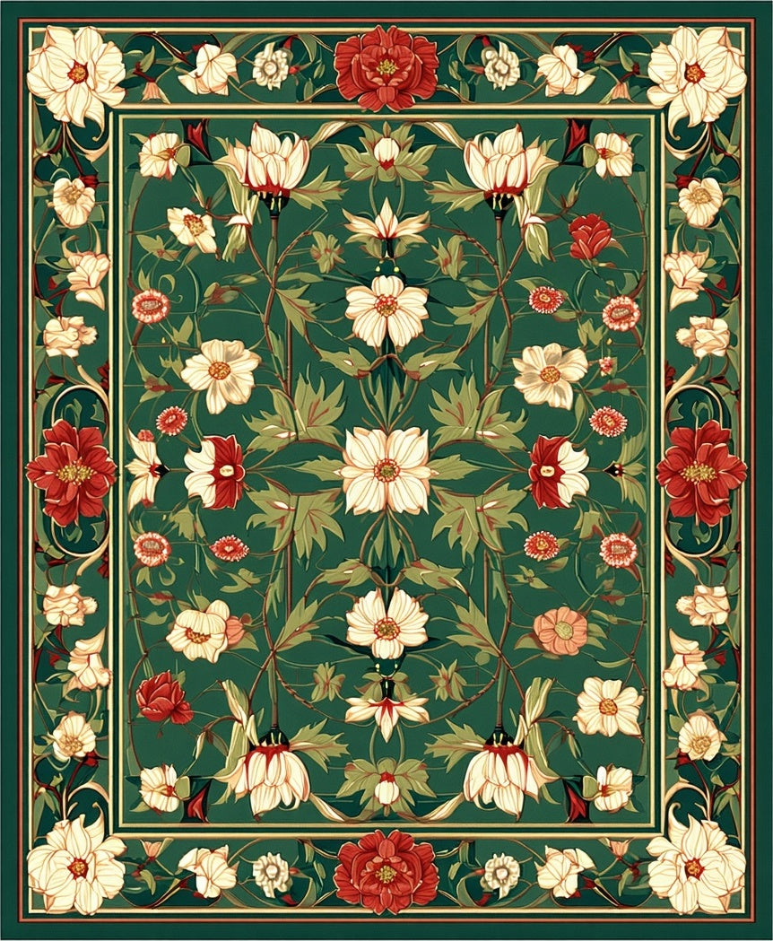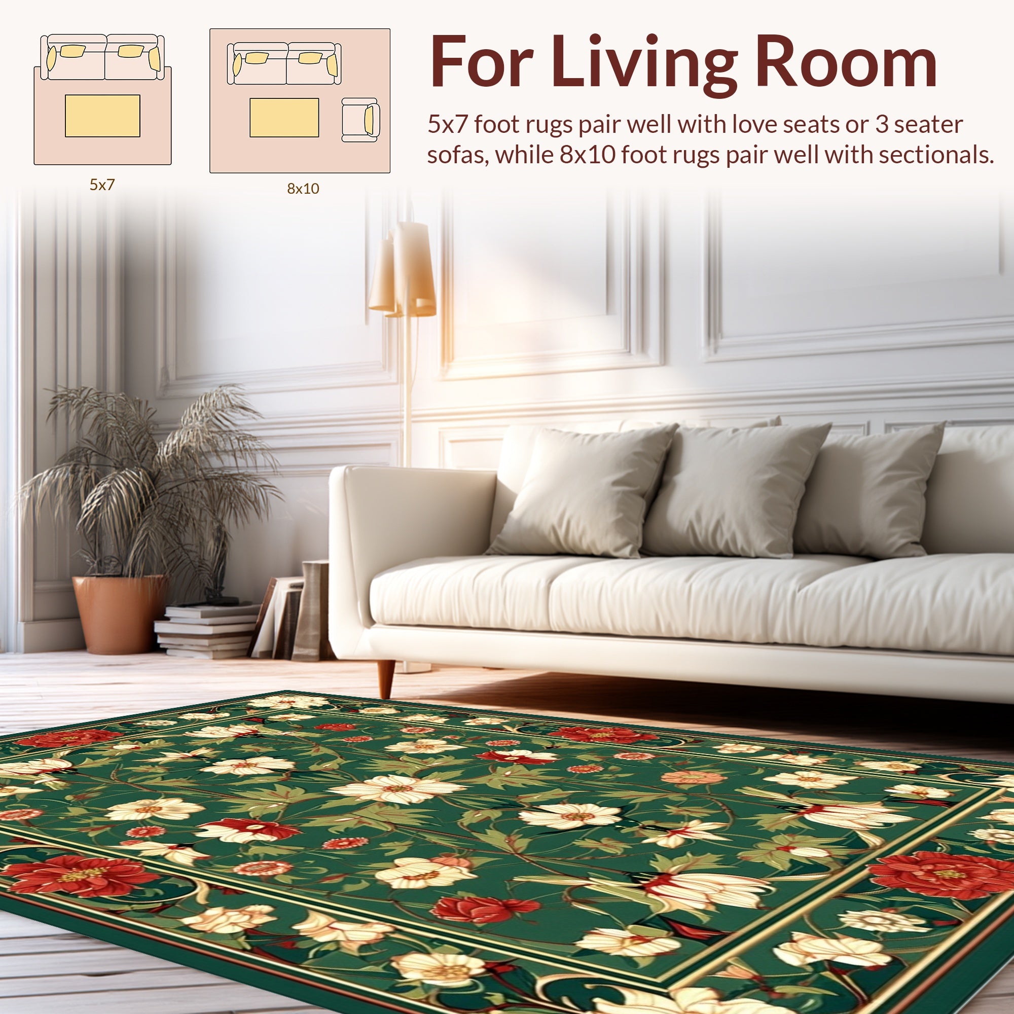 Flatwoven High Traffic Area Rug, Sophisticated Classic Botanical Theme, Non Slip, Stain Resistant, Washable Area Rugs for Living Room, Bedroom (Green) Overview: