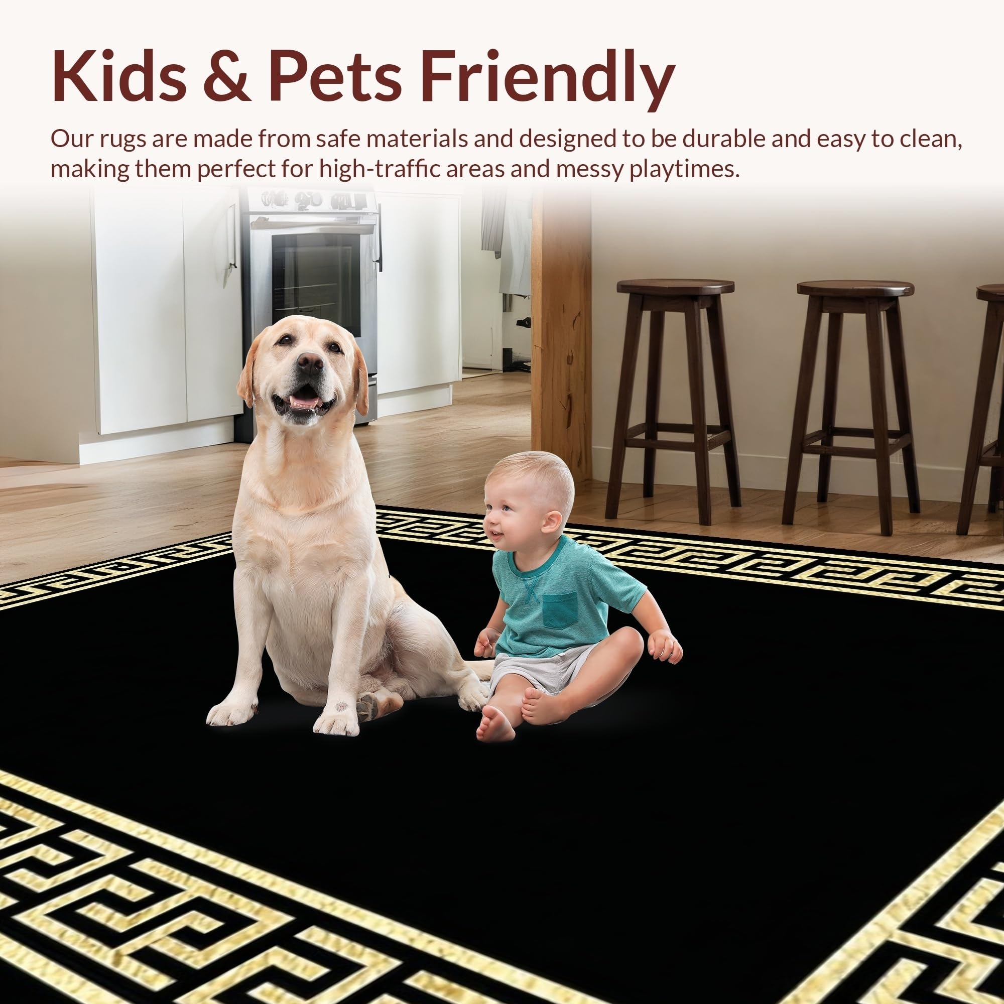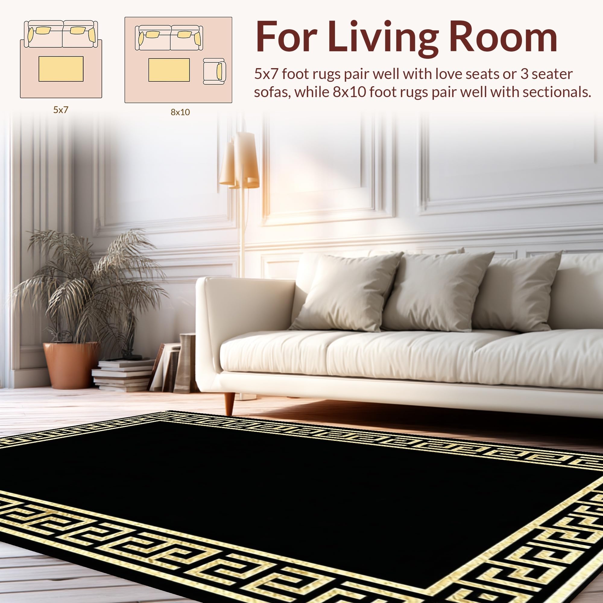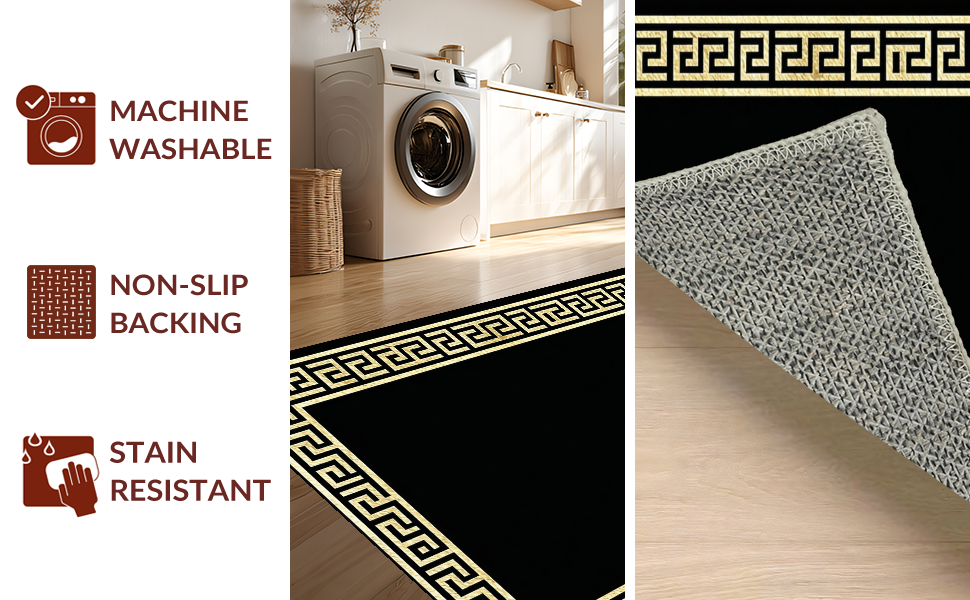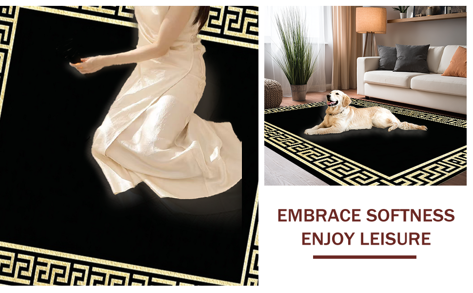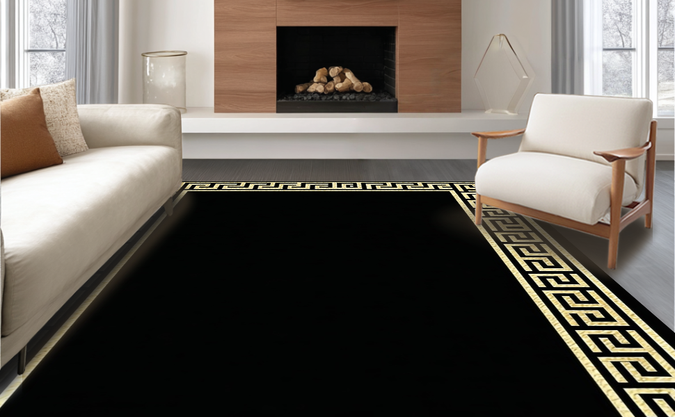Ultra Soft Area Rug, Non Slip, Stain Resistant, Washable Area Rugs for Living Room, Bedroom, Sophisticated Classic Meander Style(Black) Overview: