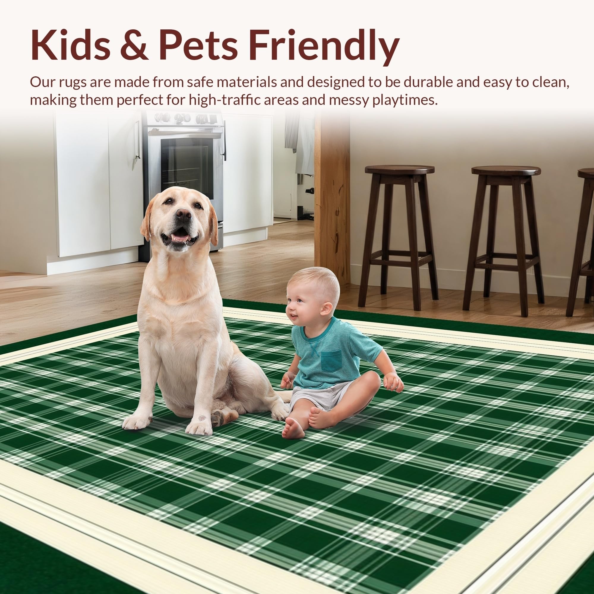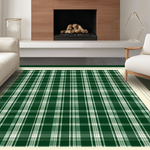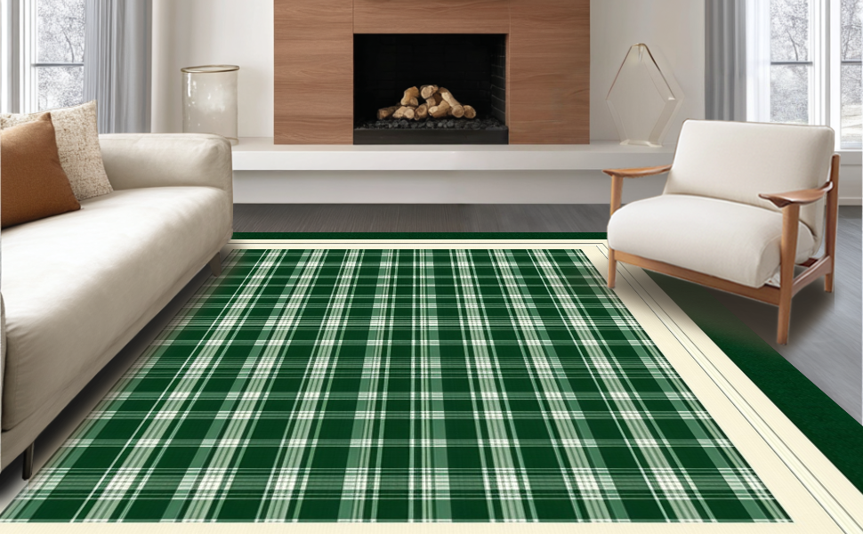 Ultra Soft Area Rug, Non Slip, Stain Resistant, Washable Area Rugs for Living Room, Bedroom, Sophisticated Cream and Gray Plaid(Green) Overview: