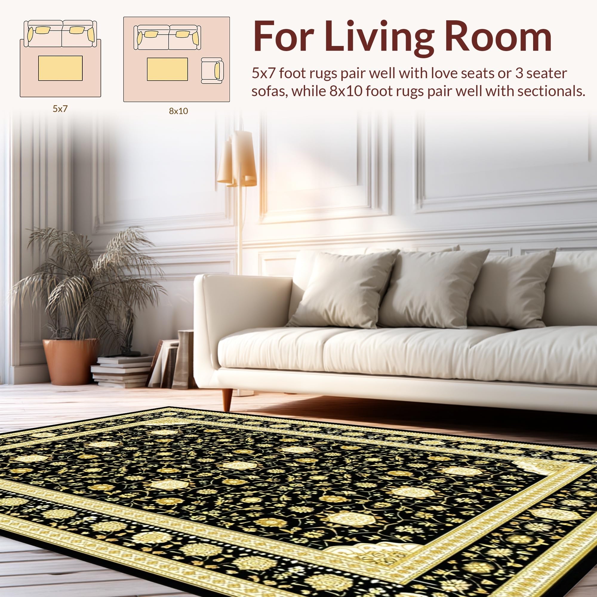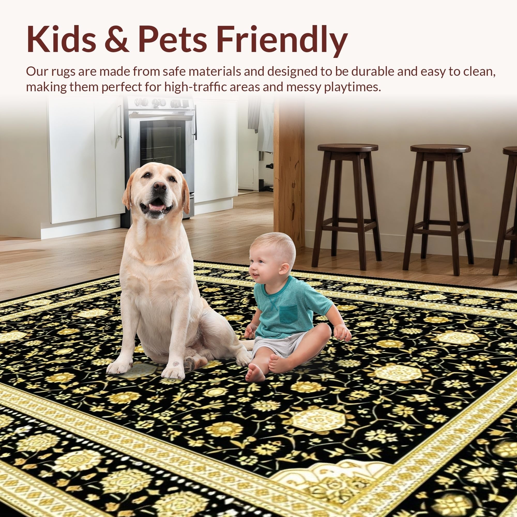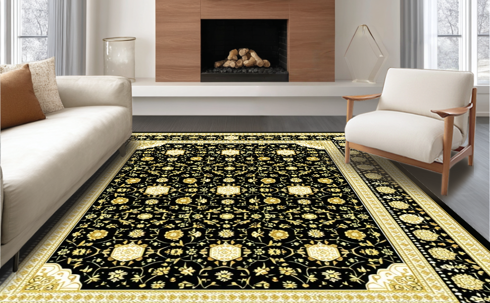 Ultra Soft Area Rug, Non Slip, Stain Resistant, Washable Area Rugs for Living Room, Bedroom, Sophisticated Cream Ogee Pattern Style(Black) Overview: