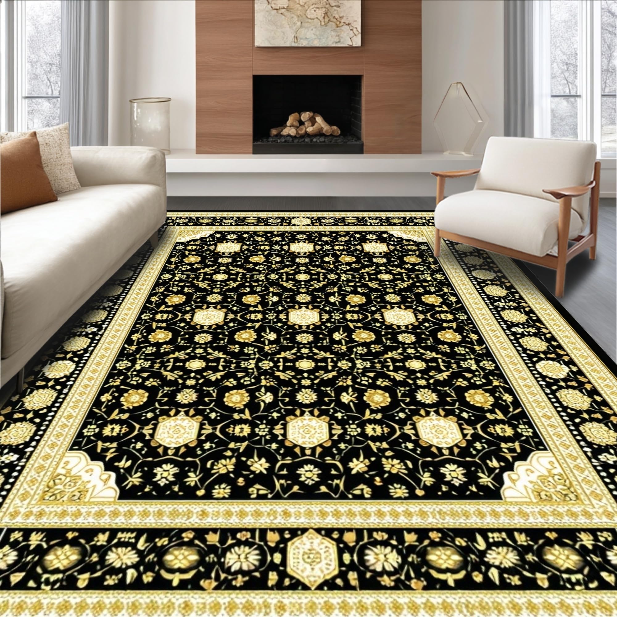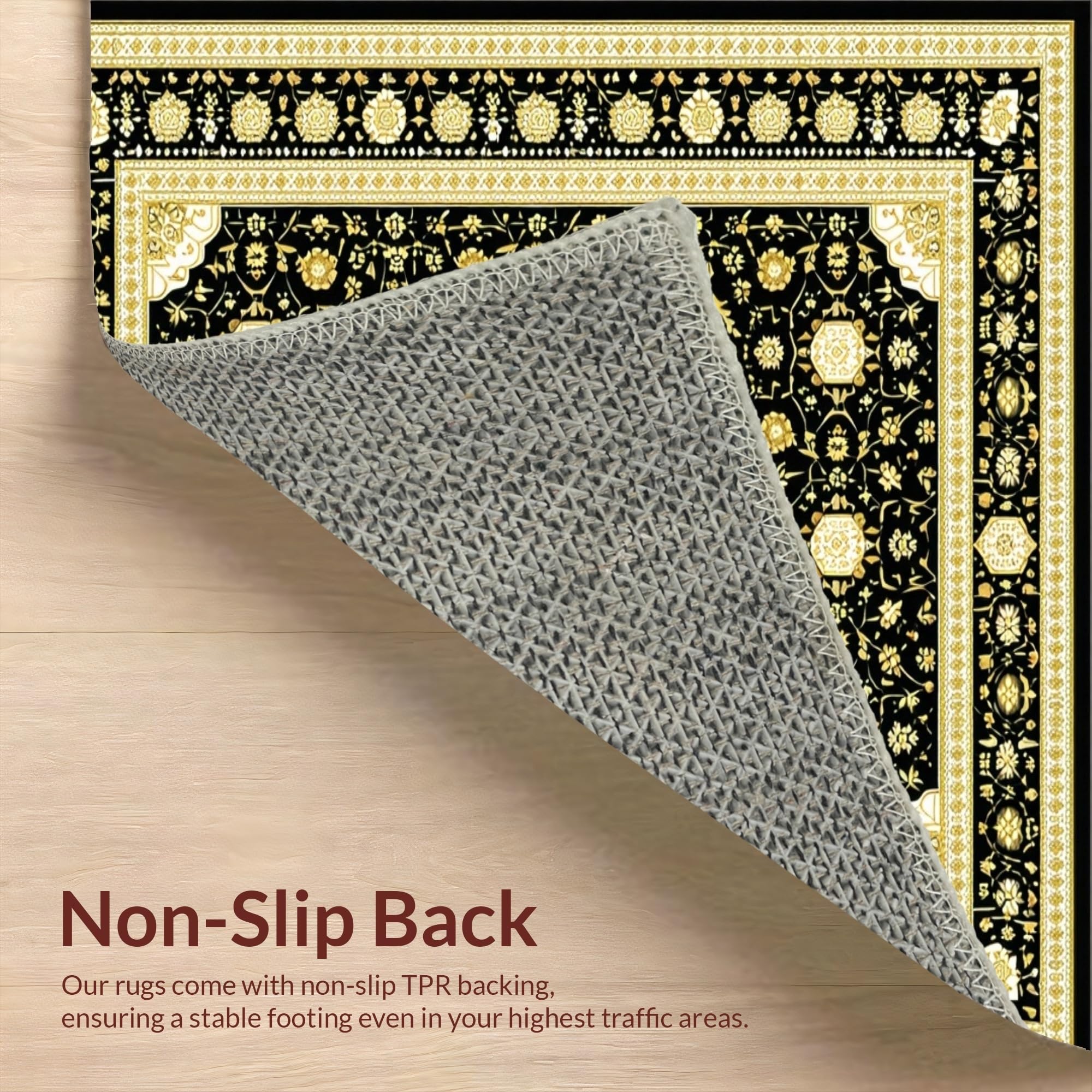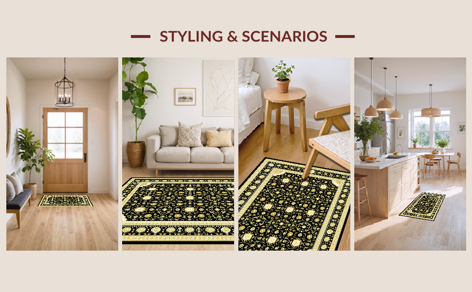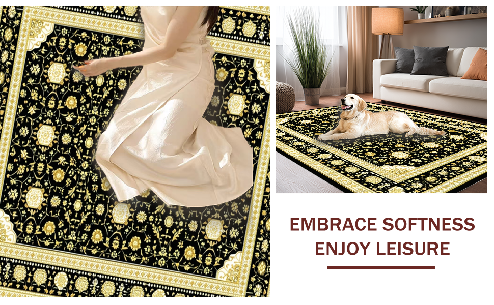 Ultra Soft Area Rug, Non Slip, Stain Resistant, Washable Area Rugs for Living Room, Bedroom, Sophisticated Cream Ogee Pattern Style(Black) Overview: