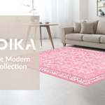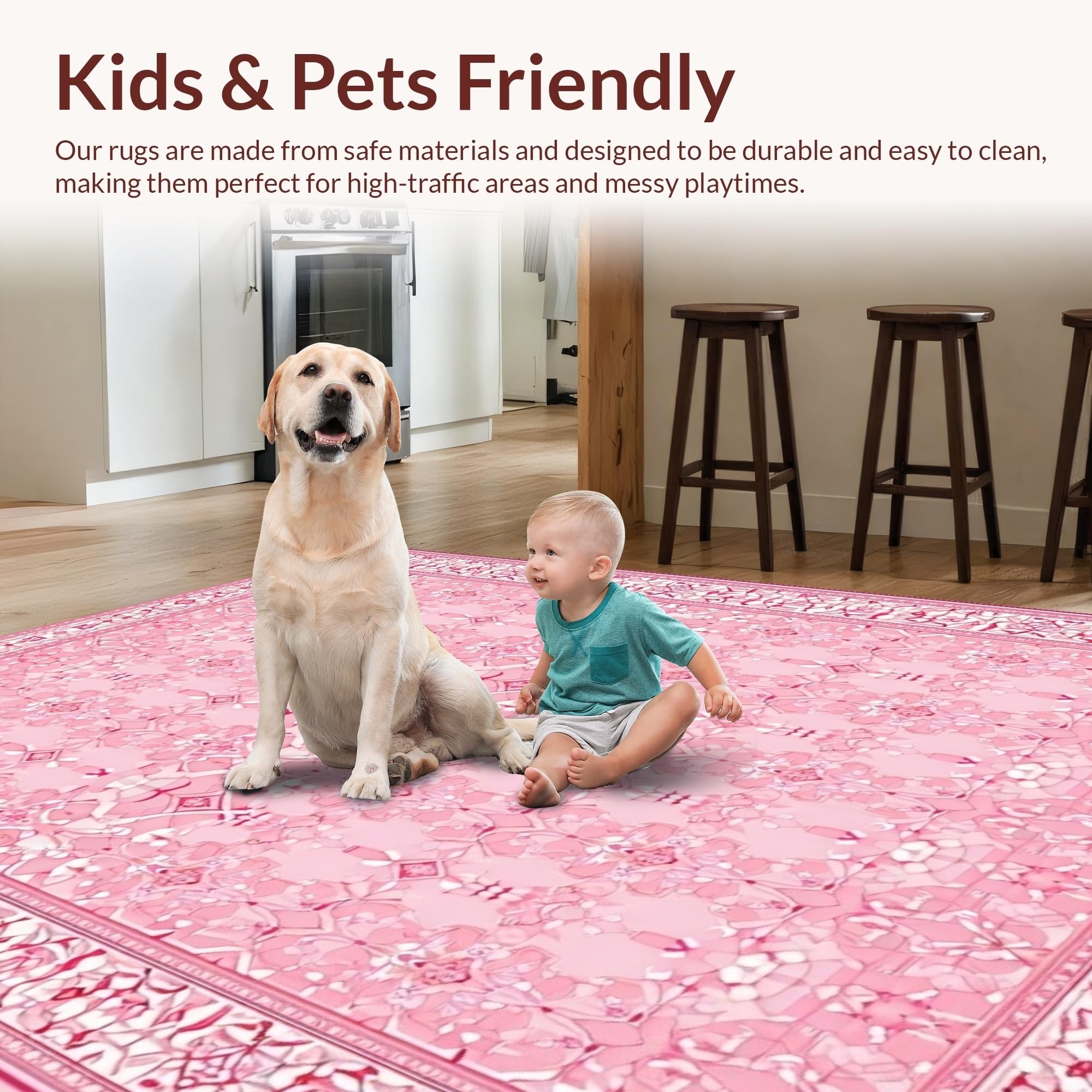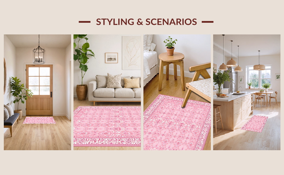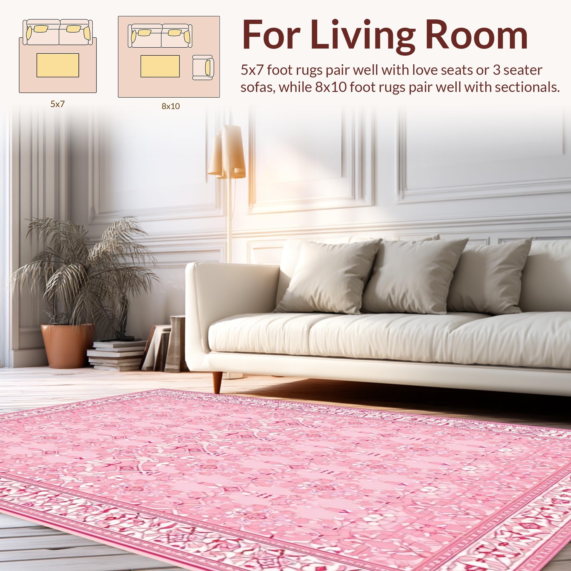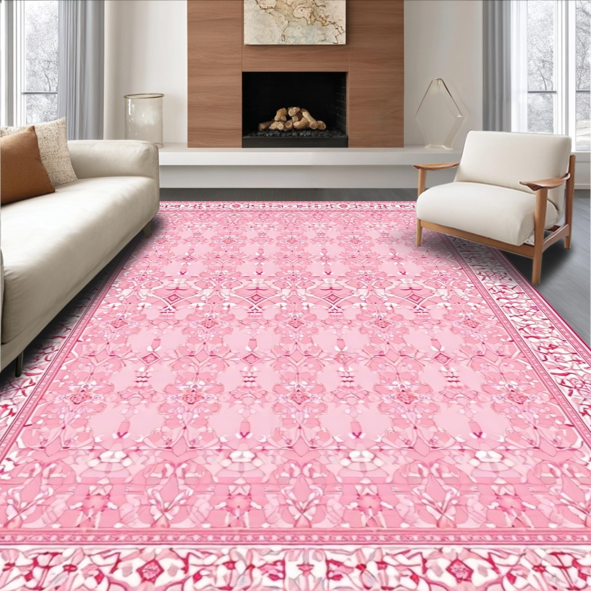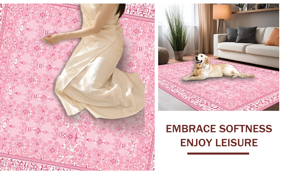 Ultra Soft Area Rug, Non Slip, Stain Resistant, Washable Area Rugs for Living Room, Bedroom, Sophisticated Curved Line Art(Pink) Overview:
