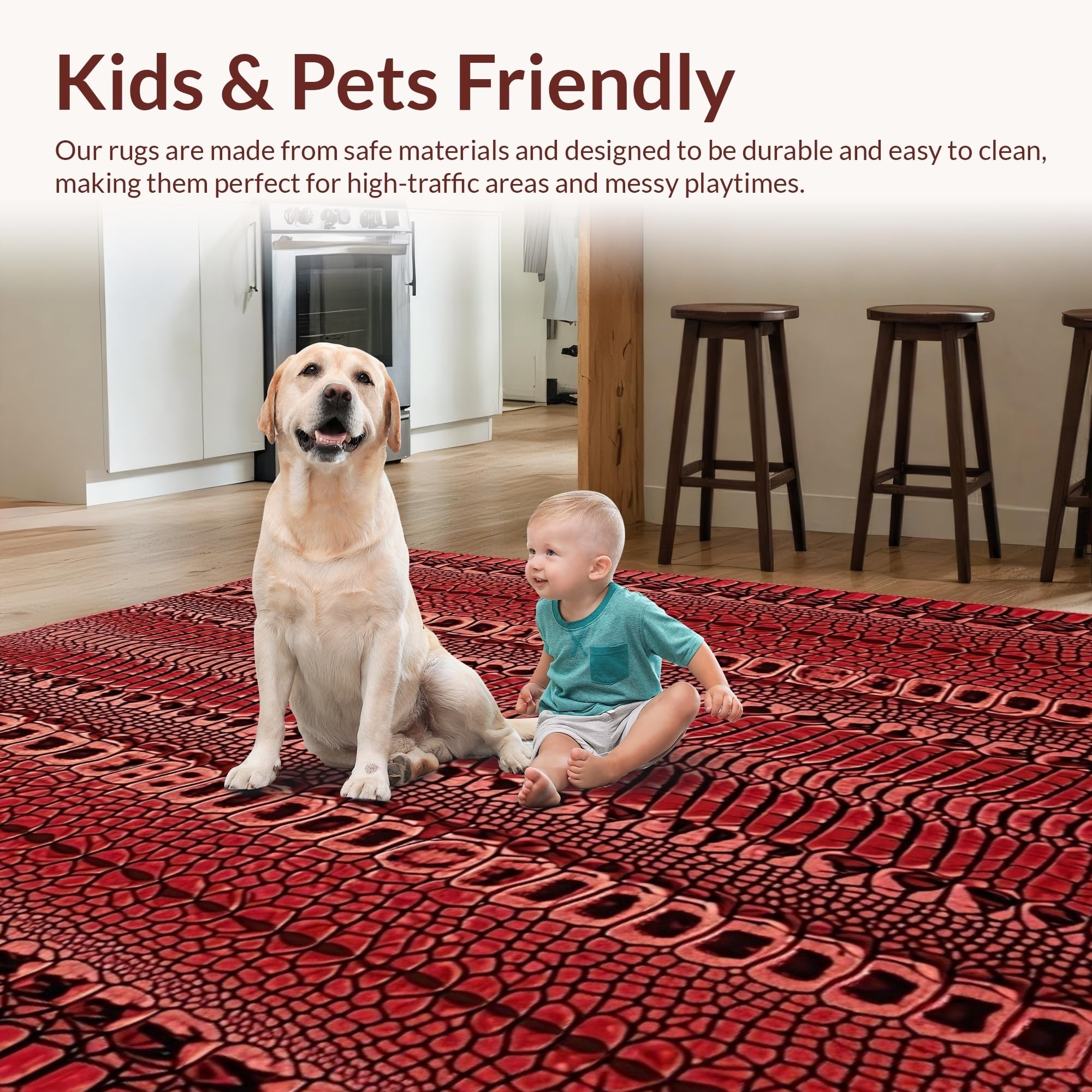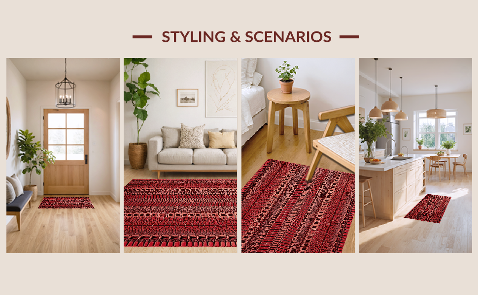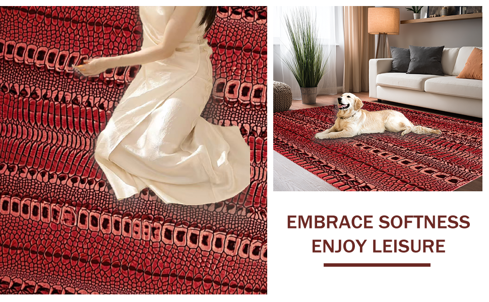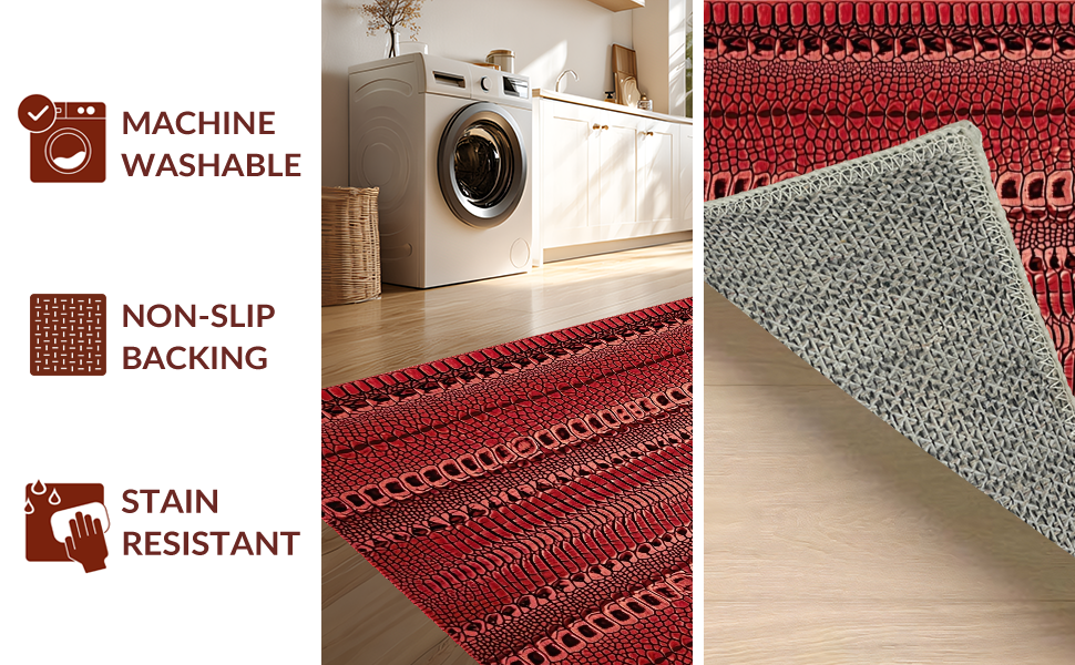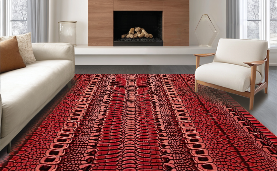 Ultra Soft Area Rug, Non Slip, Stain Resistant, Washable Area Rugs for Living Room, Bedroom, Sophisticated Distressed Pattern Fusion(Red) Overview: