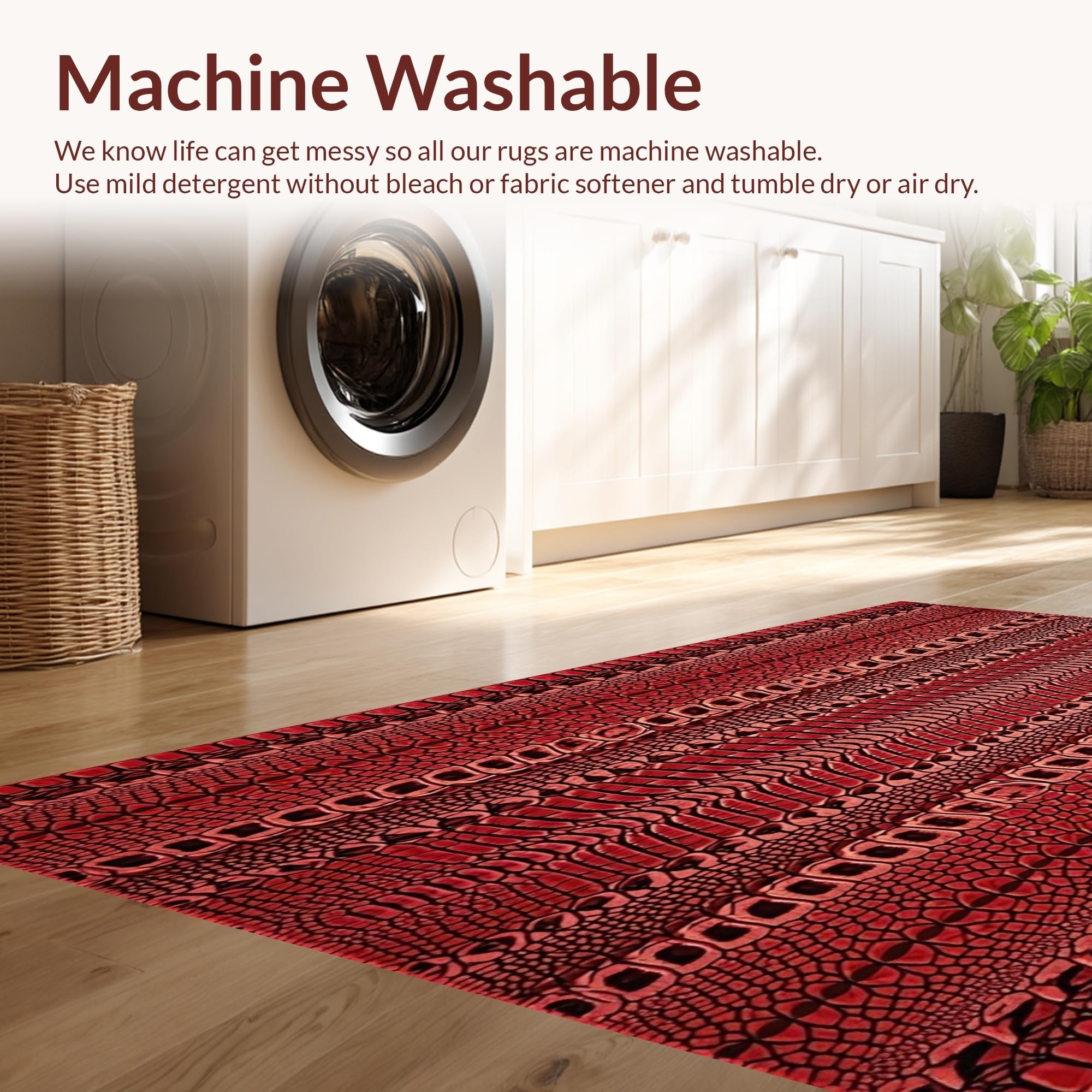 - Machine Washable: Our rugs can be easily thrown in the wash machine.