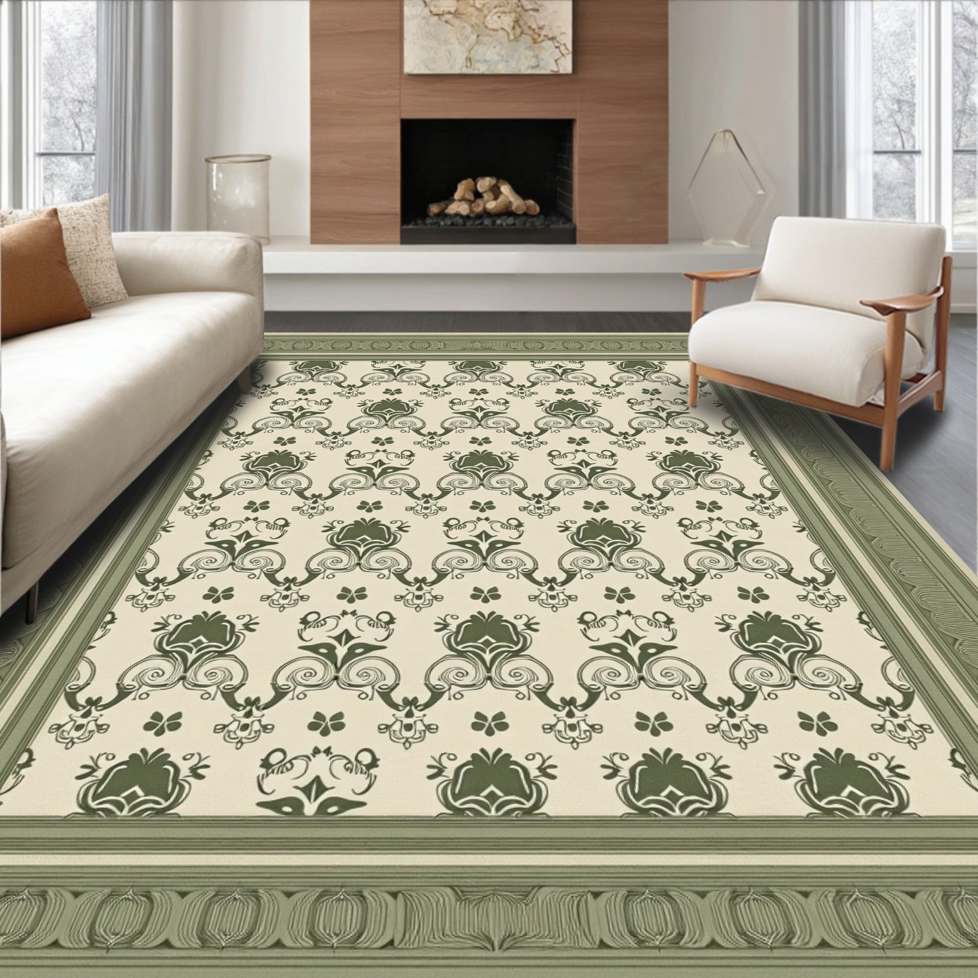 Ultra Soft Area Rug, Non Slip, Stain Resistant, Washable Area Rugs for Living Room, Bedroom, Sophisticated Distressed Vintage Damask Embellished Artistic Motif(Beige) Overview: