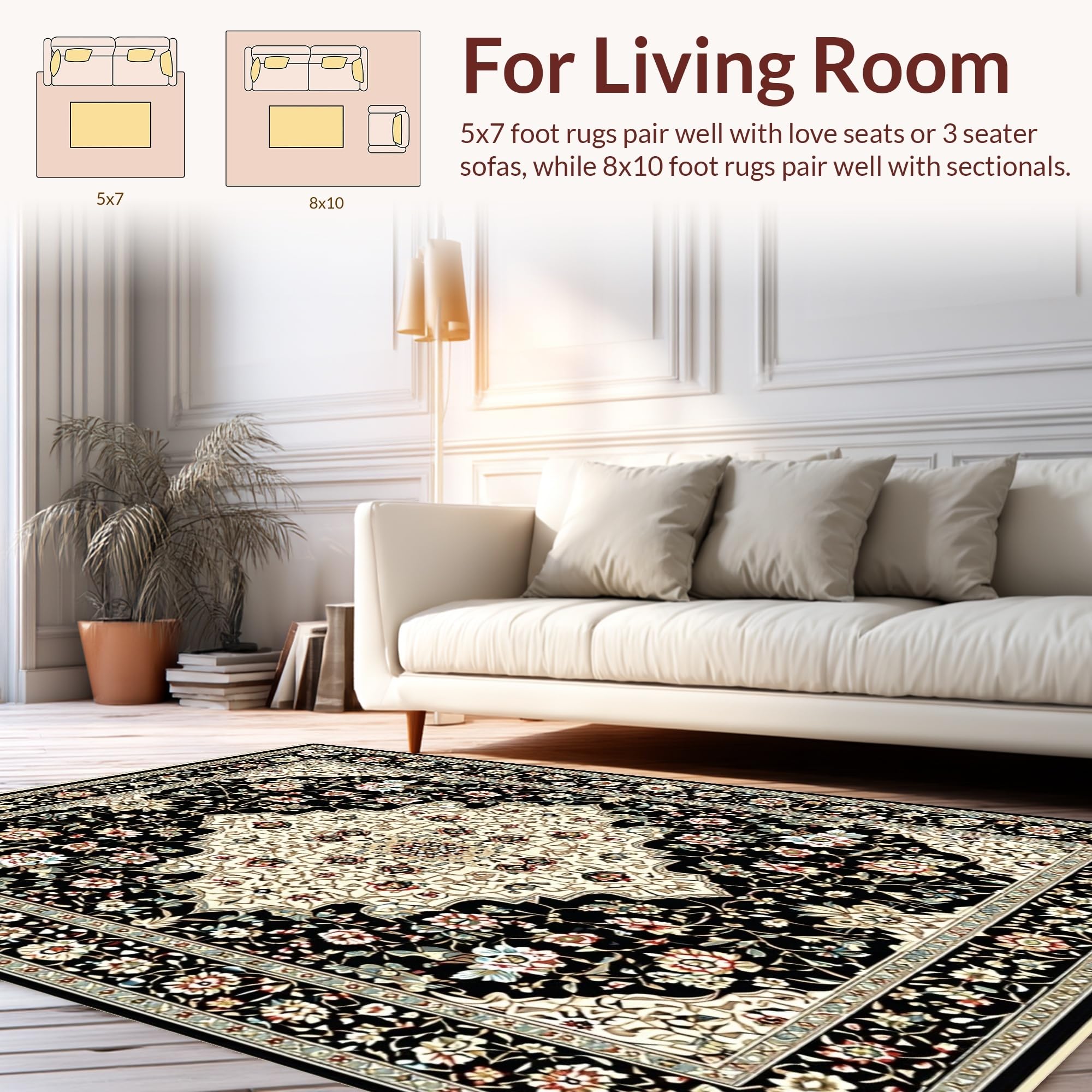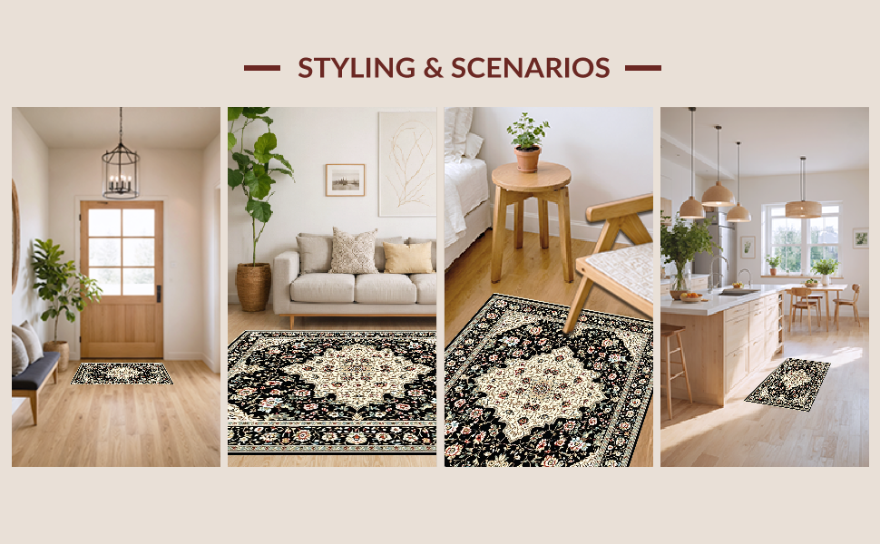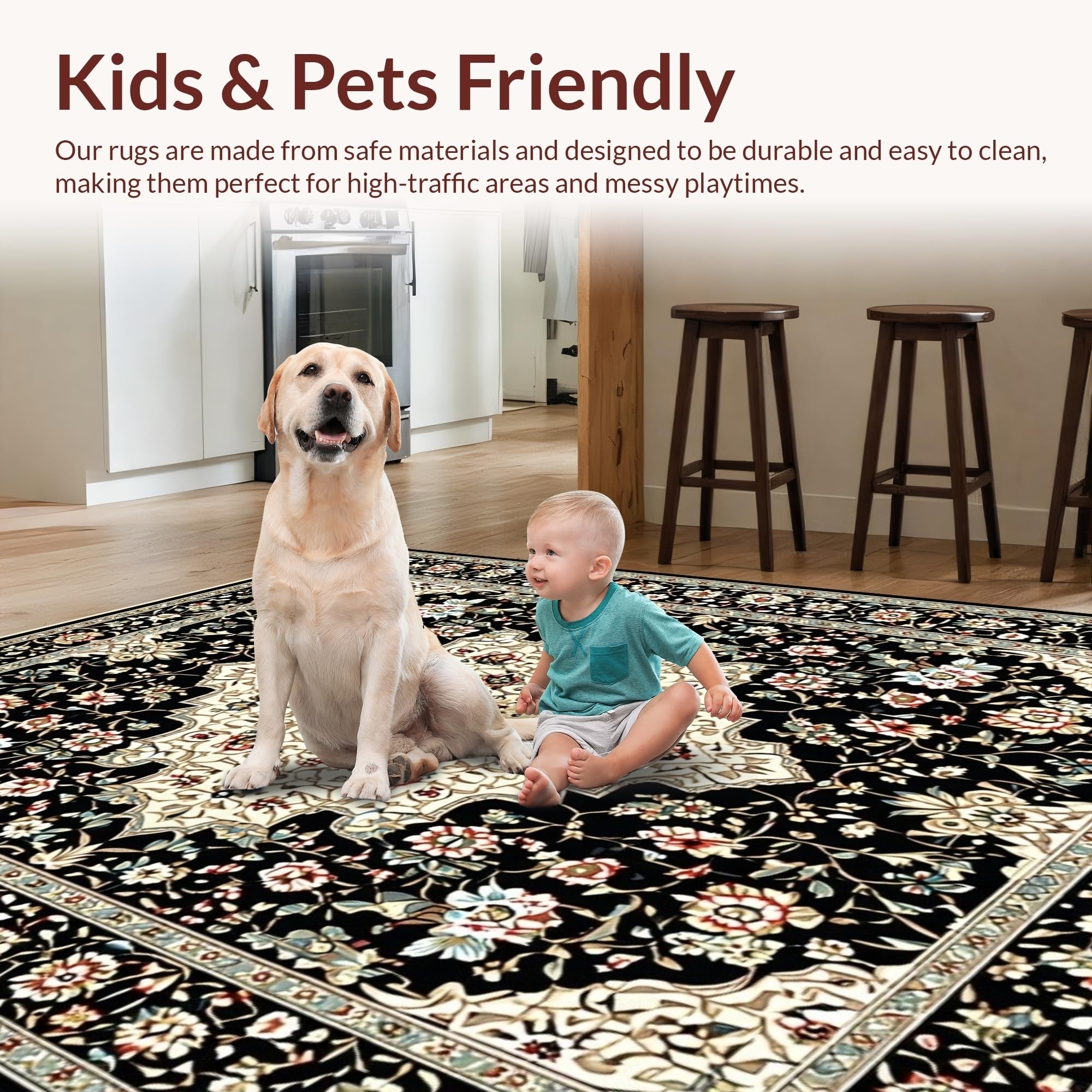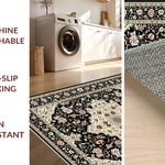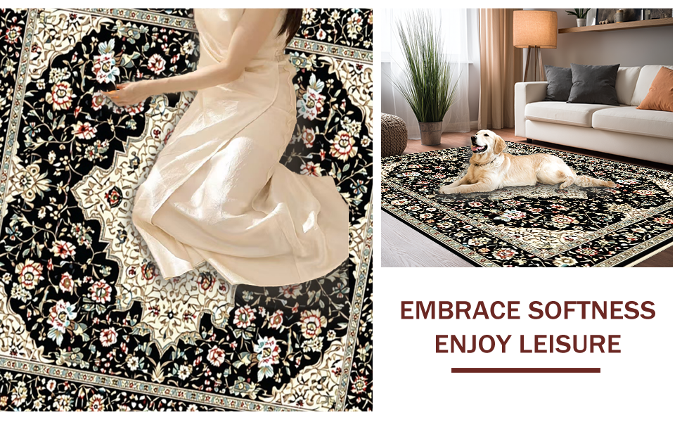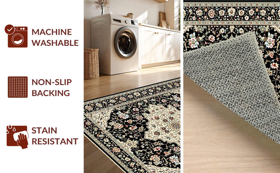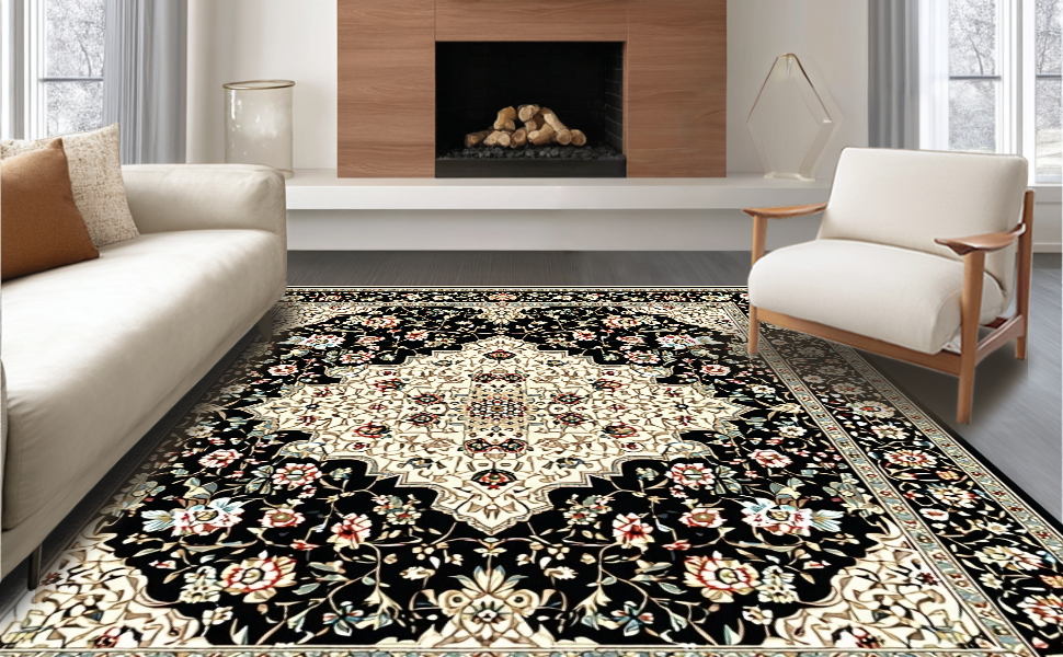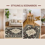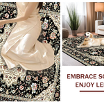 Ultra Soft Area Rug, Non Slip, Stain Resistant, Washable Area Rugs for Living Room, Bedroom, Sophisticated Faded Botanical Print(Black) Overview: