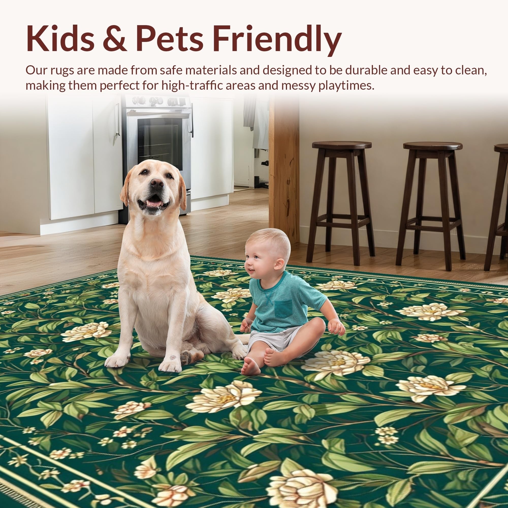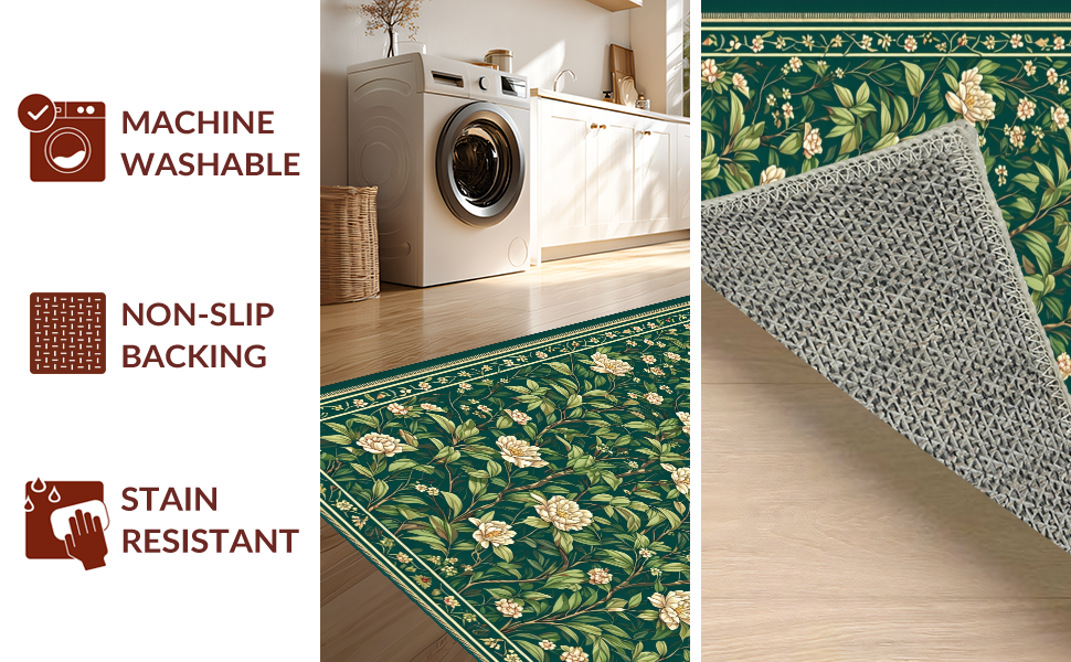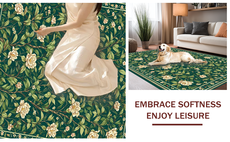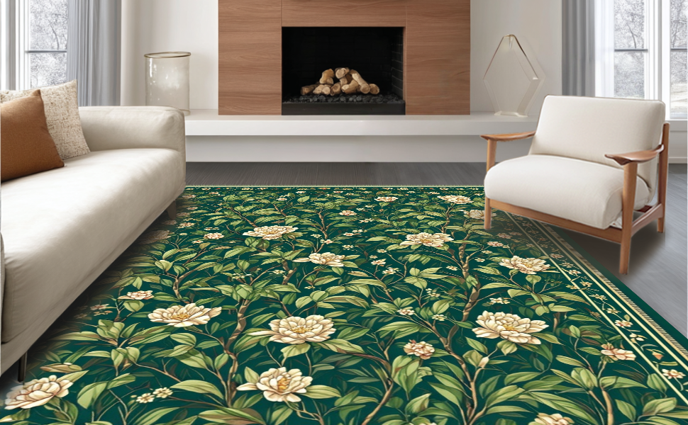 Ultra Soft Area Rug, Non Slip, Stain Resistant, Washable Area Rugs for Living Room, Bedroom, Sophisticated Floral Geometric Fusion(Green) Overview: