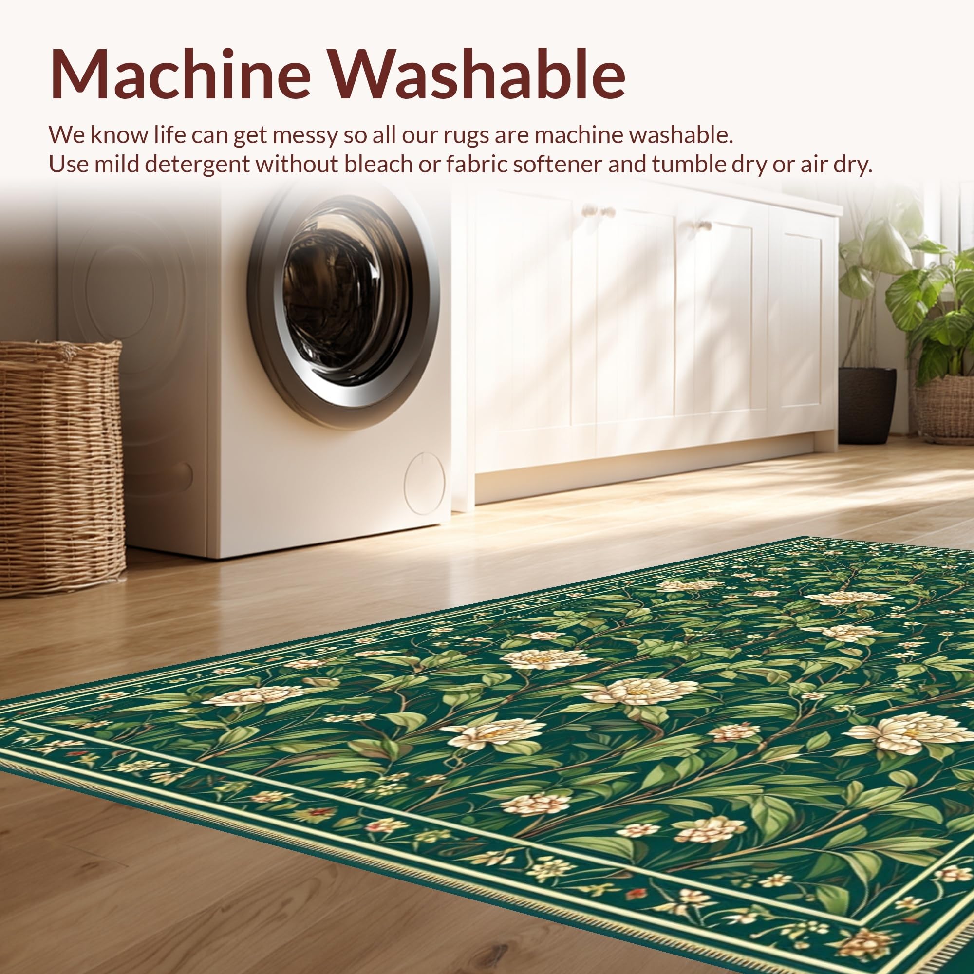 - Machine Washable: Our rugs can be easily thrown in the wash machine.