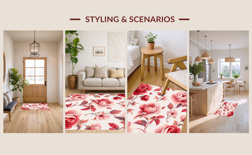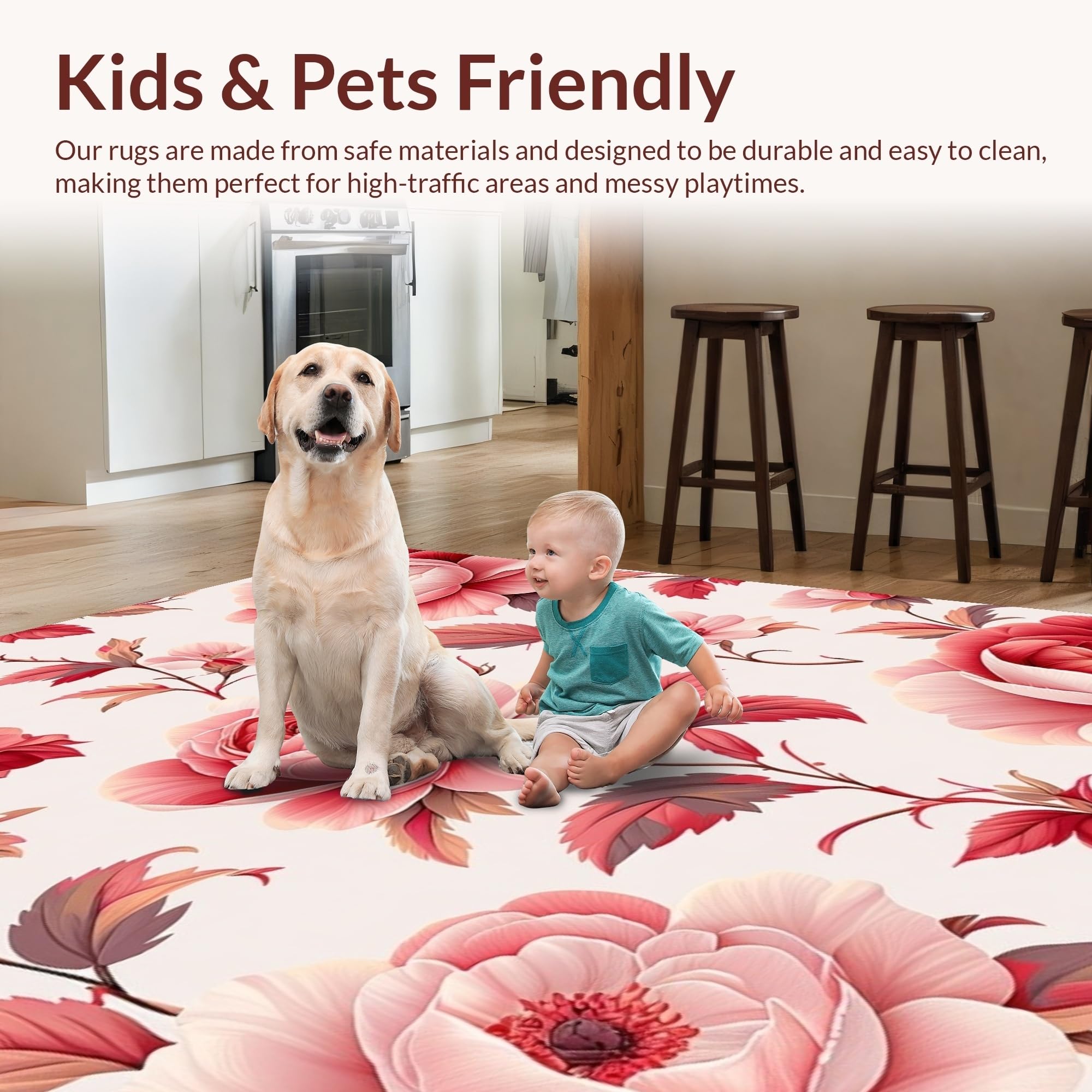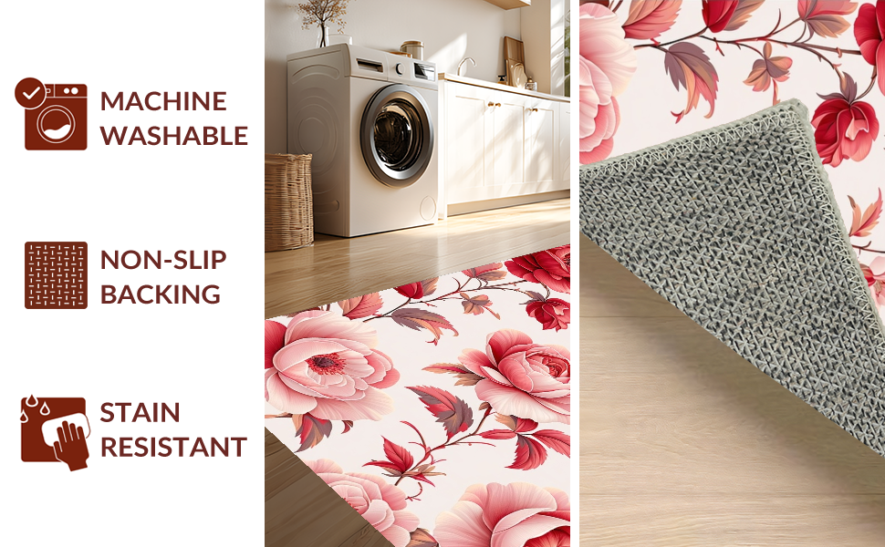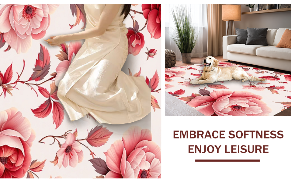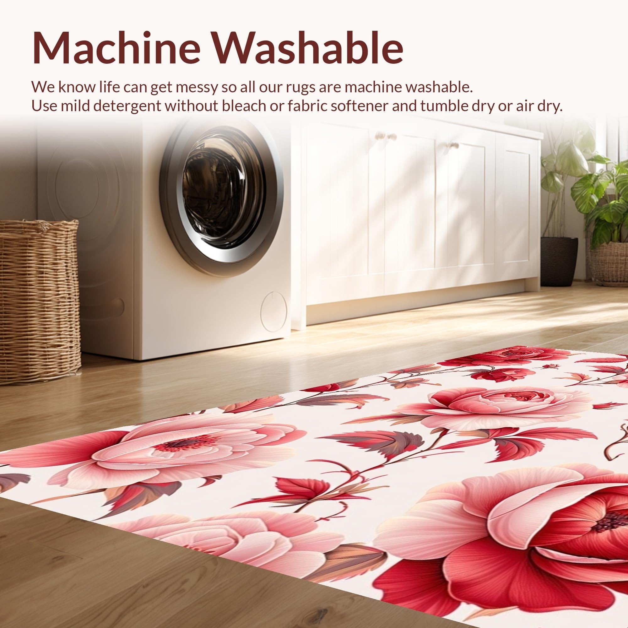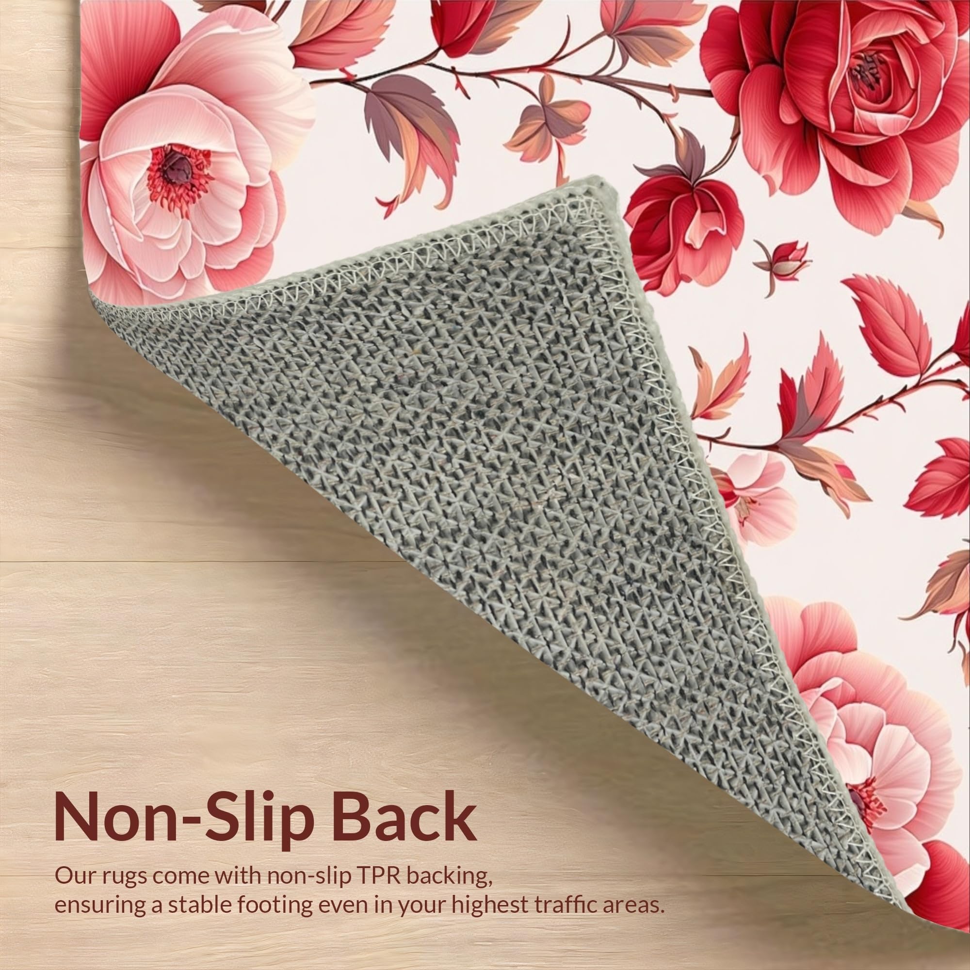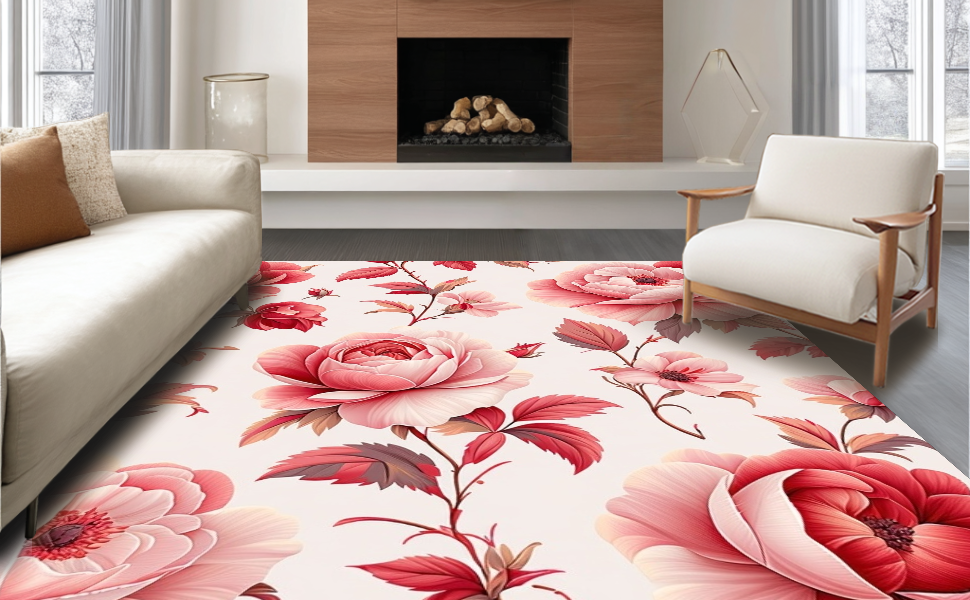 Ultra Soft Area Rug, Non Slip, Stain Resistant, Washable Area Rugs for Living Room, Bedroom, Sophisticated Garden-Inspired Décor(Red) Overview: