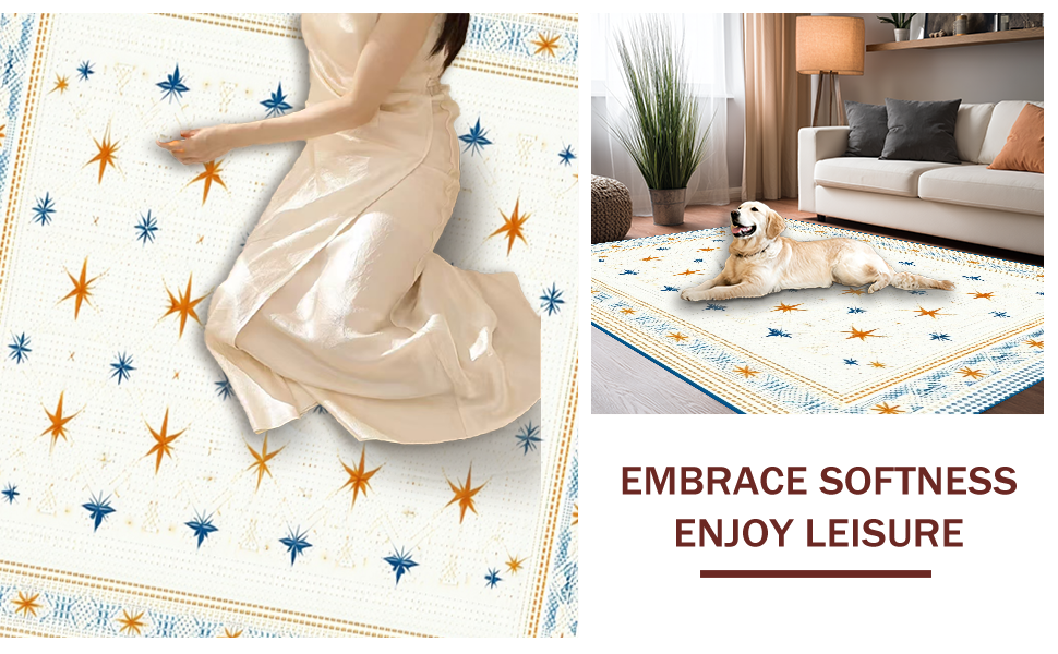 Ultra Soft Area Rug, Non Slip, Stain Resistant, Washable Area Rugs for Living Room, Bedroom, Sophisticated Geometric Star Palette(White) Overview: