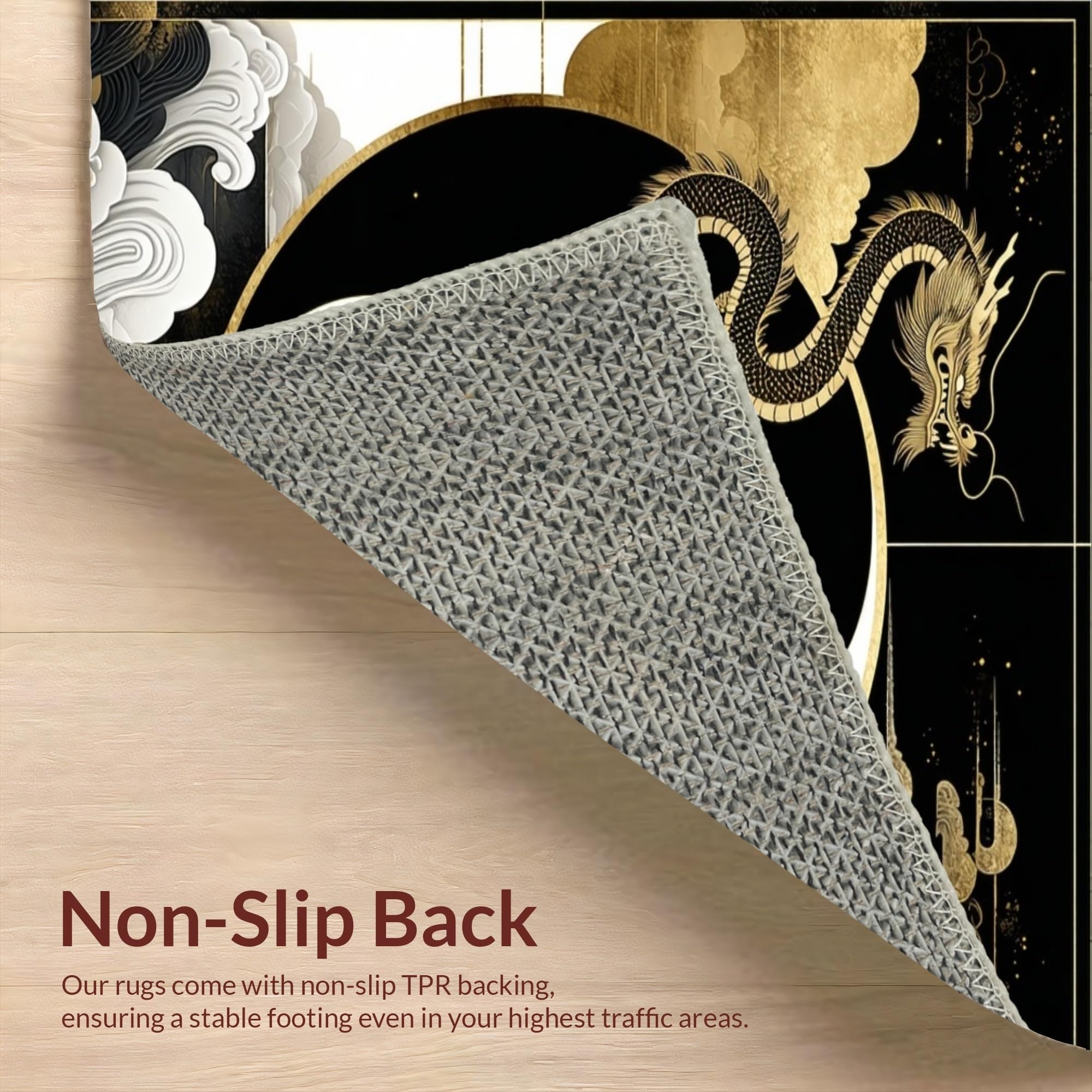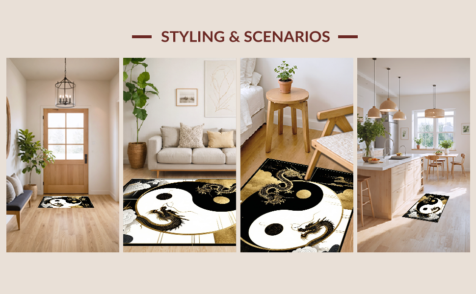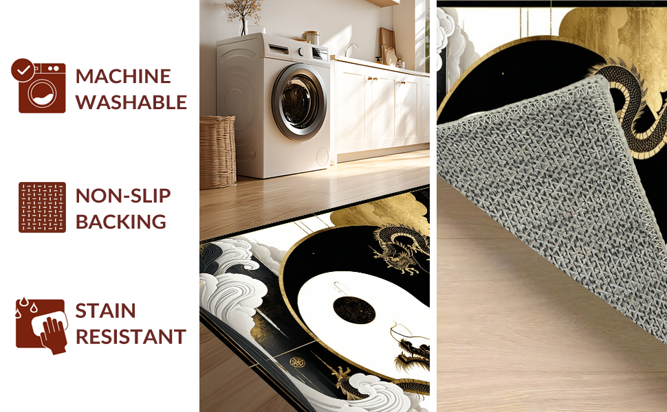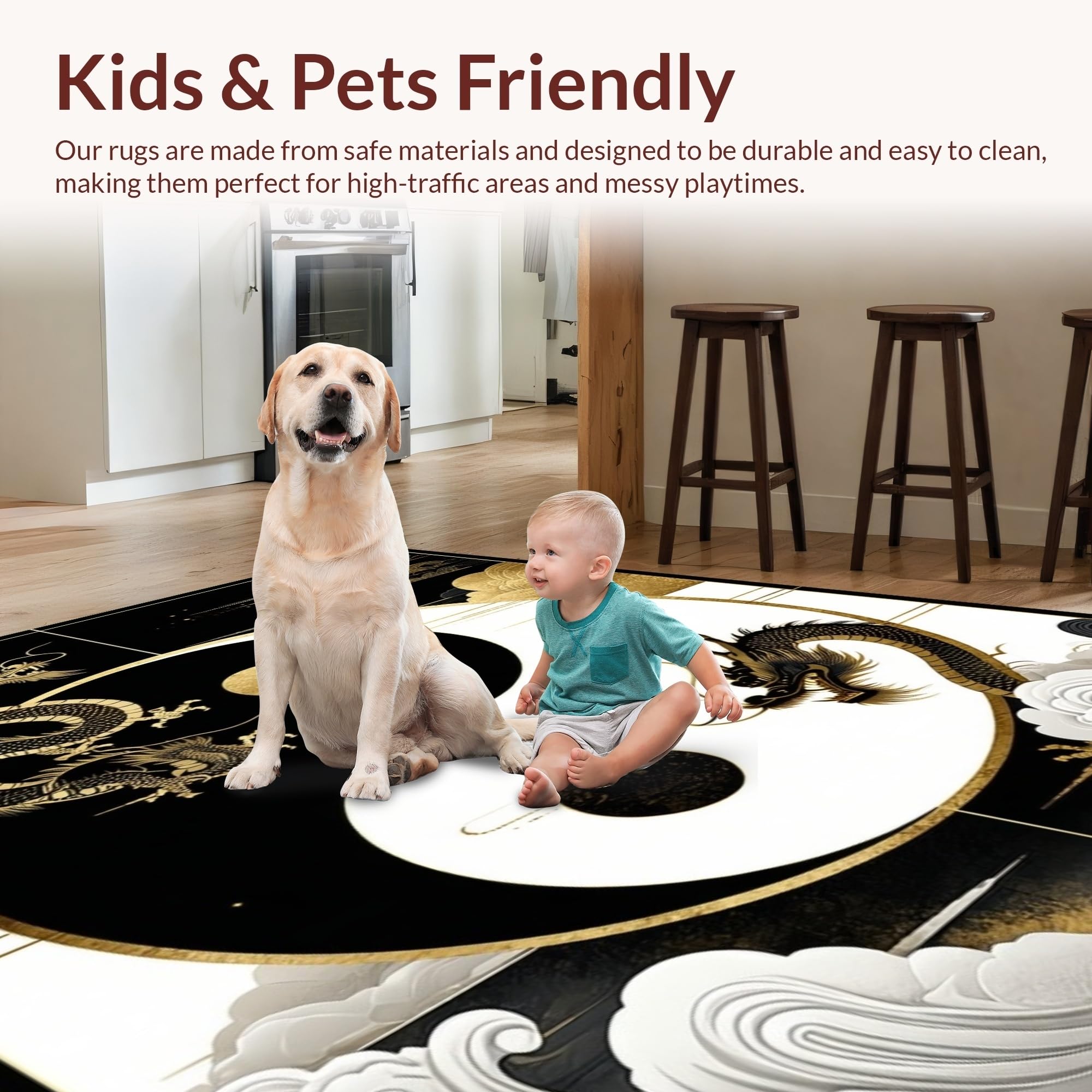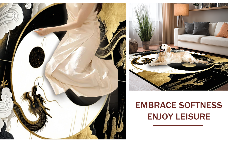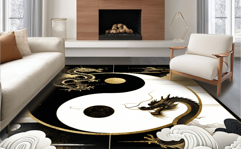 Ultra Soft Area Rug, Non Slip, Stain Resistant, Washable Area Rugs for Living Room, Bedroom, Sophisticated Geometric Yin Yang Fusion(Black) Overview: