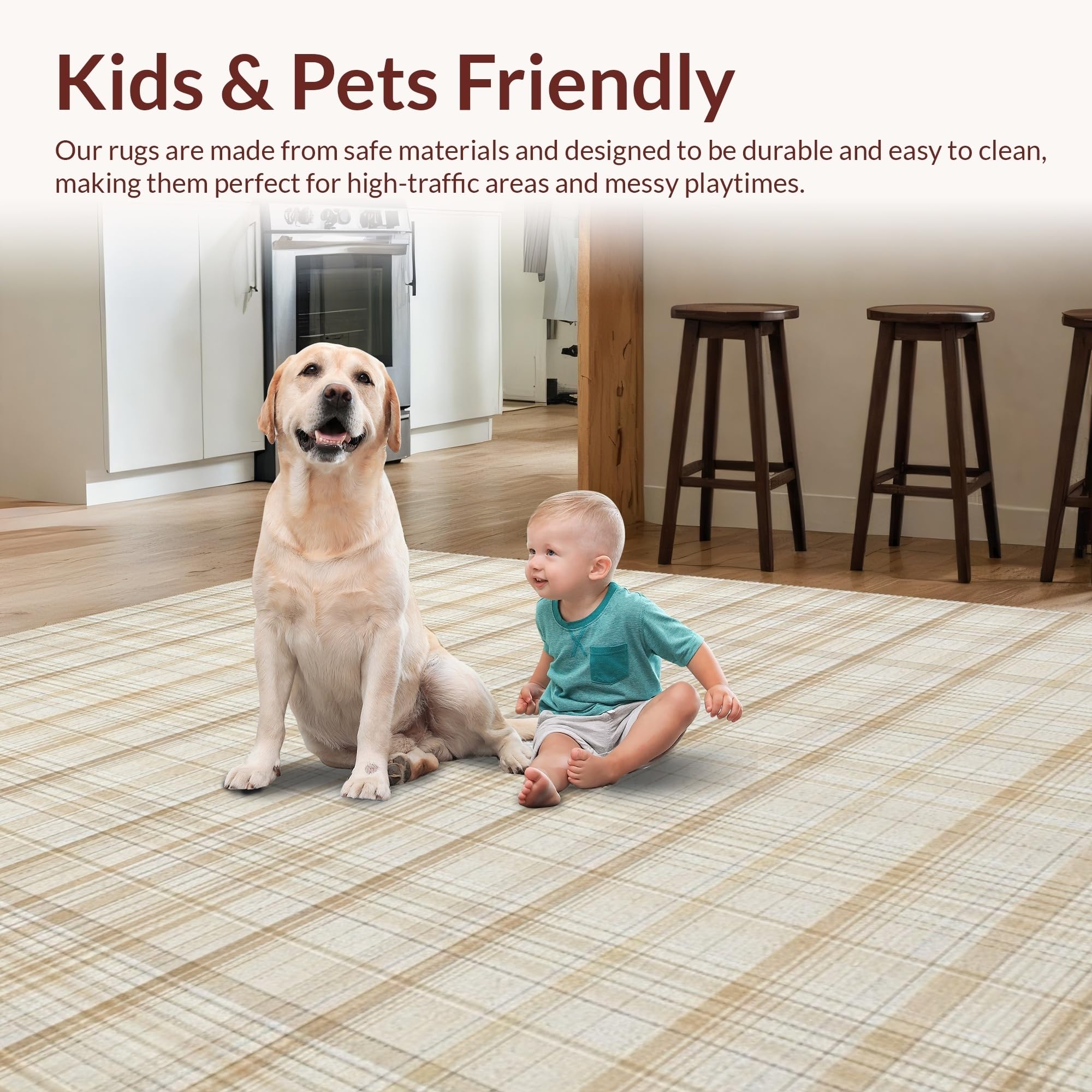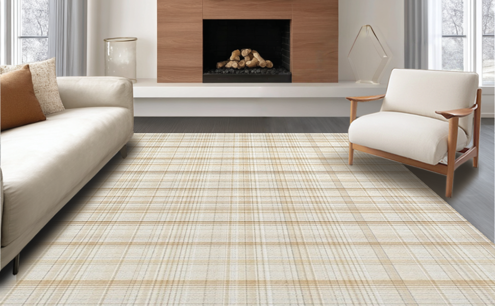 Ultra Soft Area Rug, Non Slip, Stain Resistant, Washable Area Rugs for Living Room, Bedroom, Sophisticated High Contrast Trellis Style(Beige) Overview: