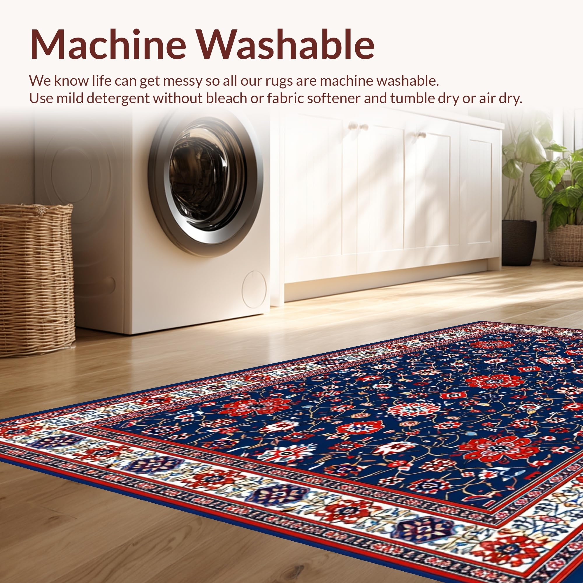 - Machine Washable: Our rugs can be easily thrown in the wash machine.