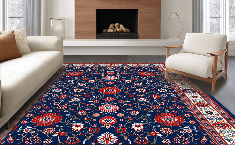 Ultra Soft Area Rug, Non Slip, Stain Resistant, Washable Area Rugs for Living Room, Bedroom, Sophisticated Lattice Design Concept(Blue) Overview: