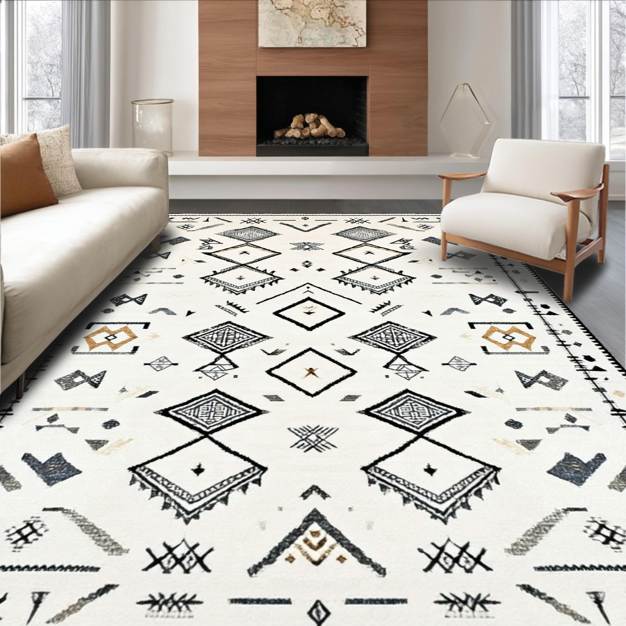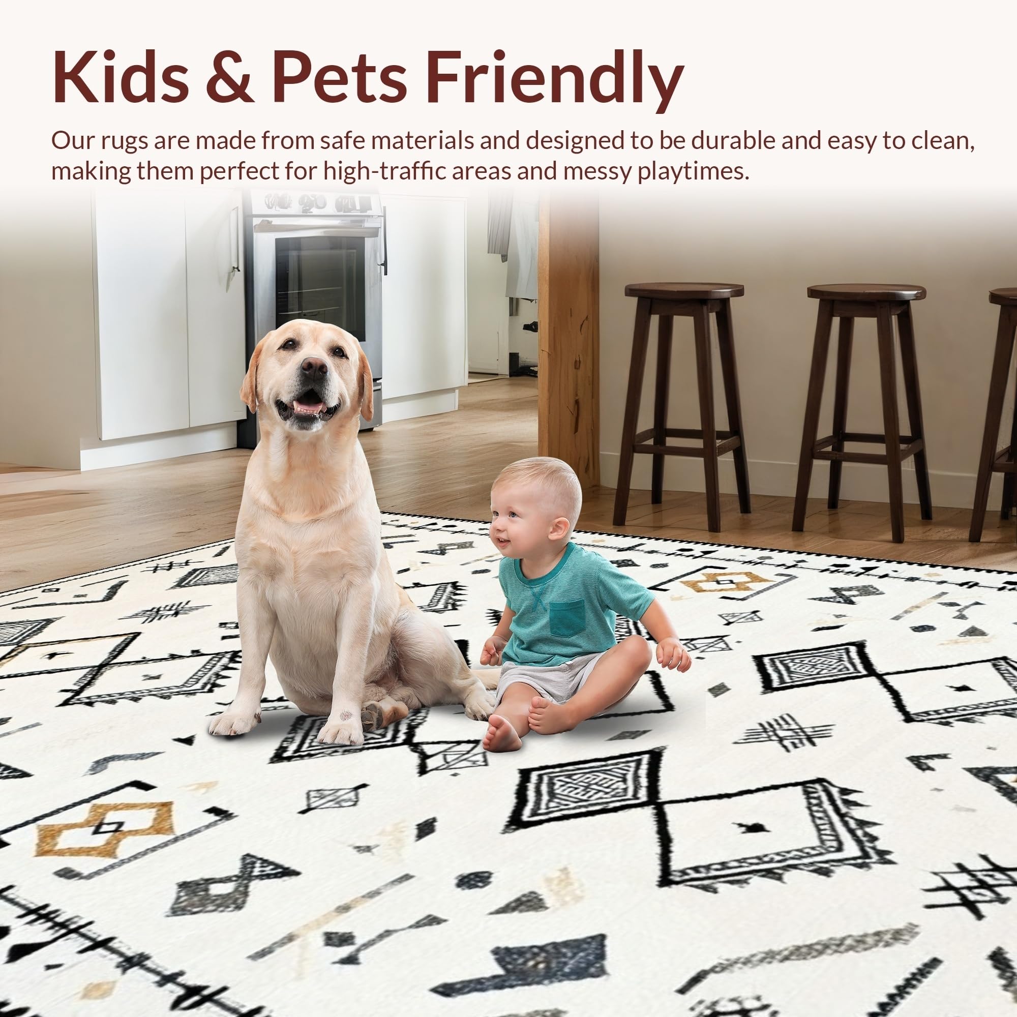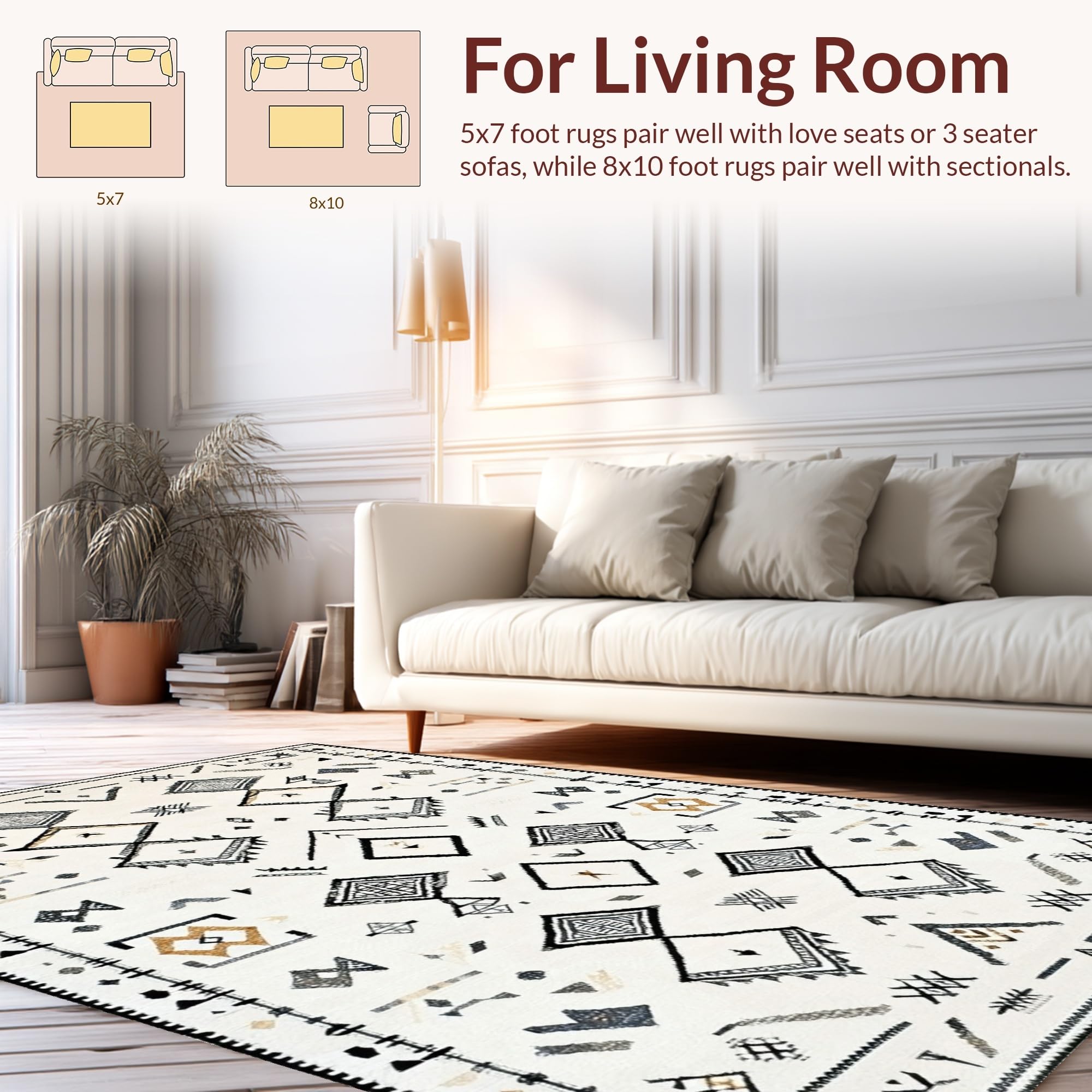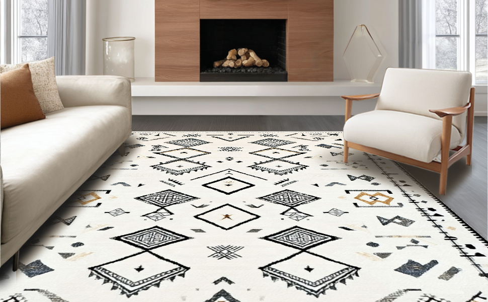 Ultra Soft Area Rug, Non Slip, Stain Resistant, Washable Area Rugs for Living Room, Bedroom, Sophisticated Lattice Inspired Decor(Beige) Overview: