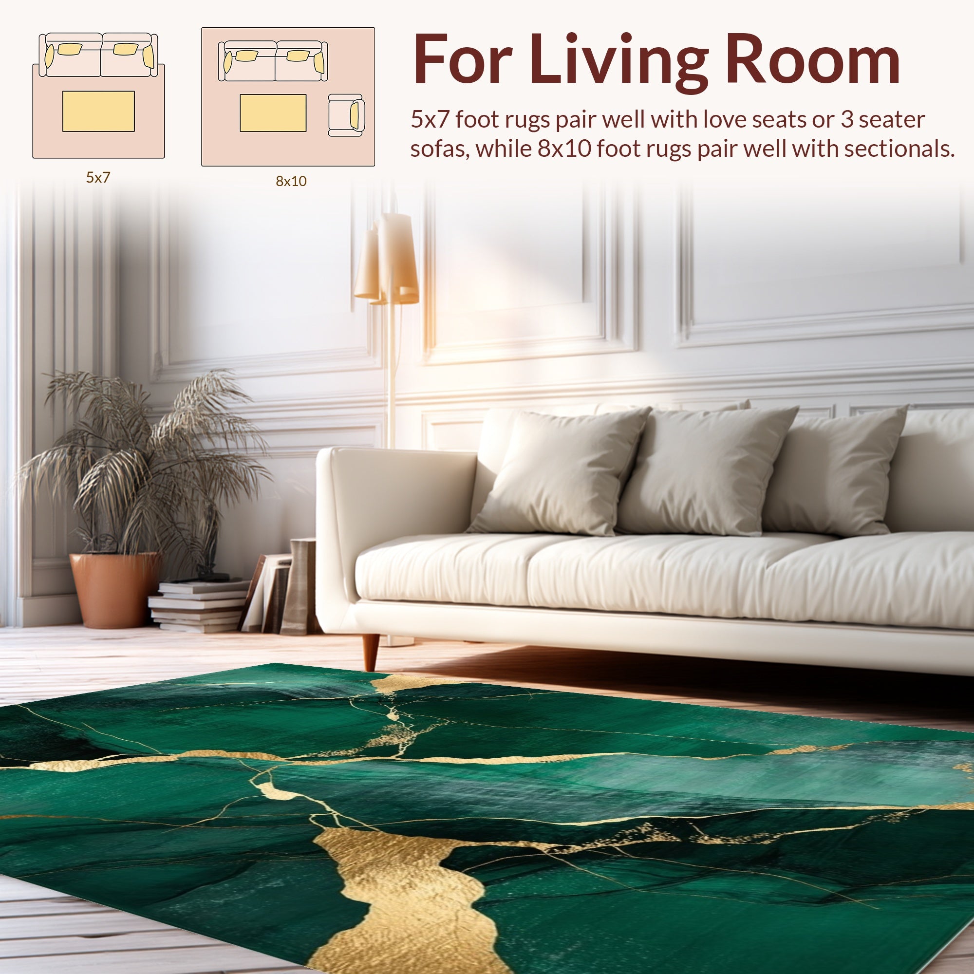 Flatwoven High Traffic Area Rug, Sophisticated Marbleized Visual Harmony, Non Slip, Stain Resistant, Washable Area Rugs for Living Room, Bedroom (Green) Overview: