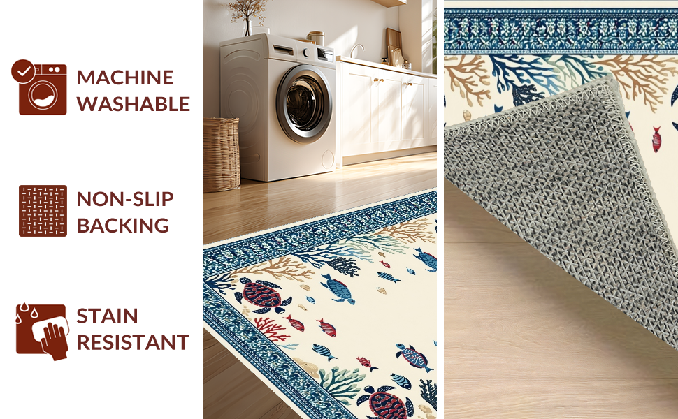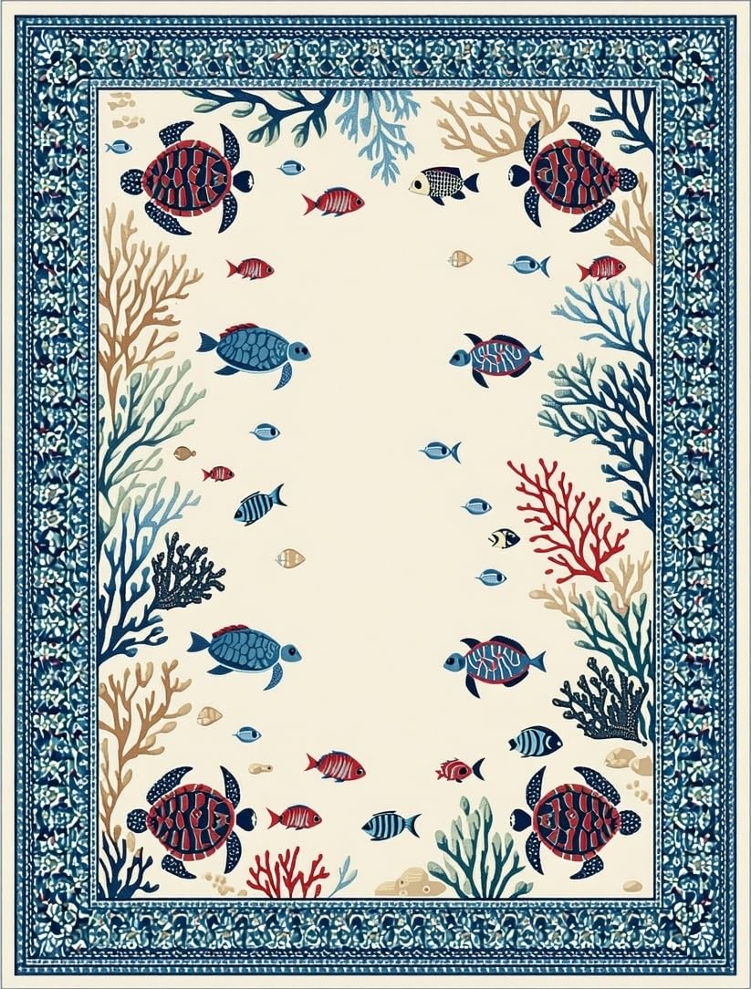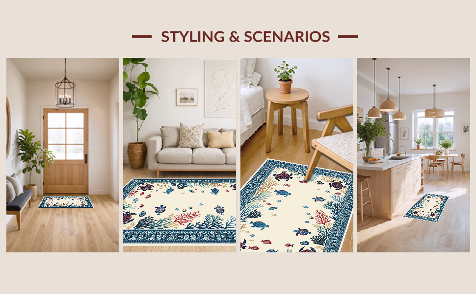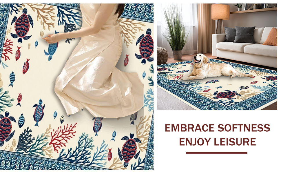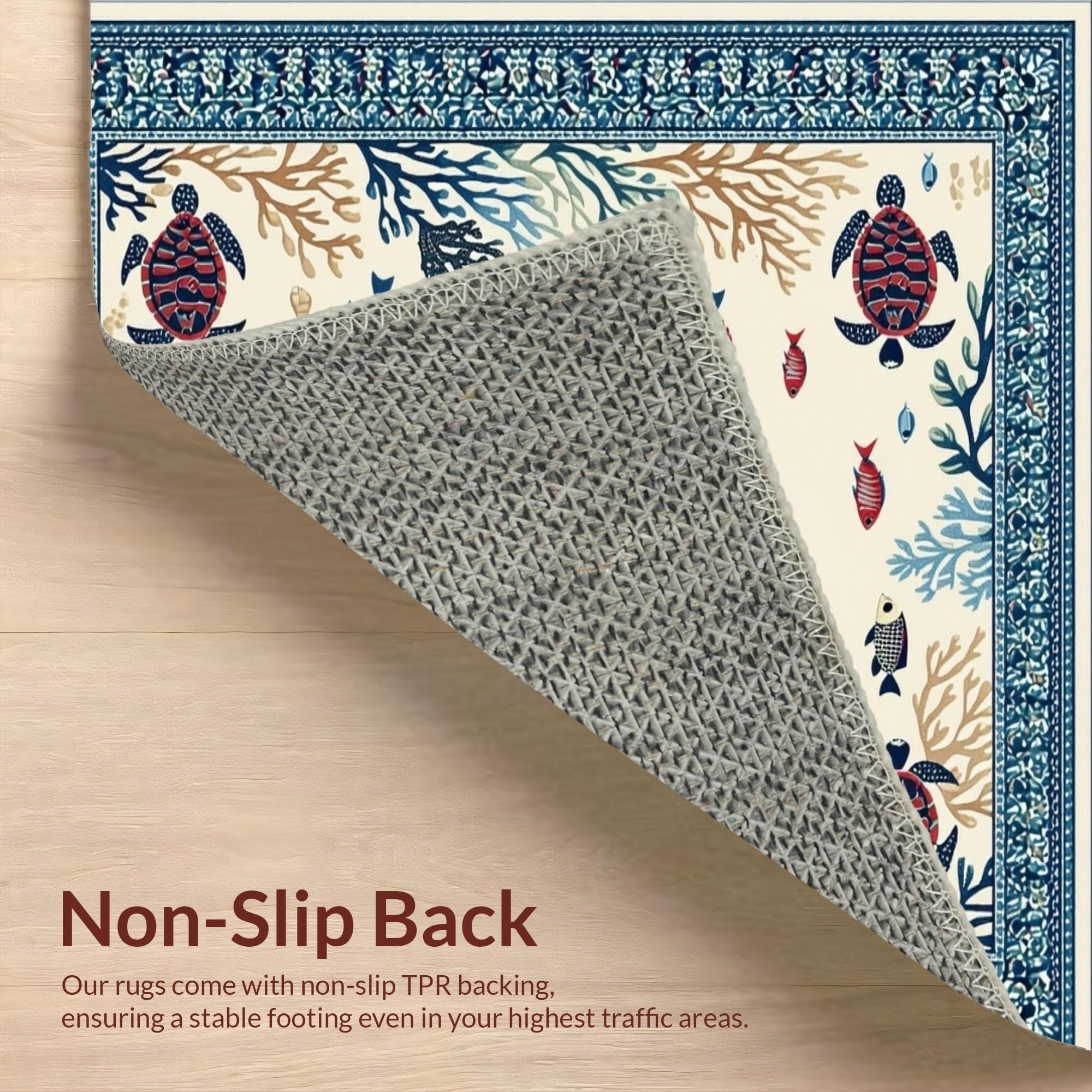 Ultra Soft Area Rug, Non Slip, Stain Resistant, Washable Area Rugs for Living Room, Bedroom, Sophisticated Marine Life Representation(Beige) Overview: