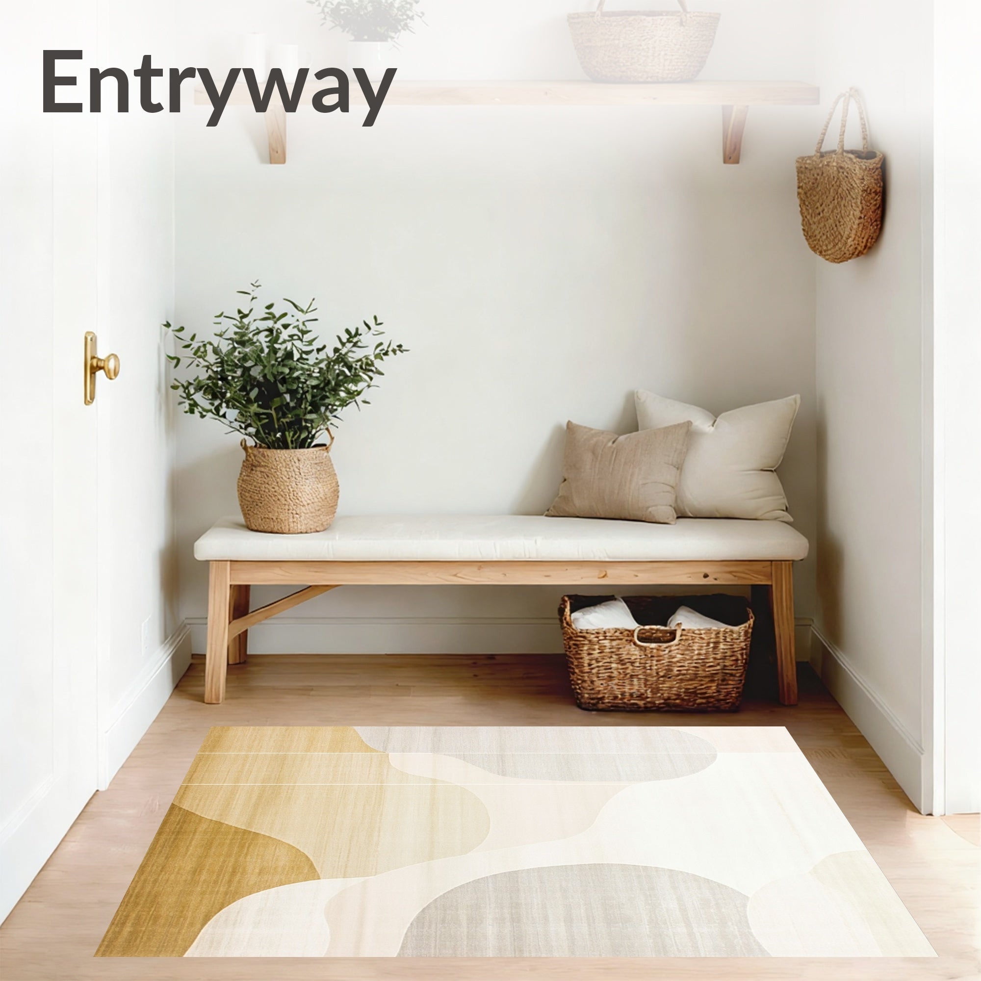 Ultra Soft Area Rug, Non Slip, Stain Resistant, Washable Area Rugs for Living Room, Bedroom, Sophisticated Mid Century Modern with Unique Beige and Ivory Ombre Style(Beige) Overview: