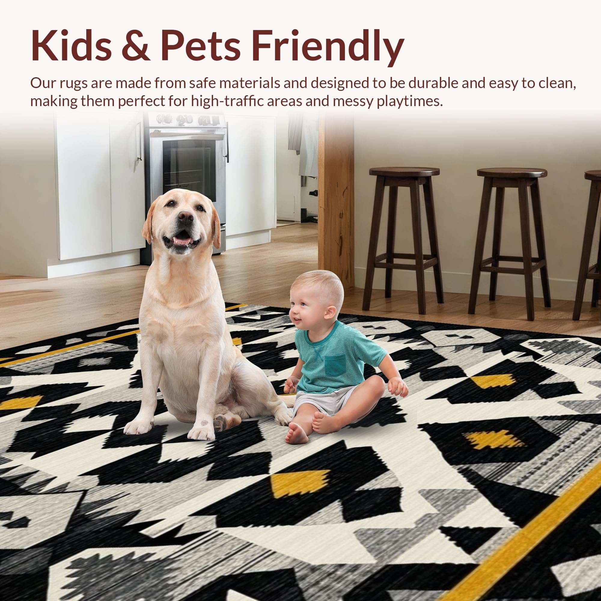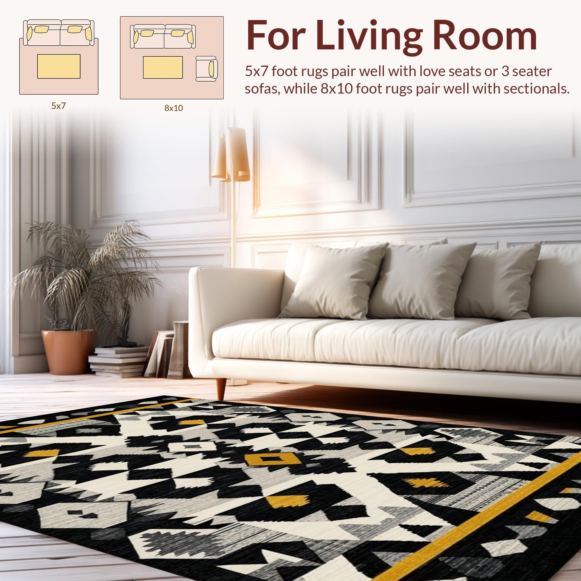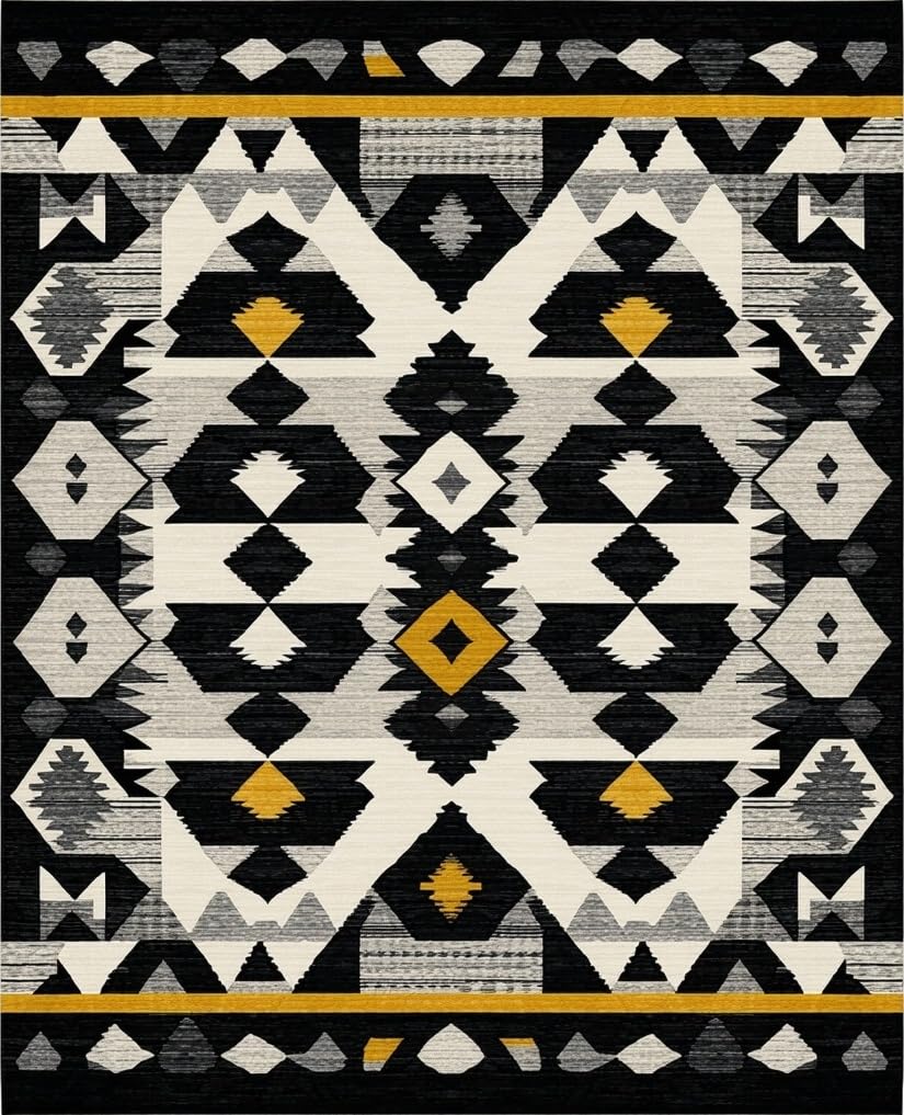 Ultra Soft Area Rug, Non Slip, Stain Resistant, Washable Area Rugs for Living Room, Bedroom, Sophisticated Minimalist Linear Pattern(Black) Overview: