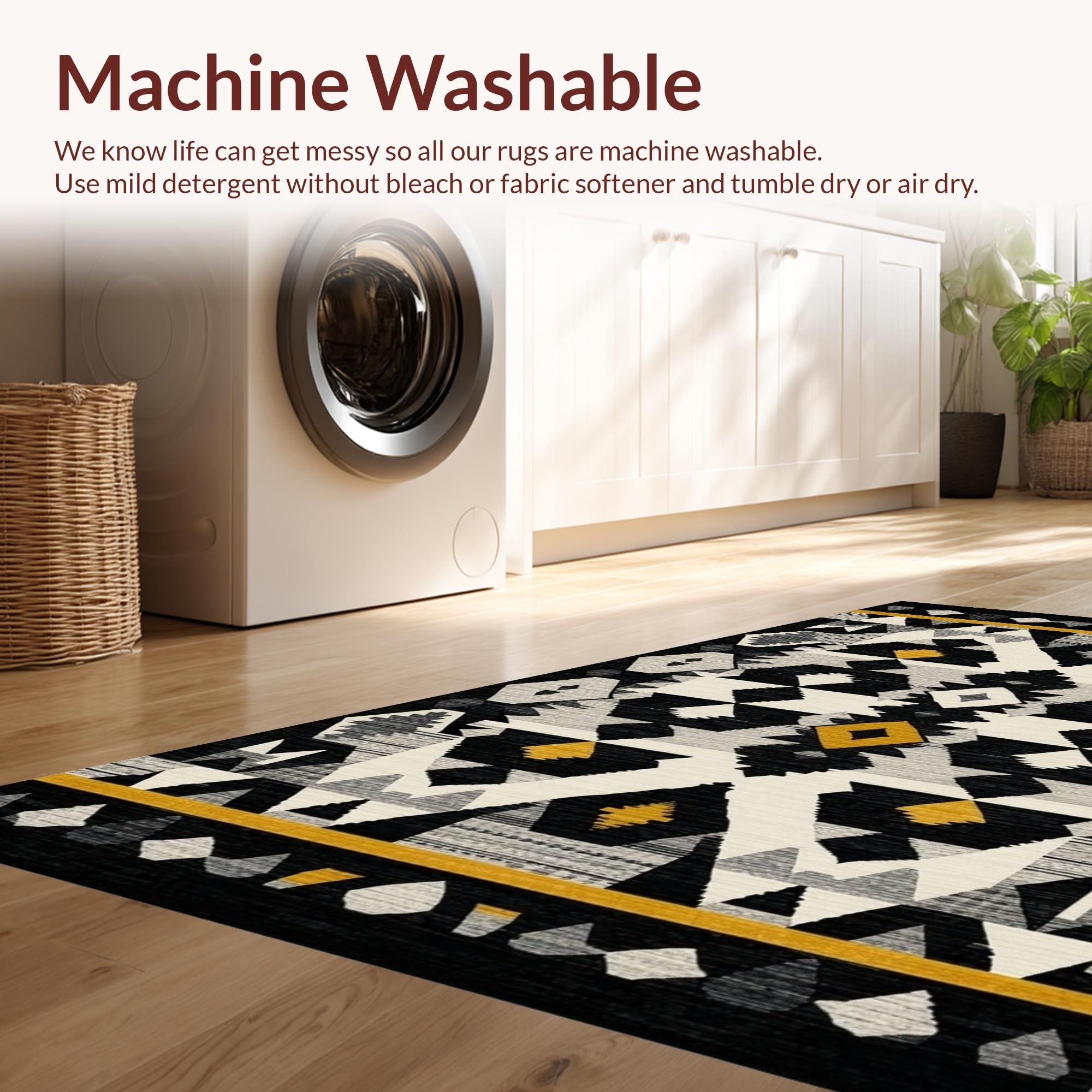 - Machine Washable: Our rugs can be easily thrown in the wash machine.