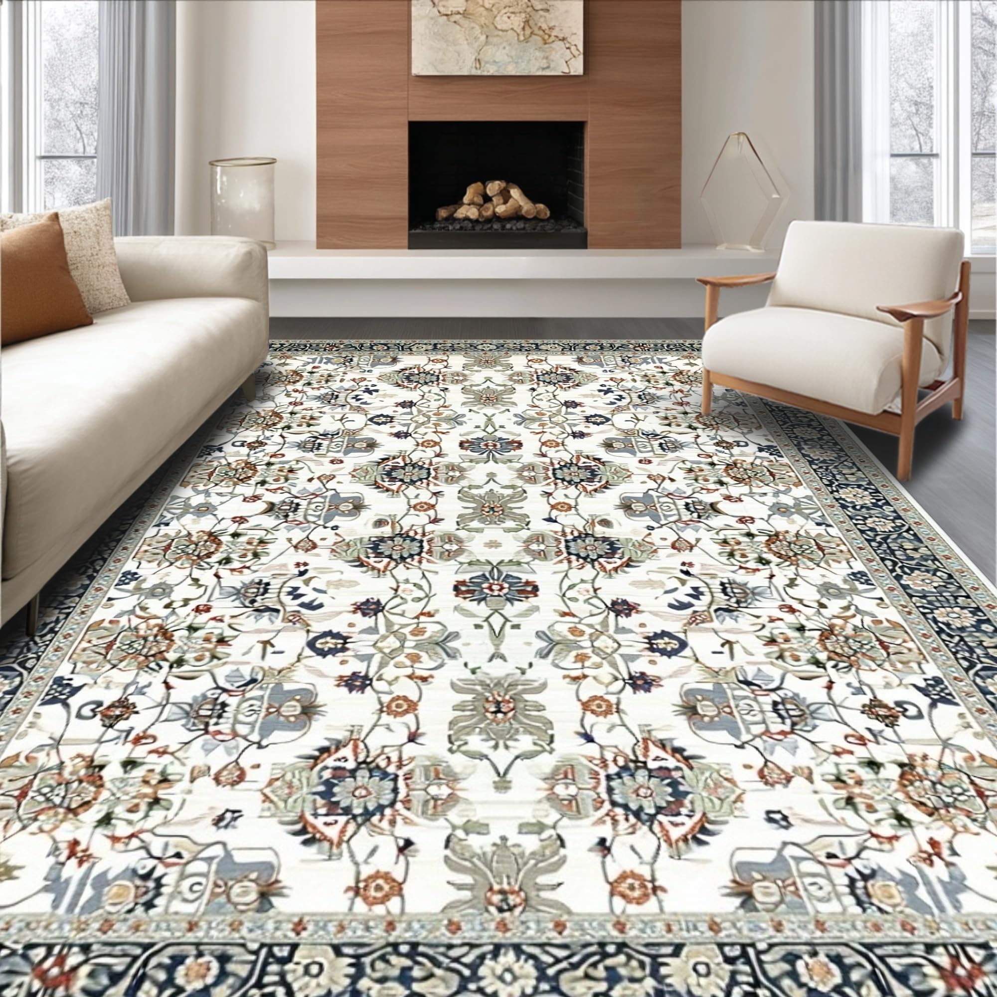 Ultra Soft Area Rug, Non Slip, Stain Resistant, Washable Area Rugs for Living Room, Bedroom, Sophisticated Minimalist Organic Shapes(White) Overview: